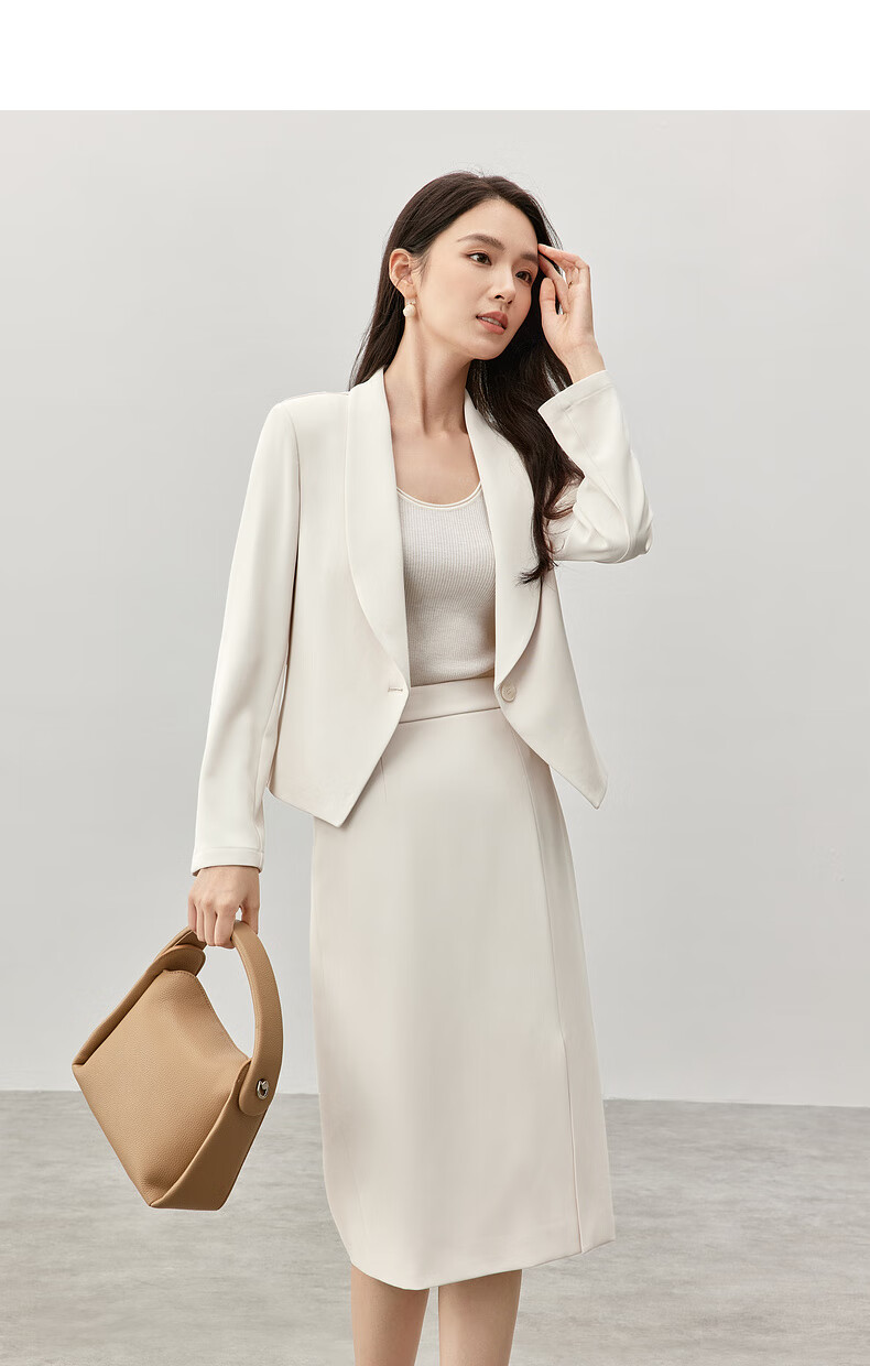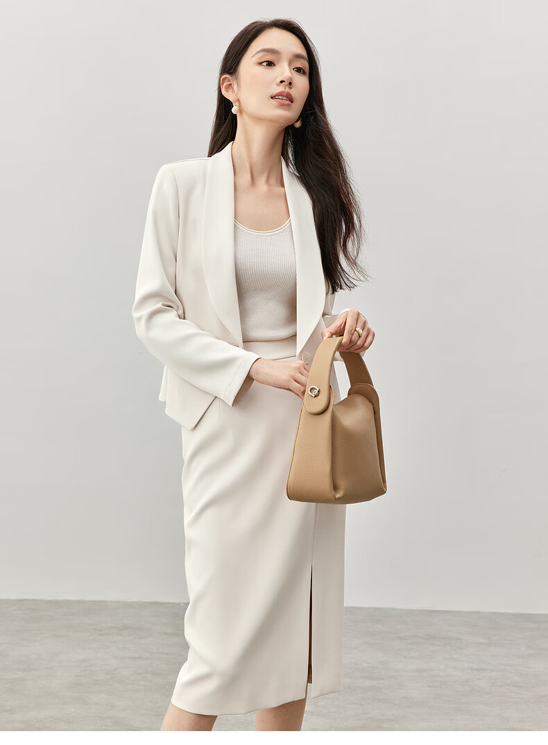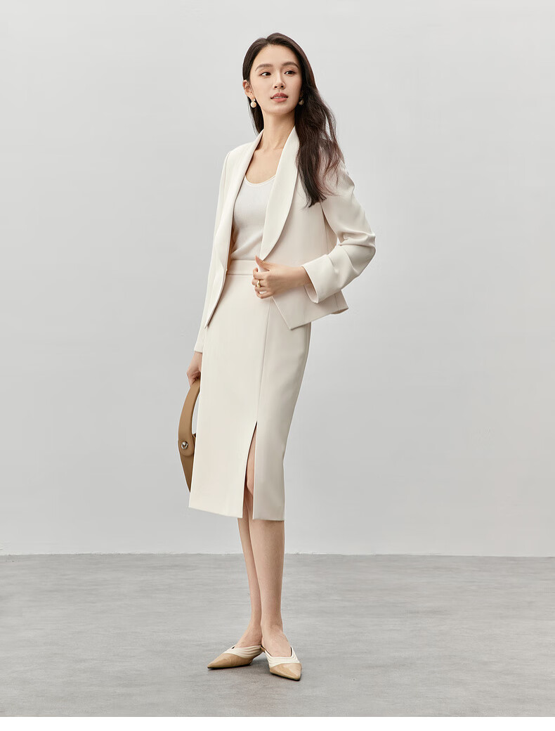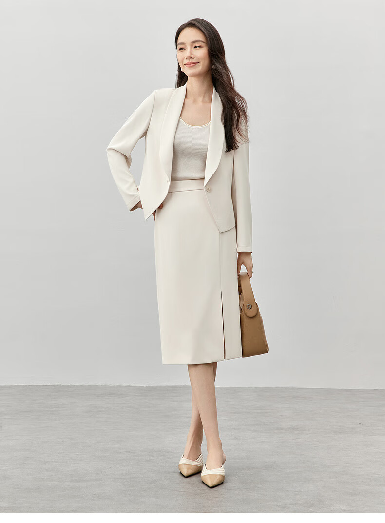 Shandubila Small Series Workplace Commuting/Elegance Green Fruit Collar Suit Suit Slit Skirt High-end Suit Apricot L