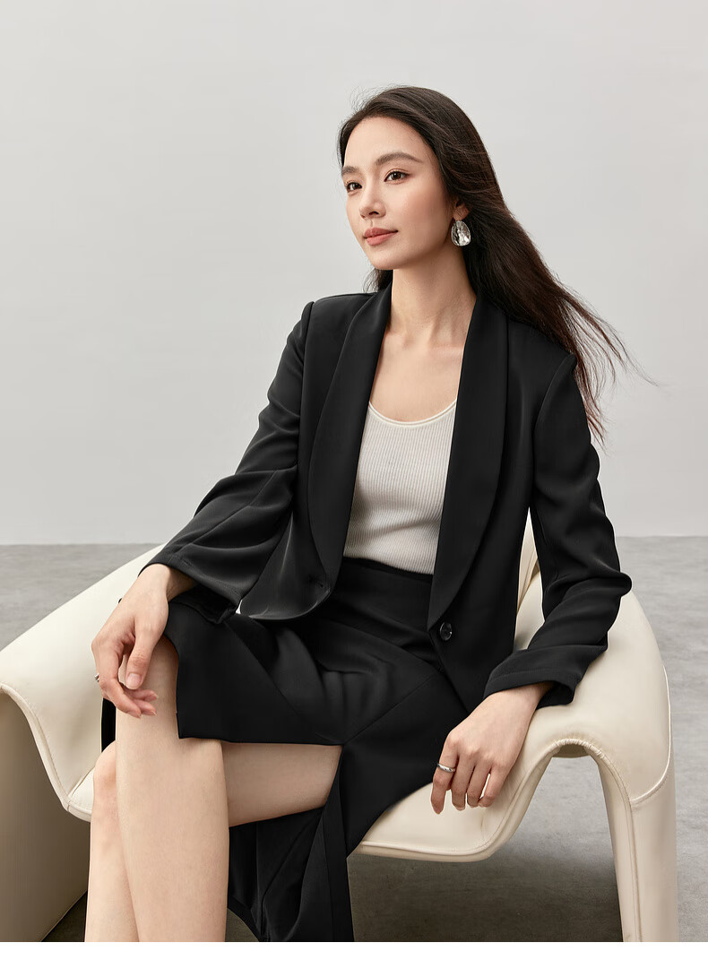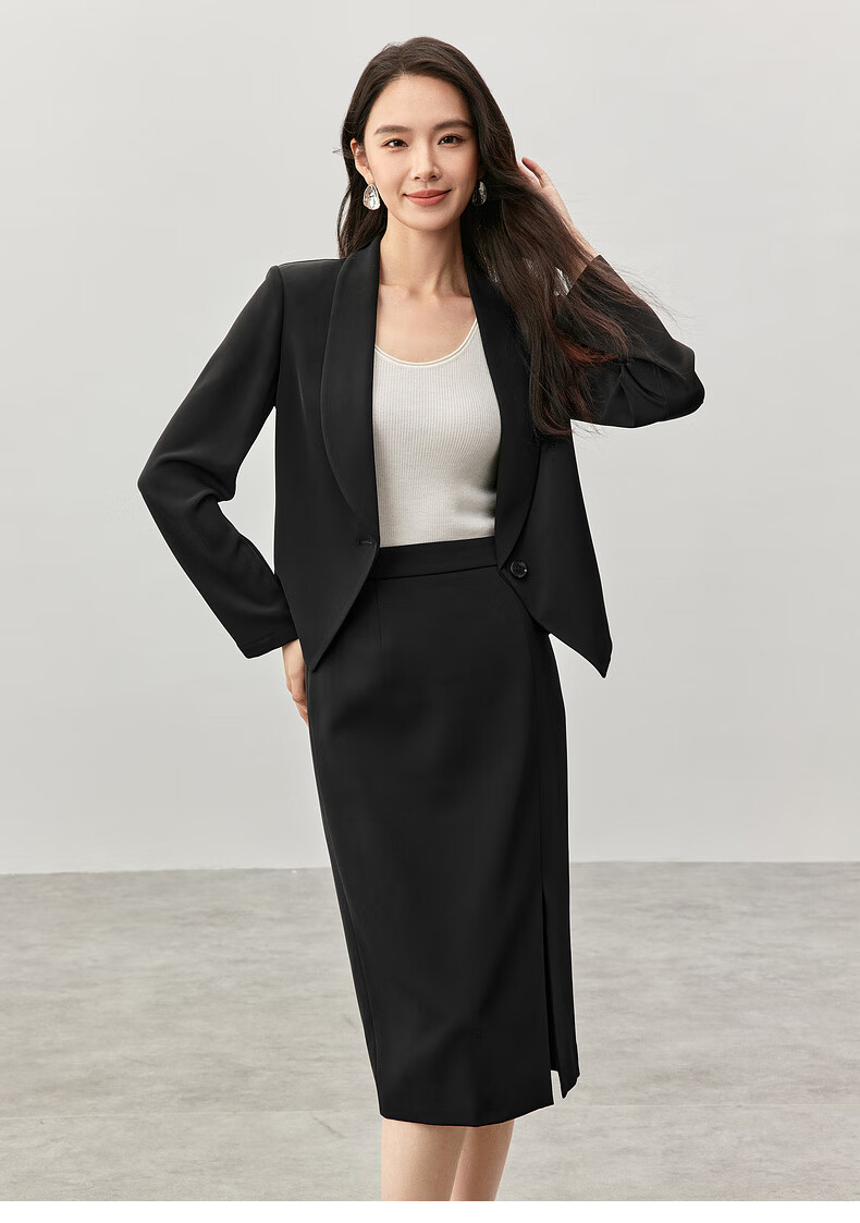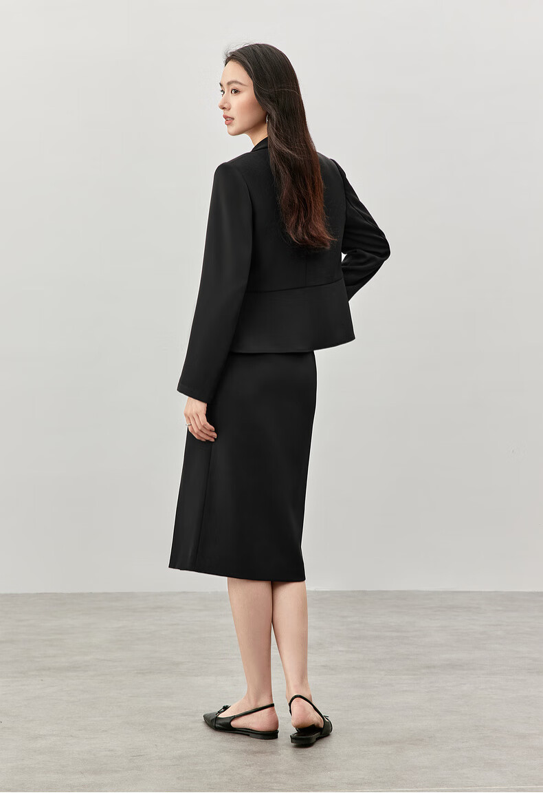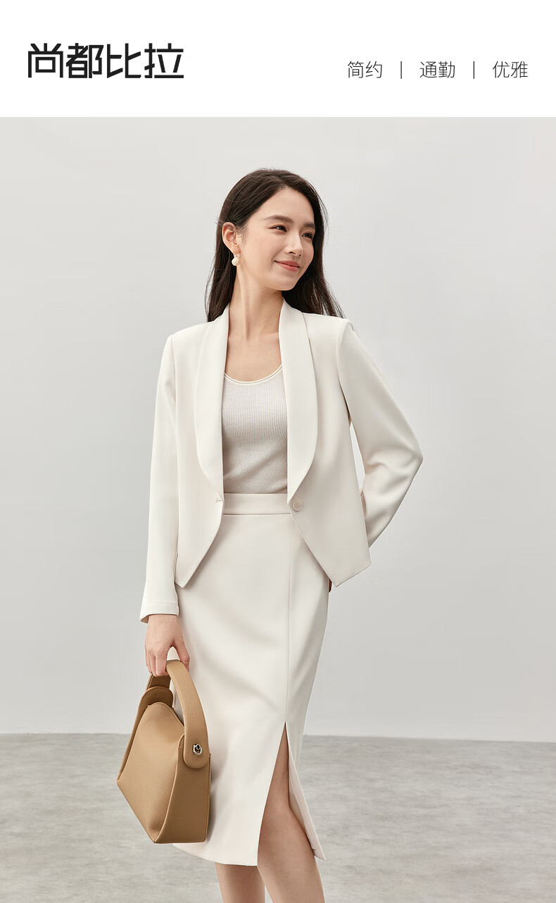 Shandubila Small Series Workplace Commuting/Elegance Green Fruit Collar Suit Suit Slit Skirt High-end Suit Apricot L