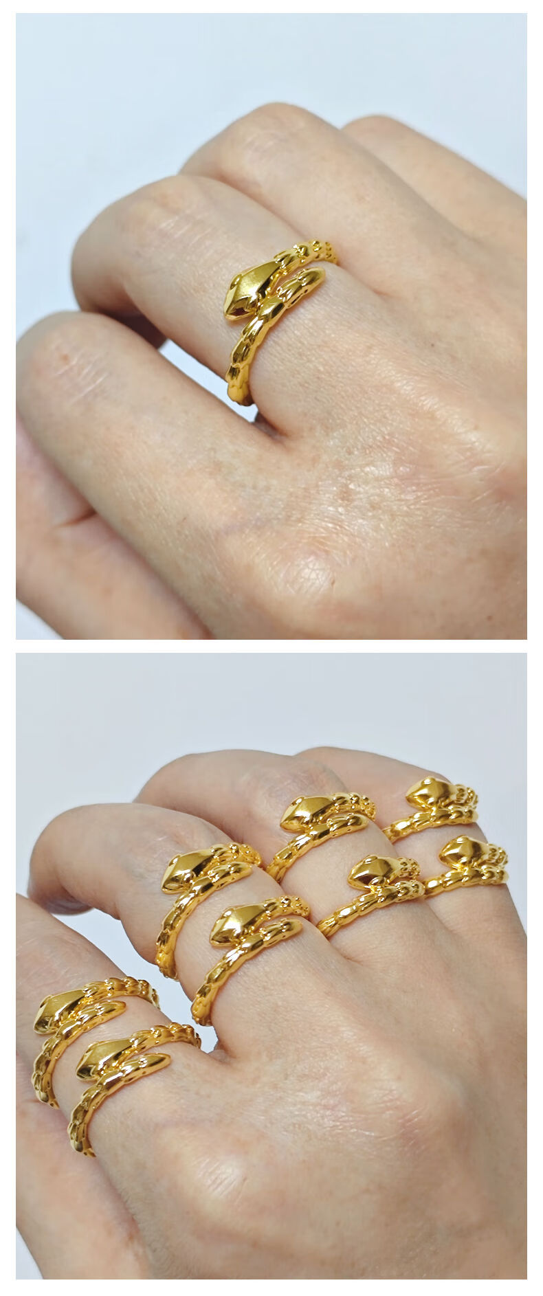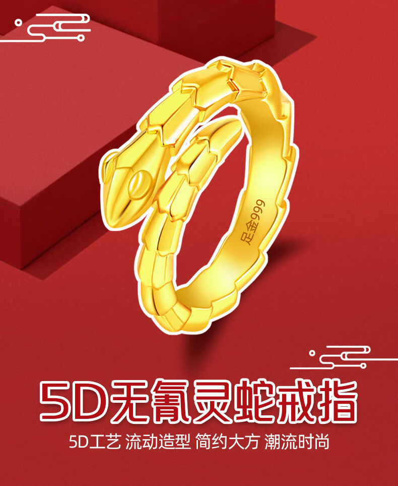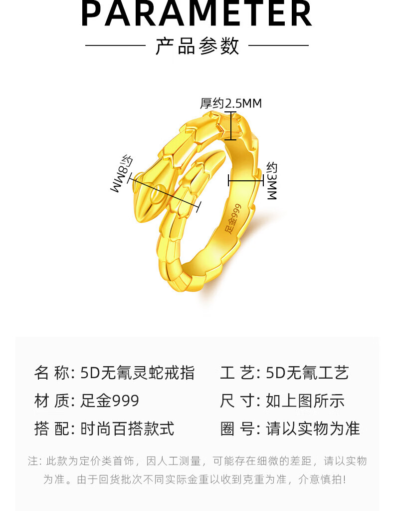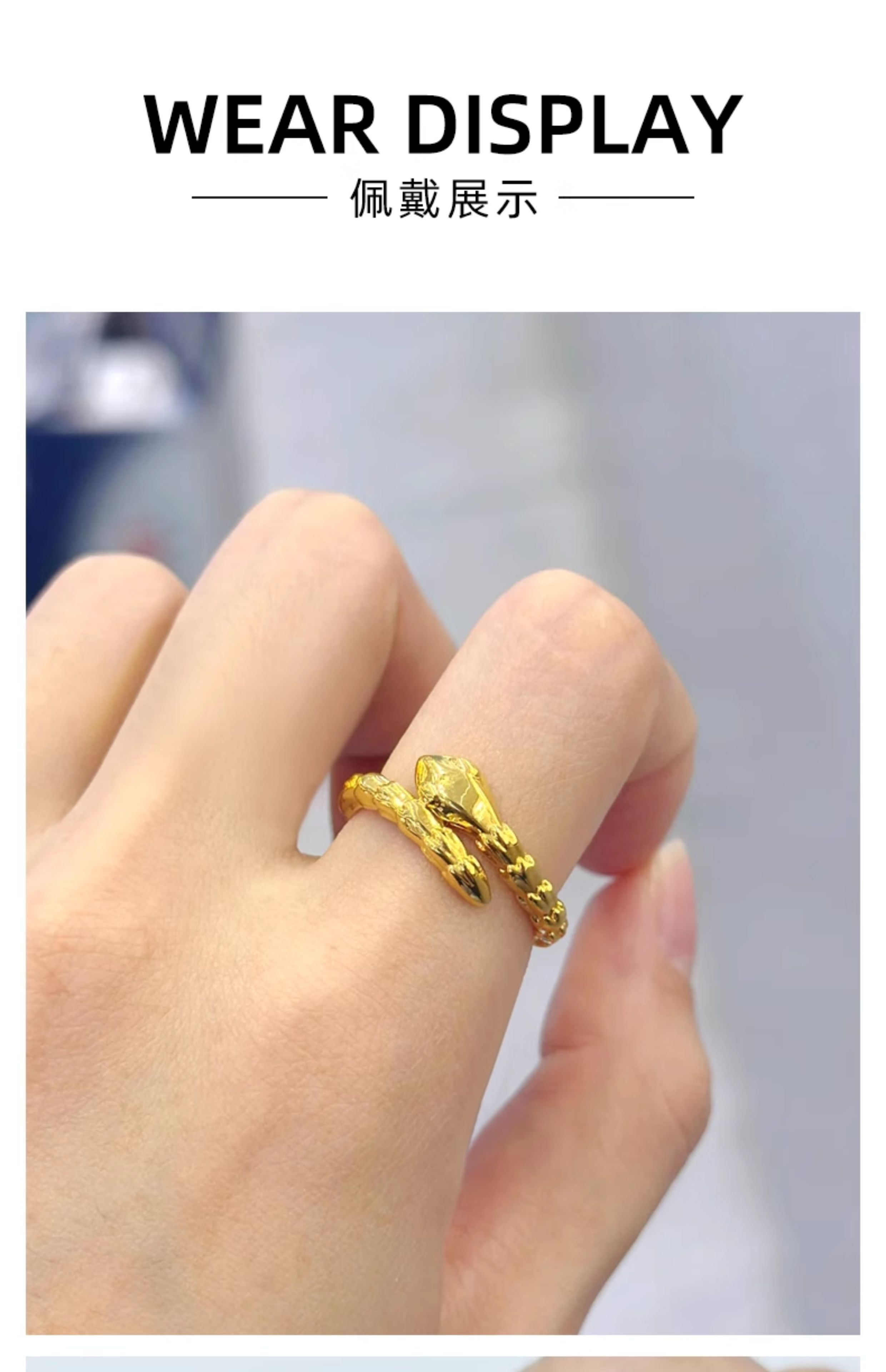 Yage 999 Pure Gold Zodiac Snake Ring 5D Gold Snake Ring Couple Ring New Year Gift Hard Gold Ring Bar Ring Female No. 11 Snake Ring - Gold Approximately 0.95-1.05 Grams (