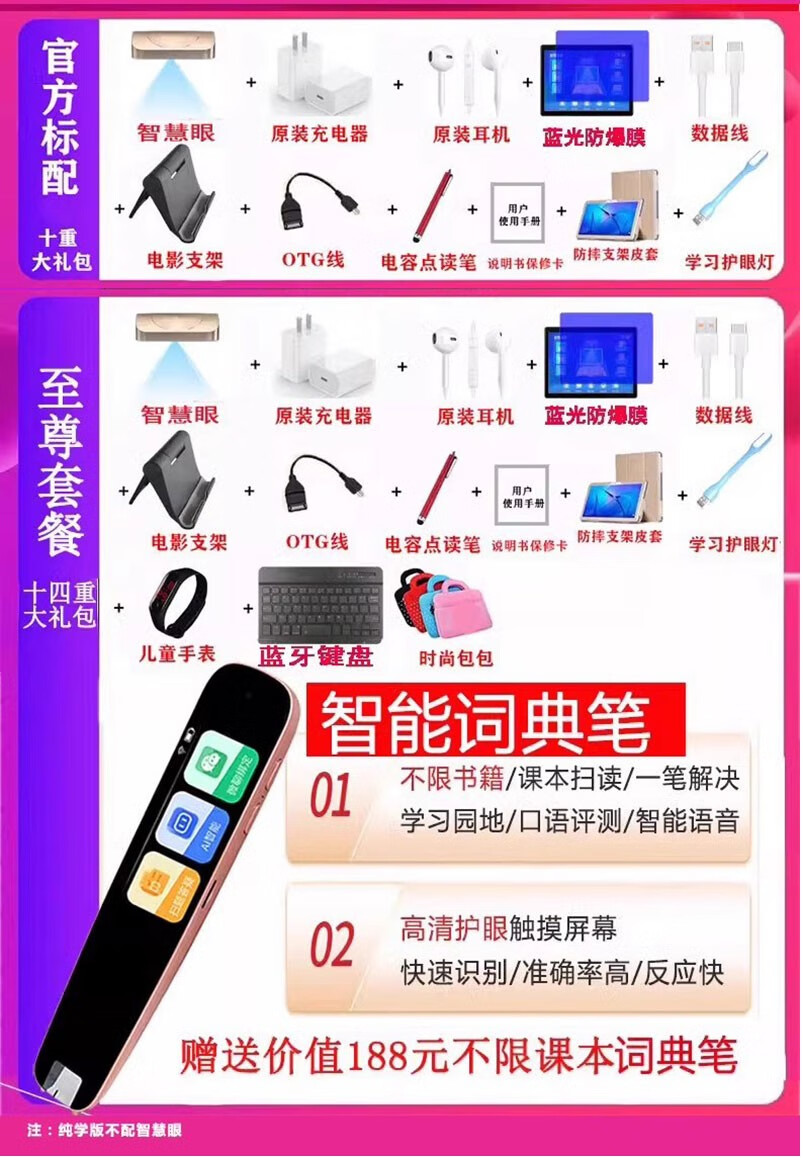 Step by step learning machine, primary school junior high school first grade to high school general student tablet computer English reading machine, black, full subject simultaneous accurate learning + AR finger reading, supreme package 12+512