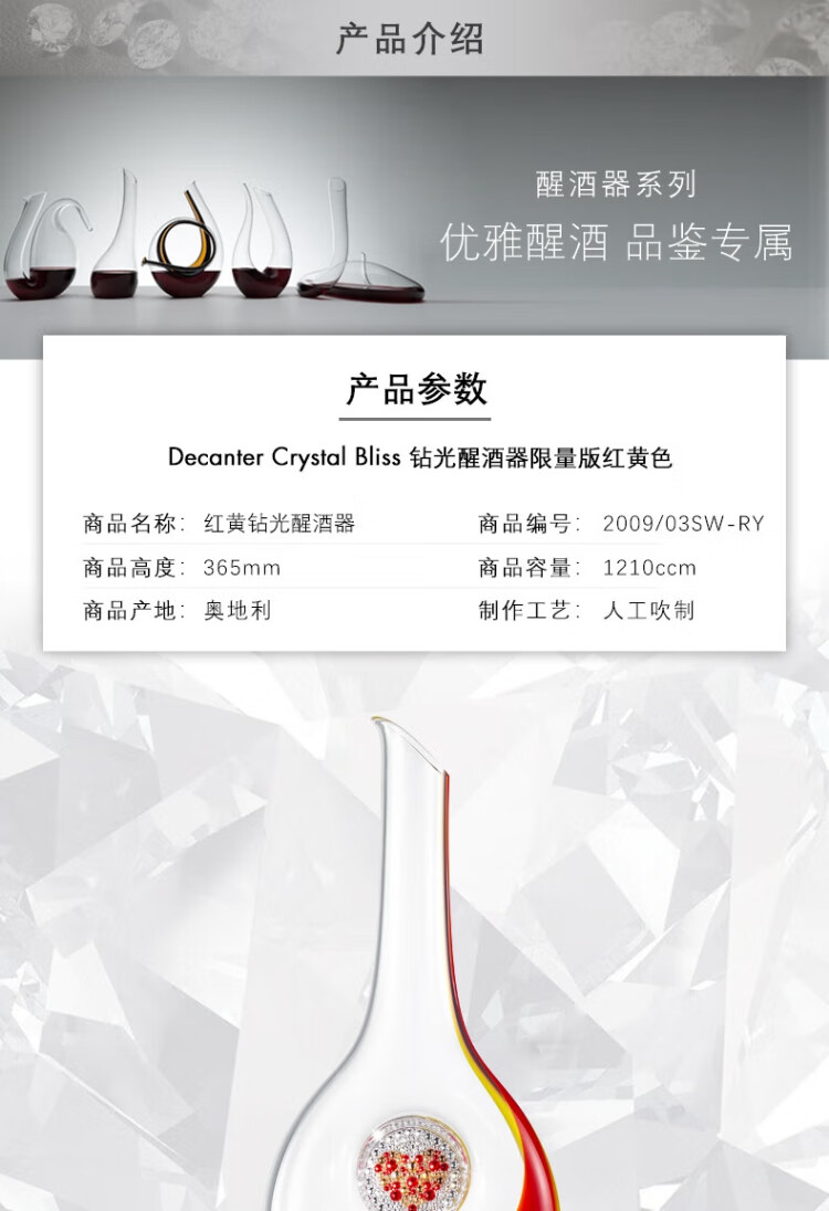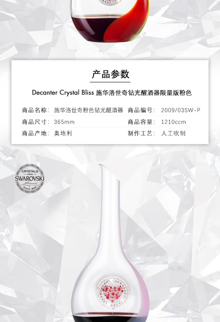 RIEDEL Limited Collection Swarovski Blessed Decanter Handmade Decanter Imported High-Value Gift Pink Swarovski Decanter + 2 Cabernet Sauvignon Cups