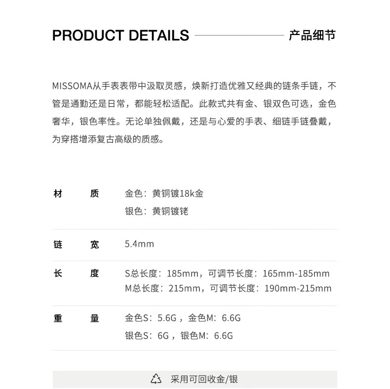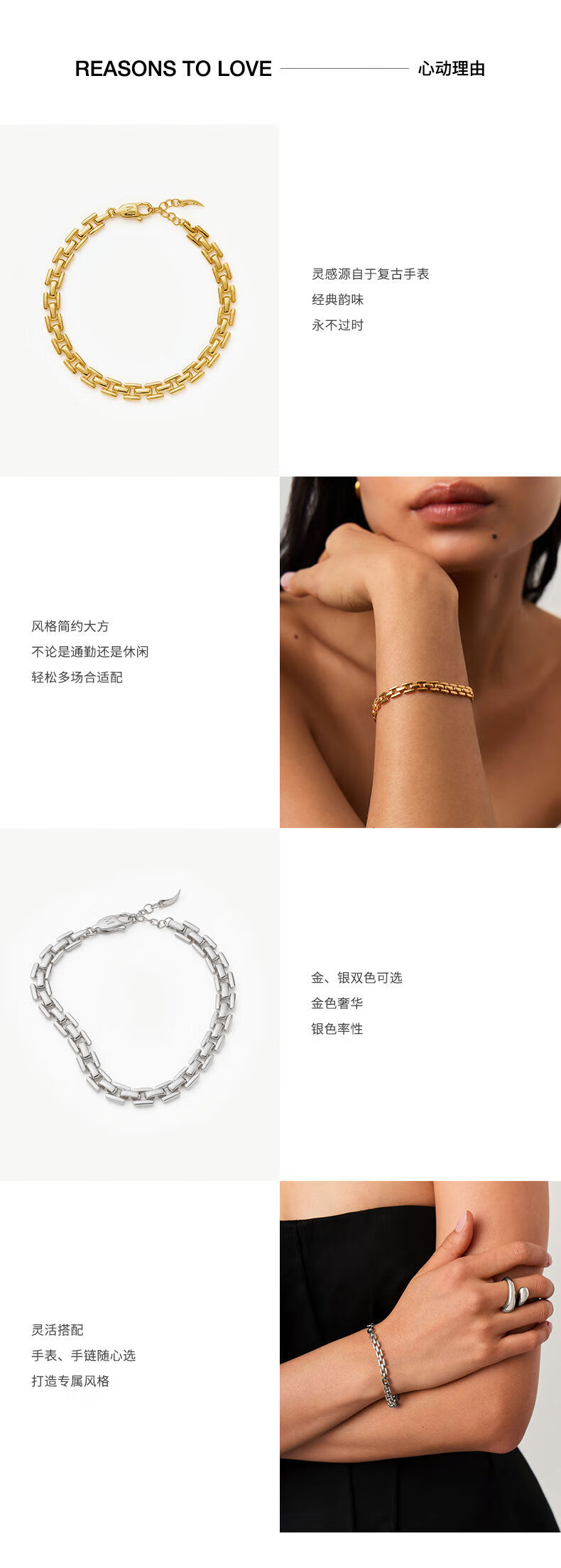 Feiyu Time Link Bracelet Plated with 18k Gold Light Luxury High-Level Sense Niche Exquisite Temperament Women's Bracelet Gold S