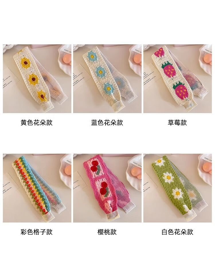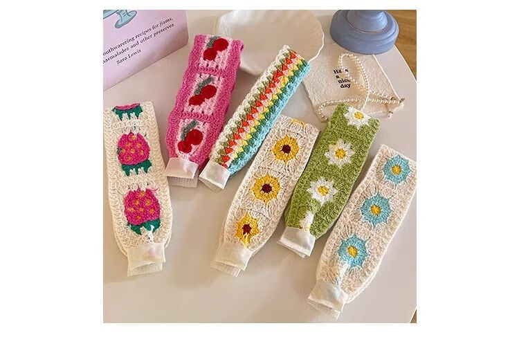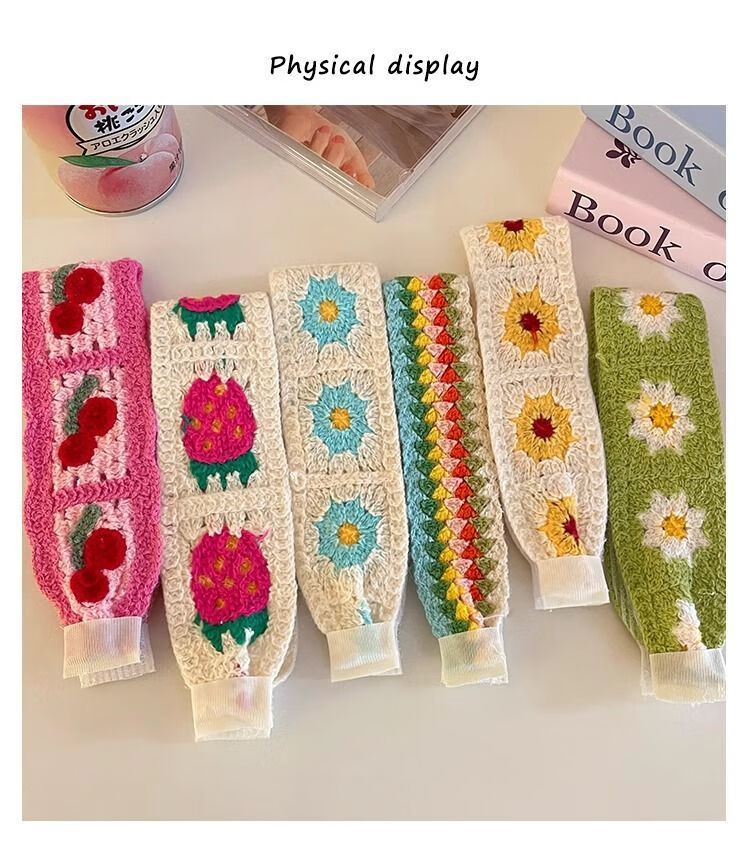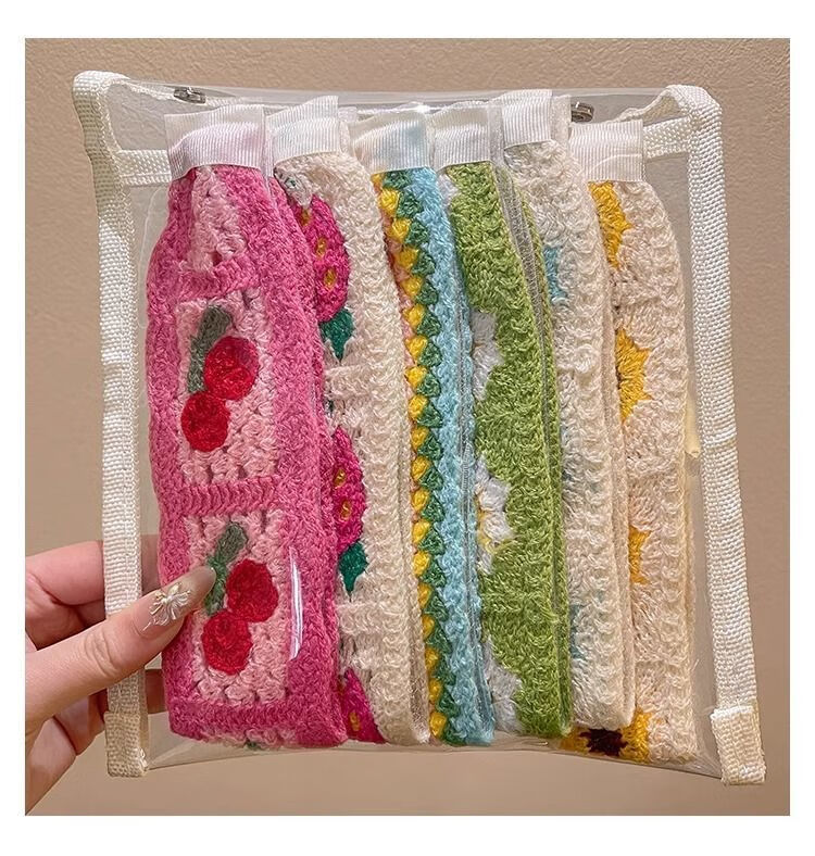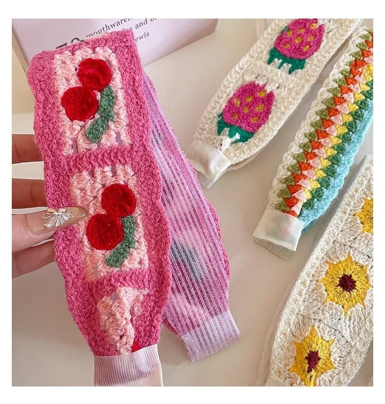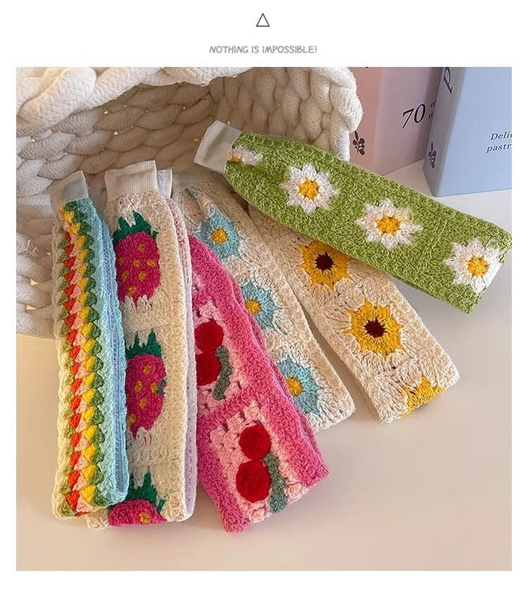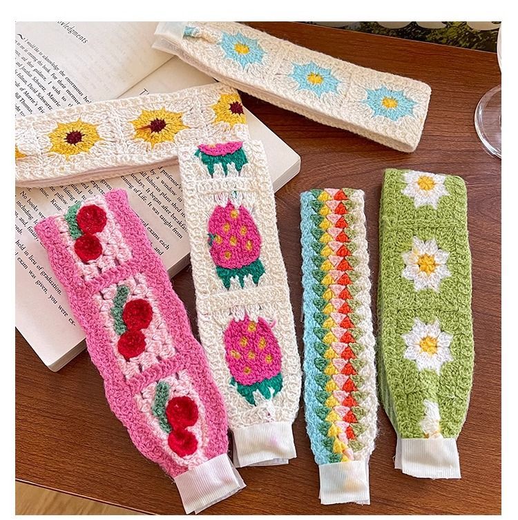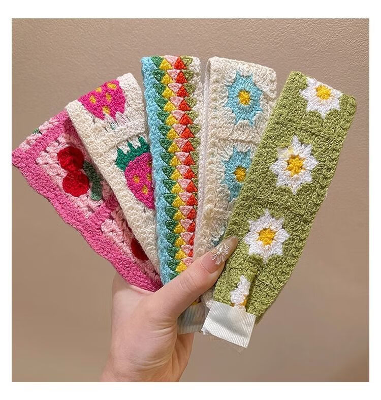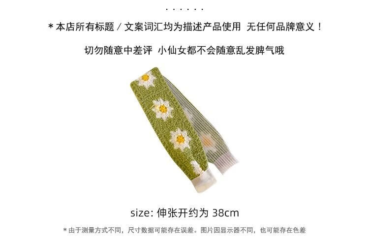 French pastoral style knitted floral Velcro headband for women with forehead bangs and broken hair, hairband-style post / green flowers + yellow flowers