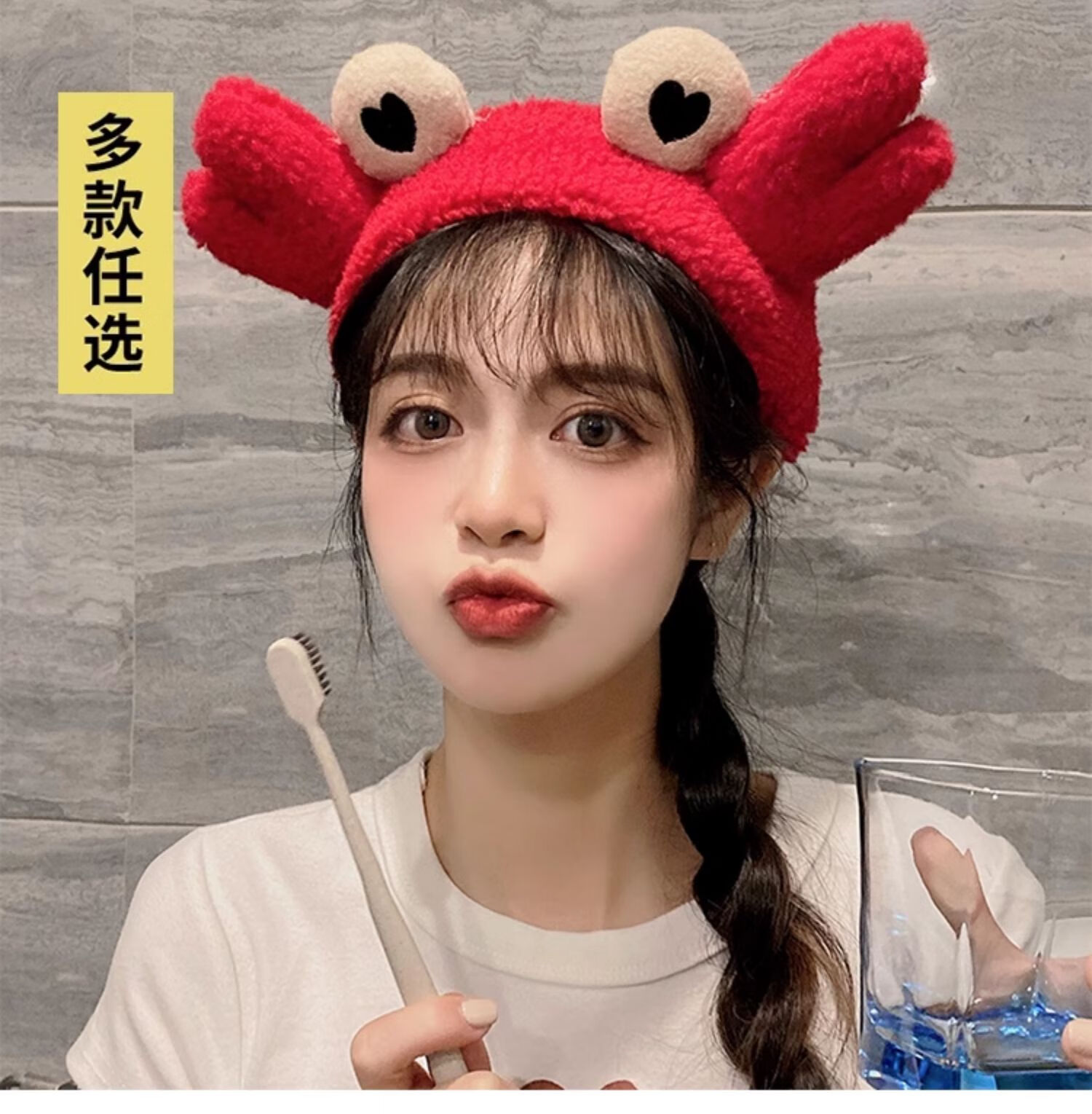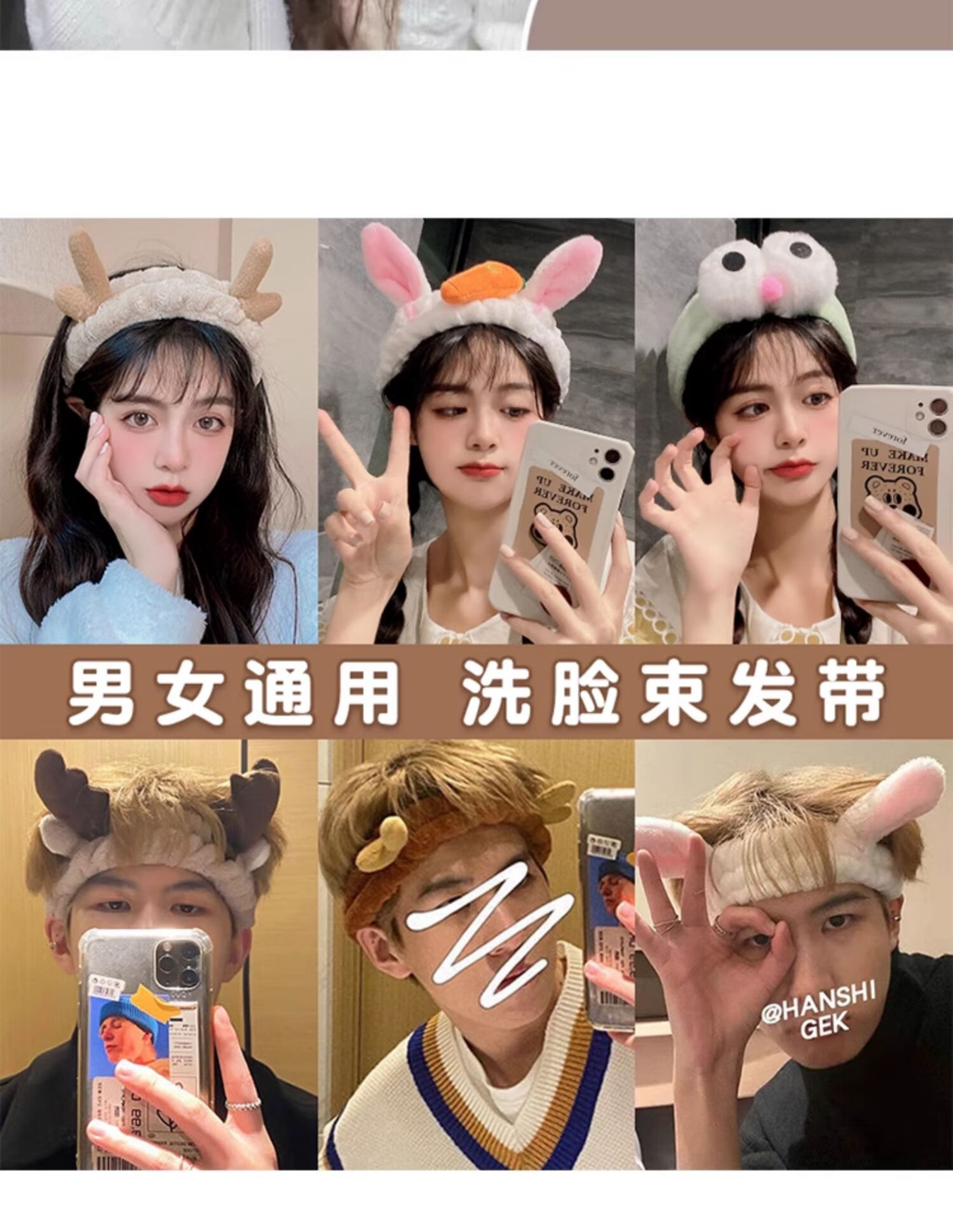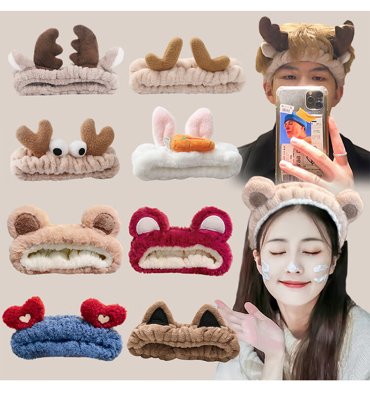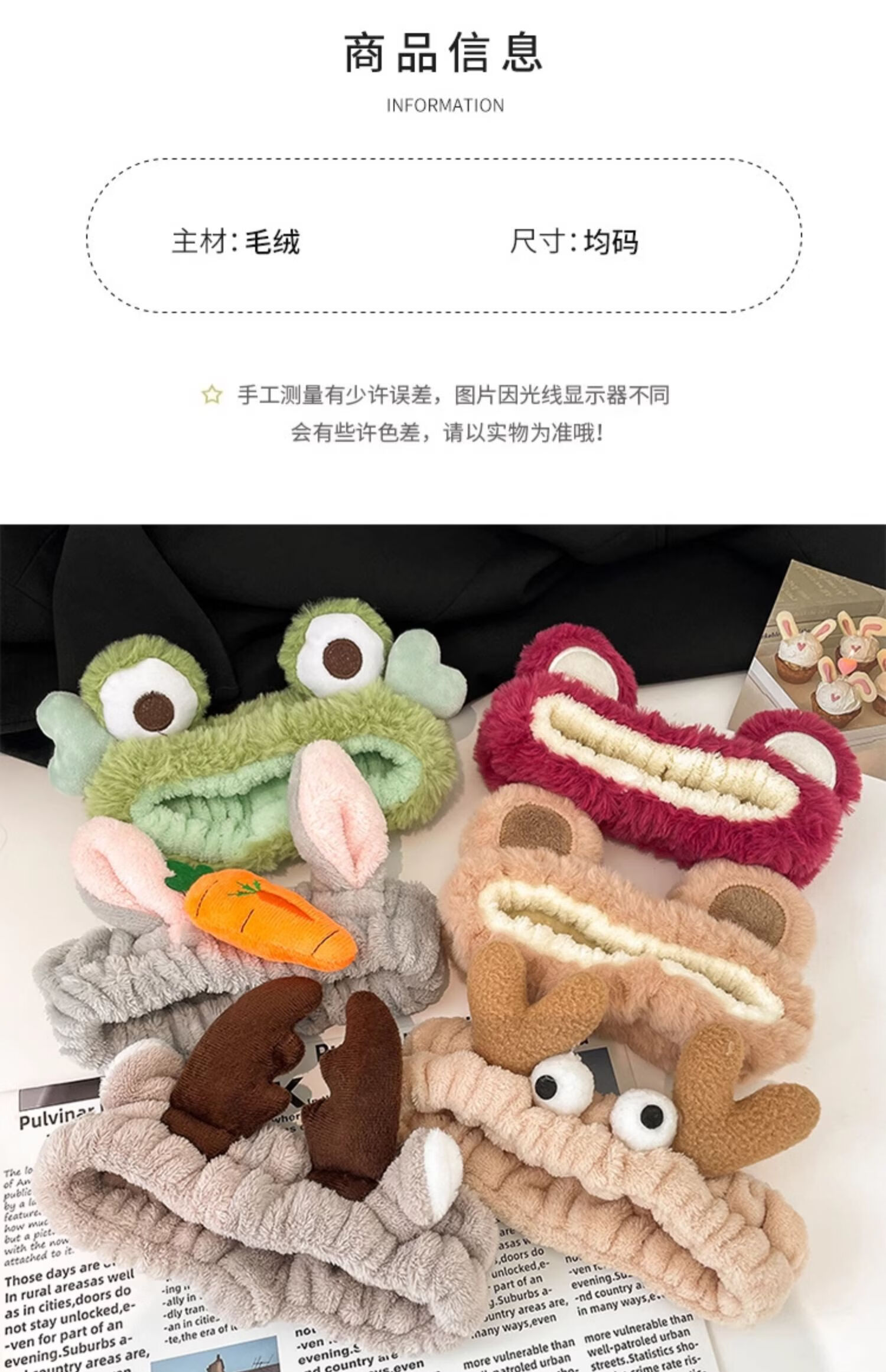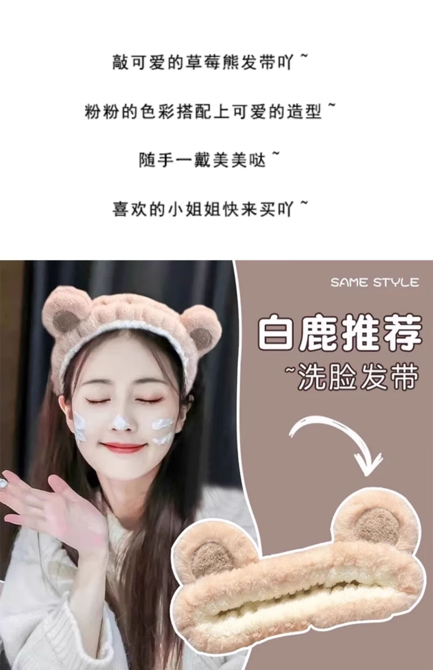 Face washing headband, cute plush hairband, women's special hair hole headband, headband, headband, hairpin, coffee bear hairband
