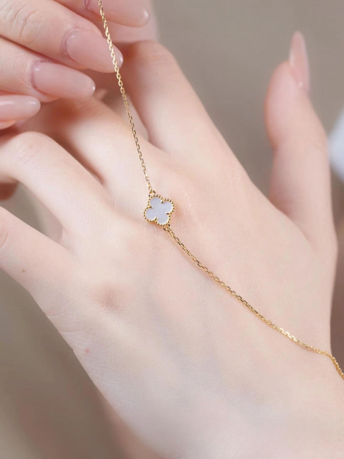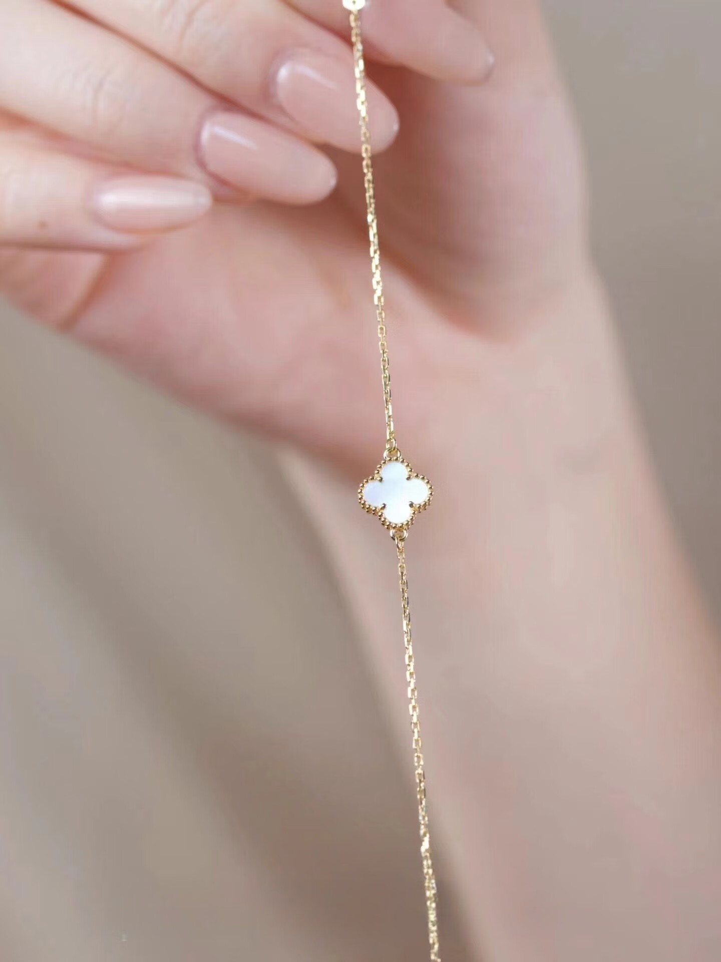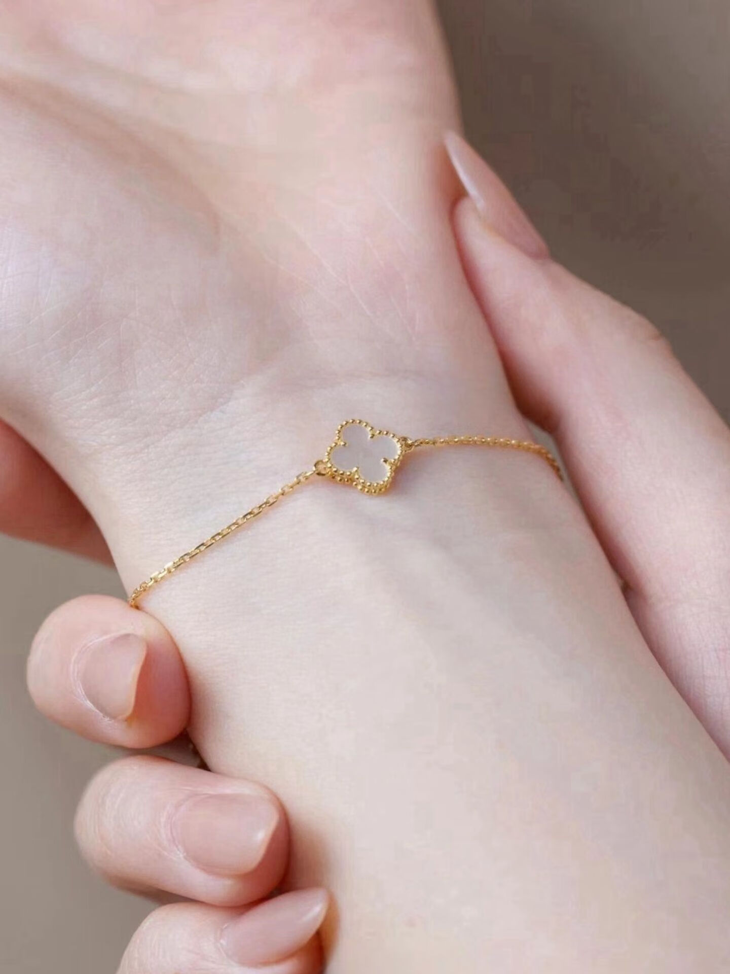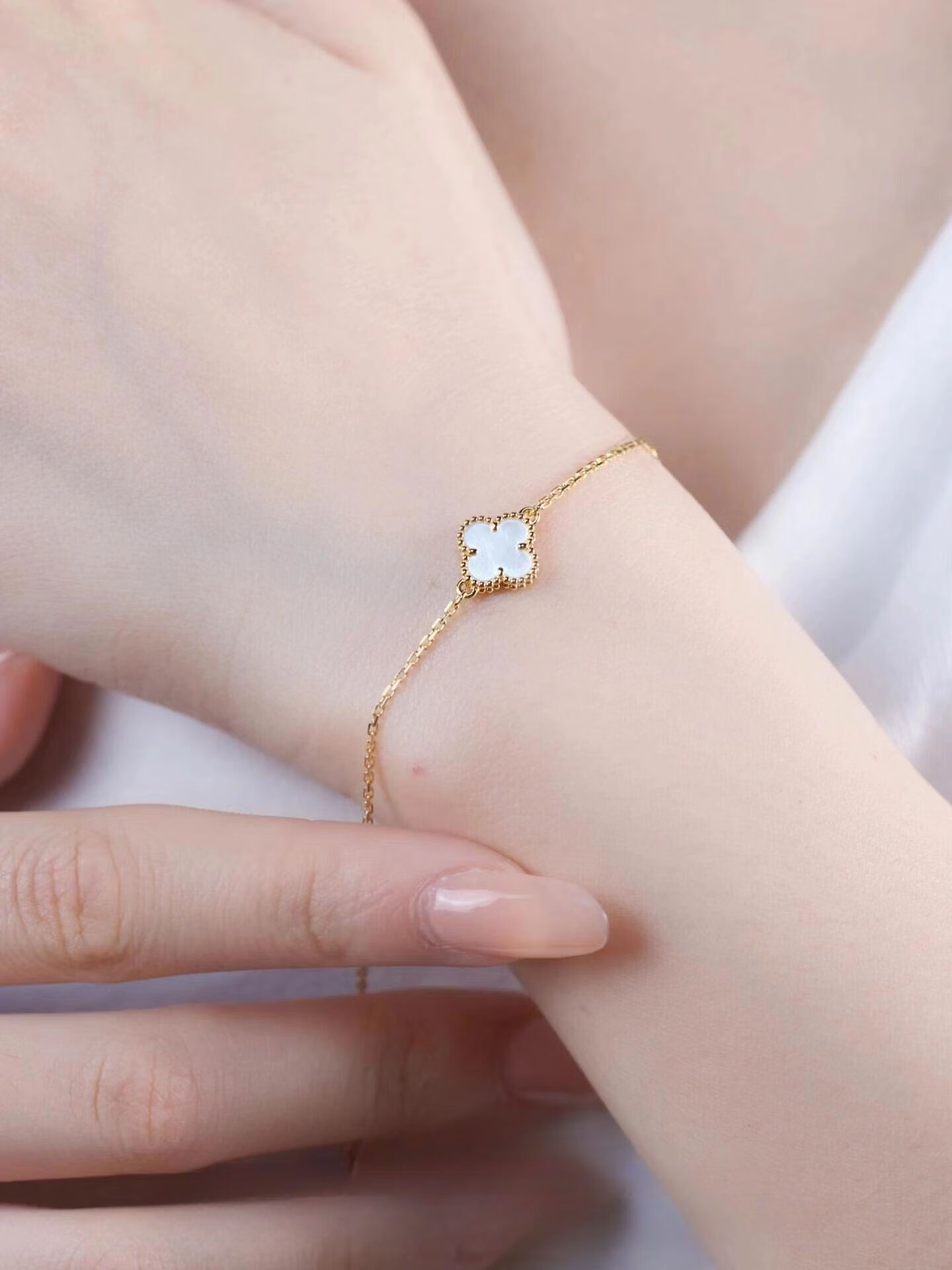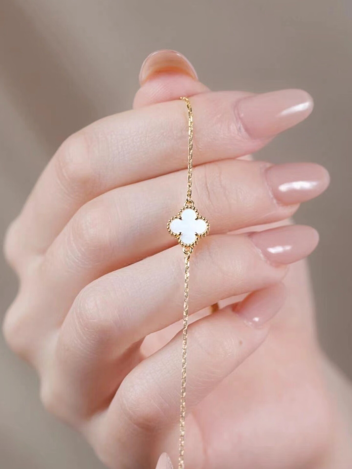 Feiyu 18k gold single flower white fritillary red horse bracelet clover gold rose gold agate counter the same style to give to your girlfriend and wife gold carnelian single flower bracelet