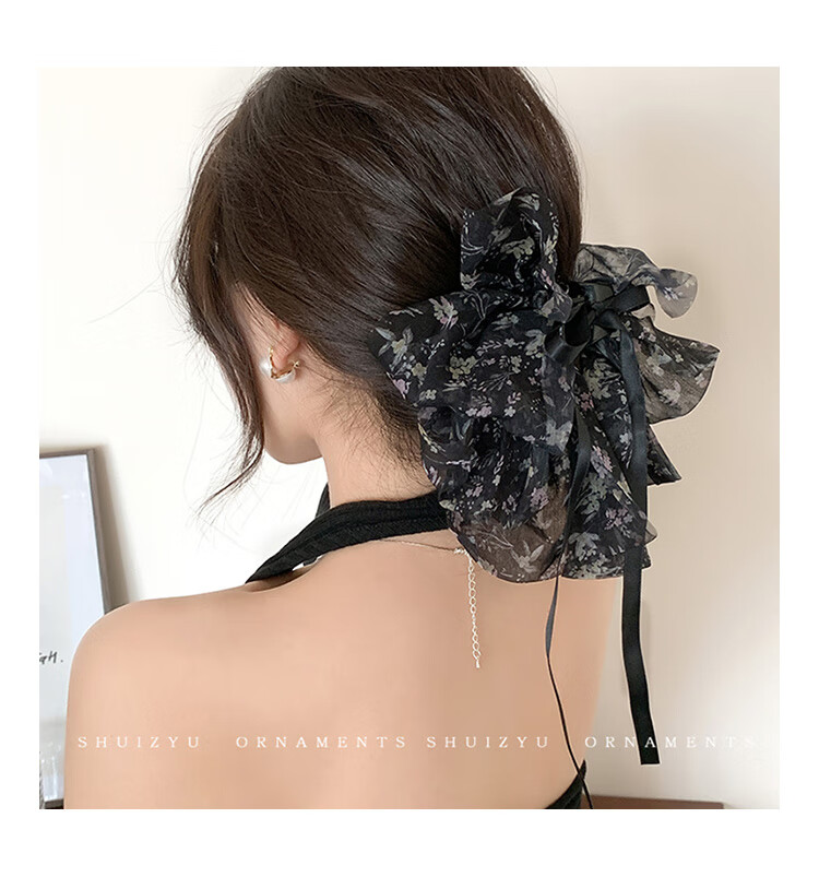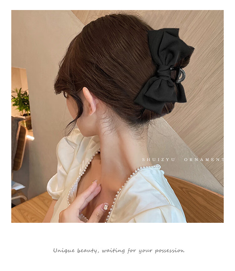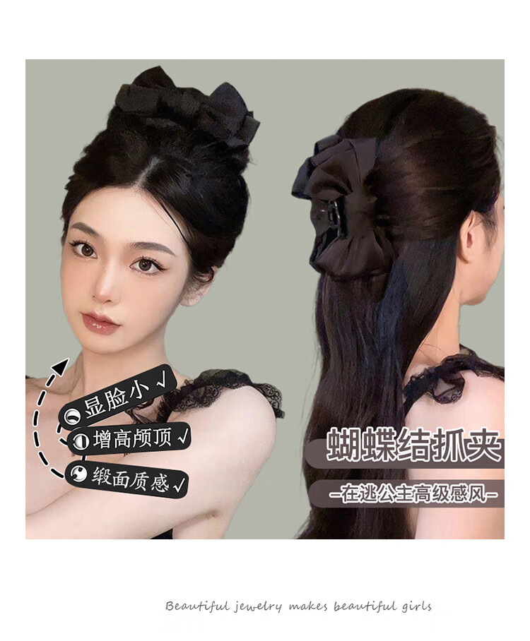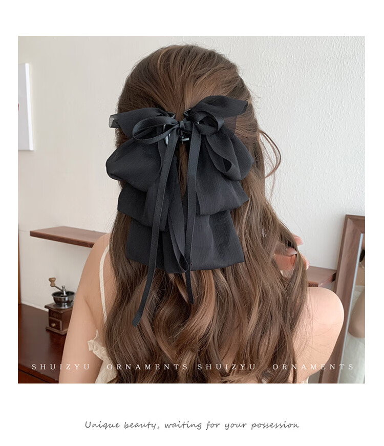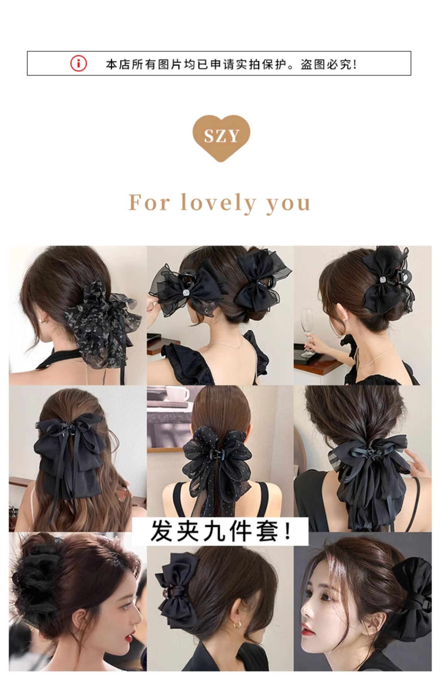 Feather Bubble Mesh Clip Women's 2025 New Shark Clip Back of Head Half-tied Hair Clip Cloud Hair Clip Headdress 3# Classic Black Satin Bow
