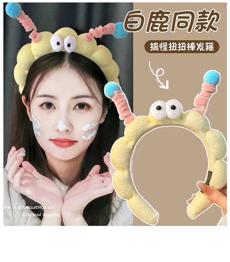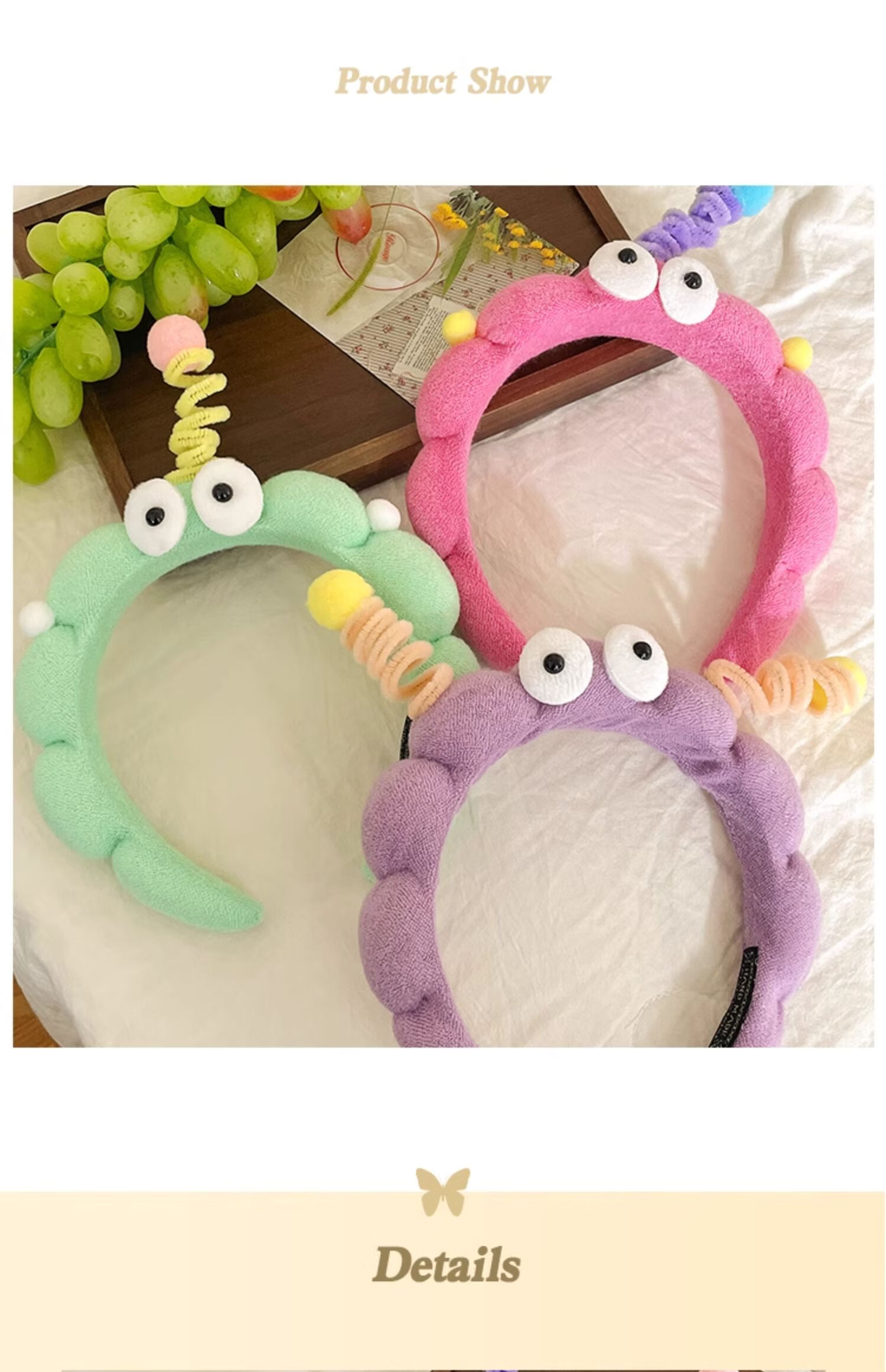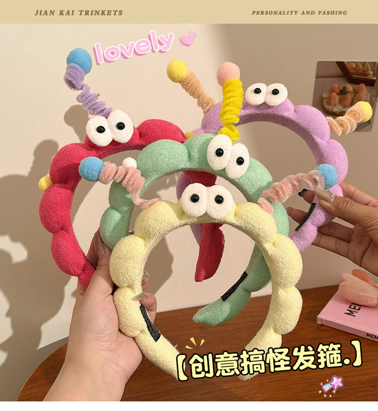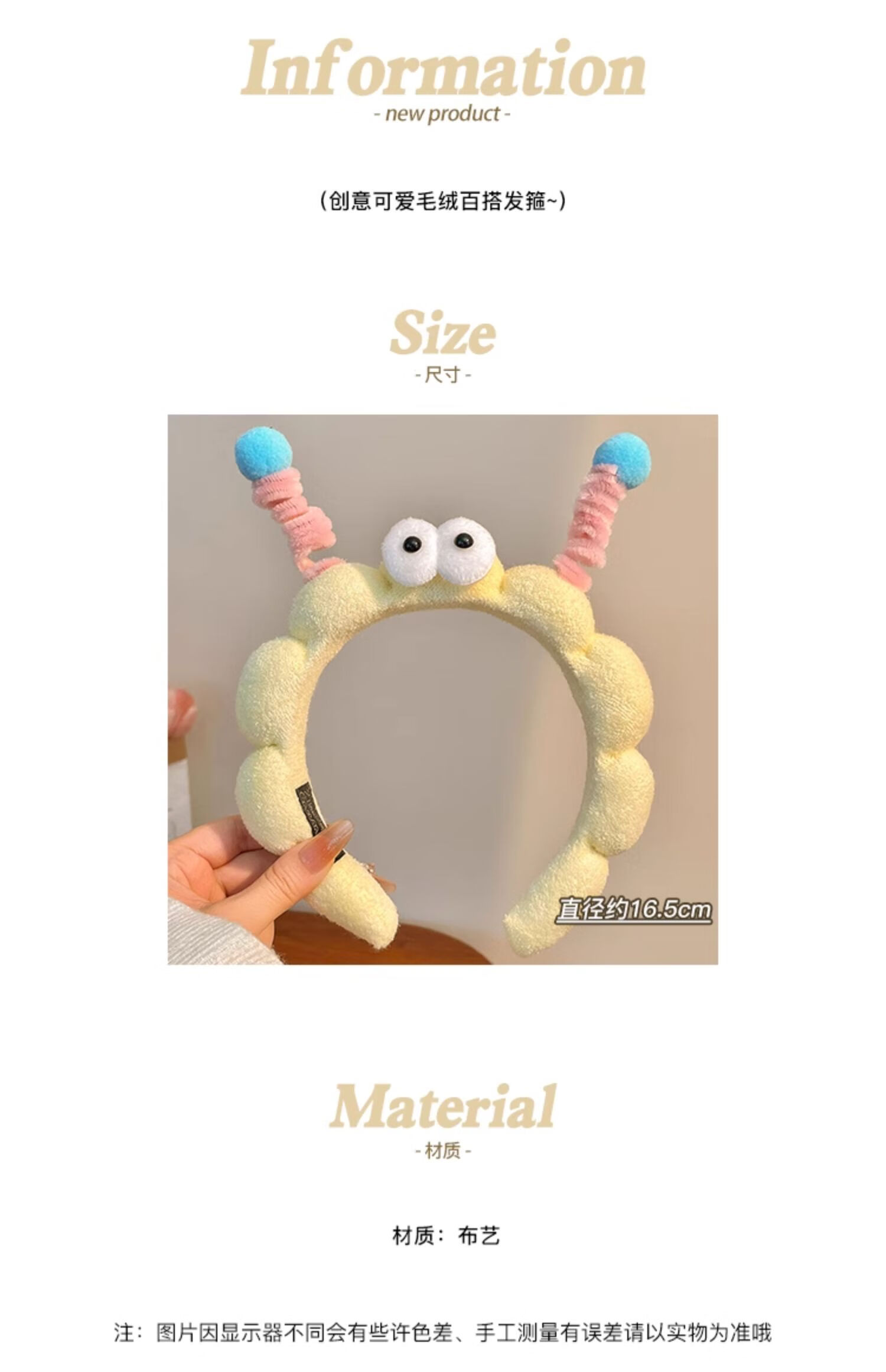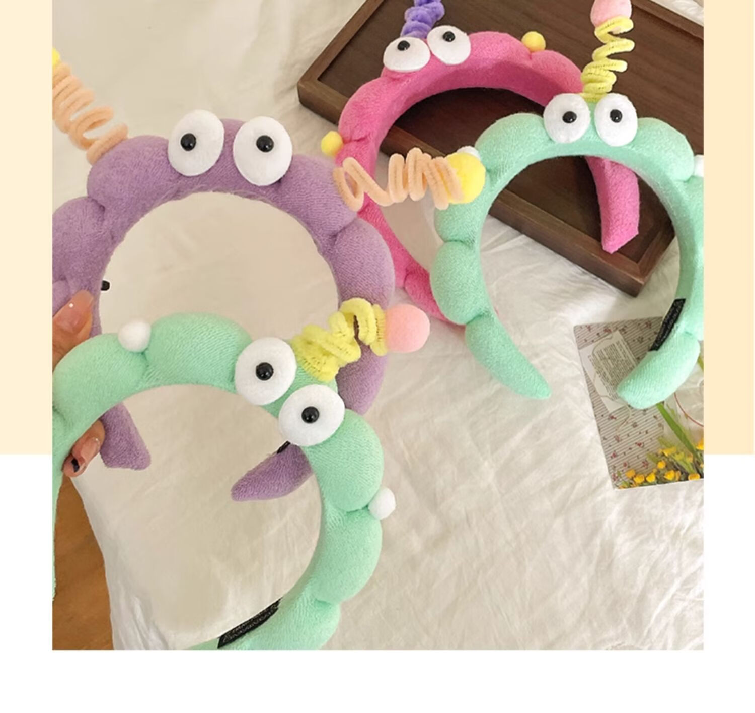 Cute and funny big-eyed plush headband for autumn and winter face washing, special pressure headband, twist stick, high skull hairpin for women, 58# honey headband