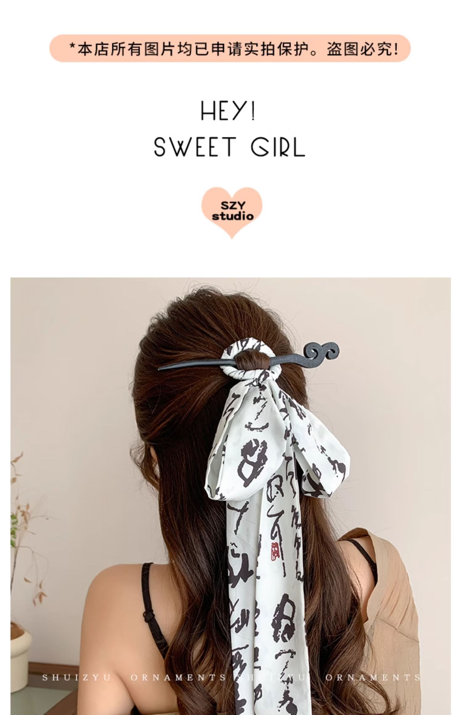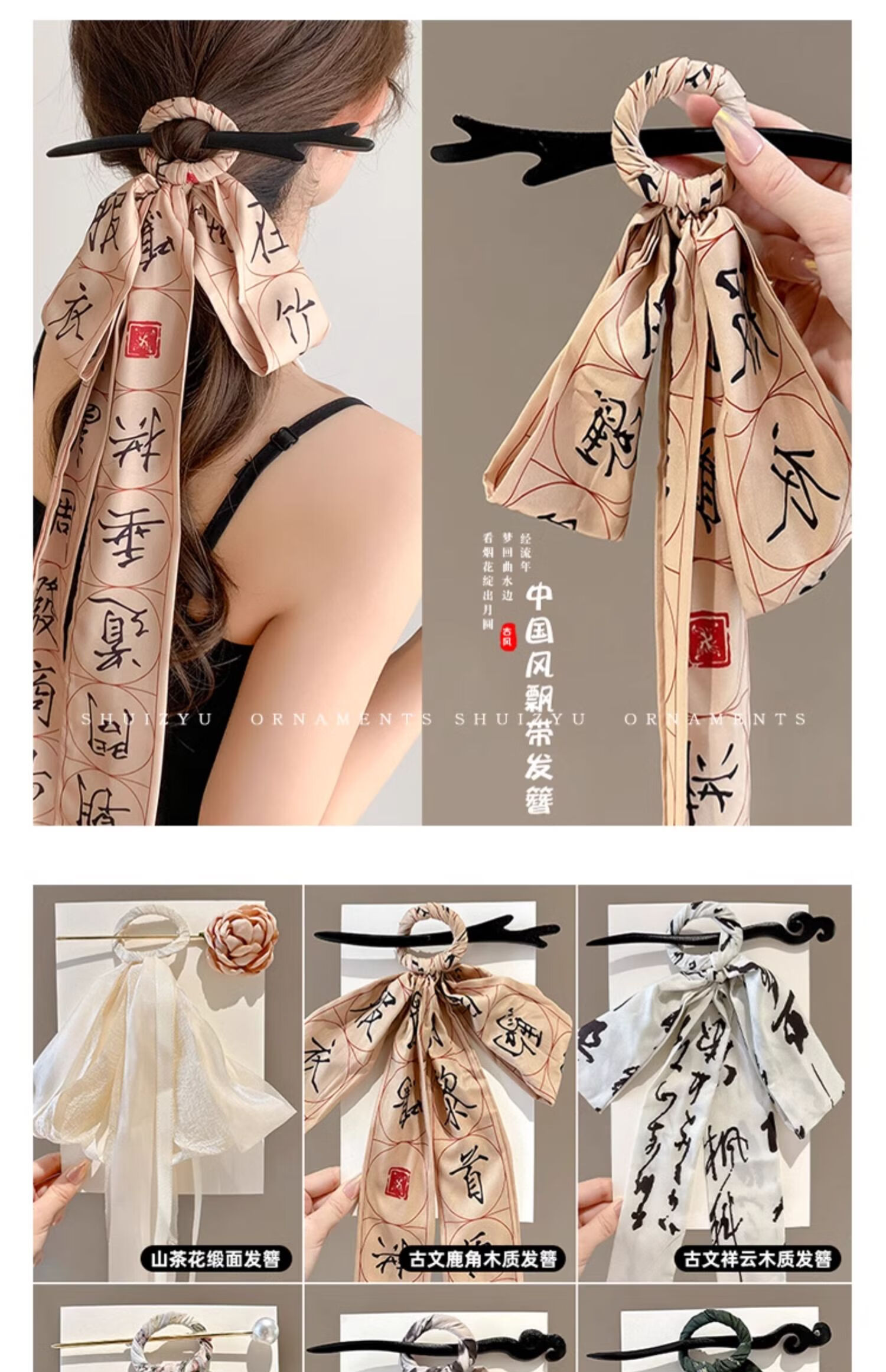 New Chinese style national style thousand-character inscription ribbon hairpin for women, ancient style updo hairpin, horse-faced skirt, Hanfu hairband and headdress, ancient style deer antler hairpin