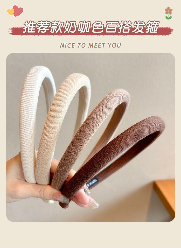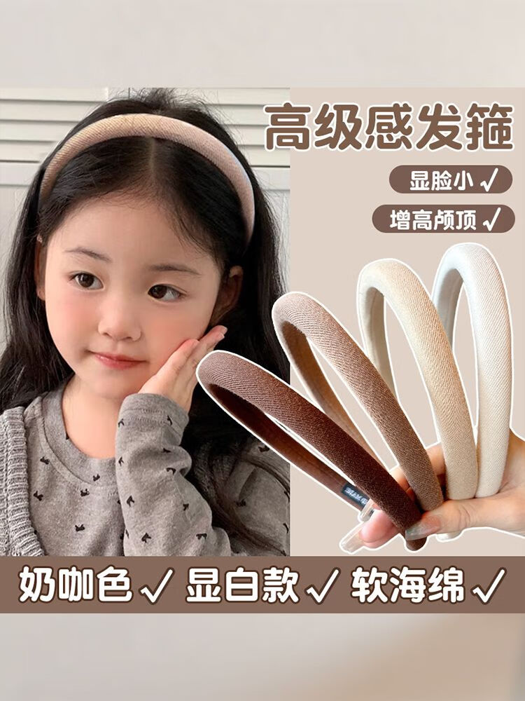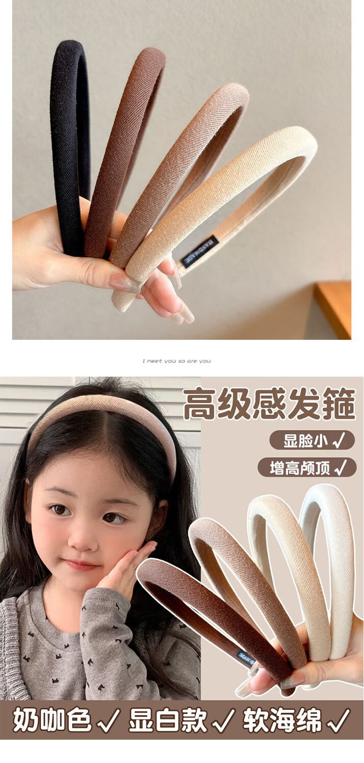Children's simple coffee-colored hair hoops for girls spring and summer Maillard sponge hair hoops for girls with versatile hair clips and headgear. Hot sale. Main picture 4-piece set.