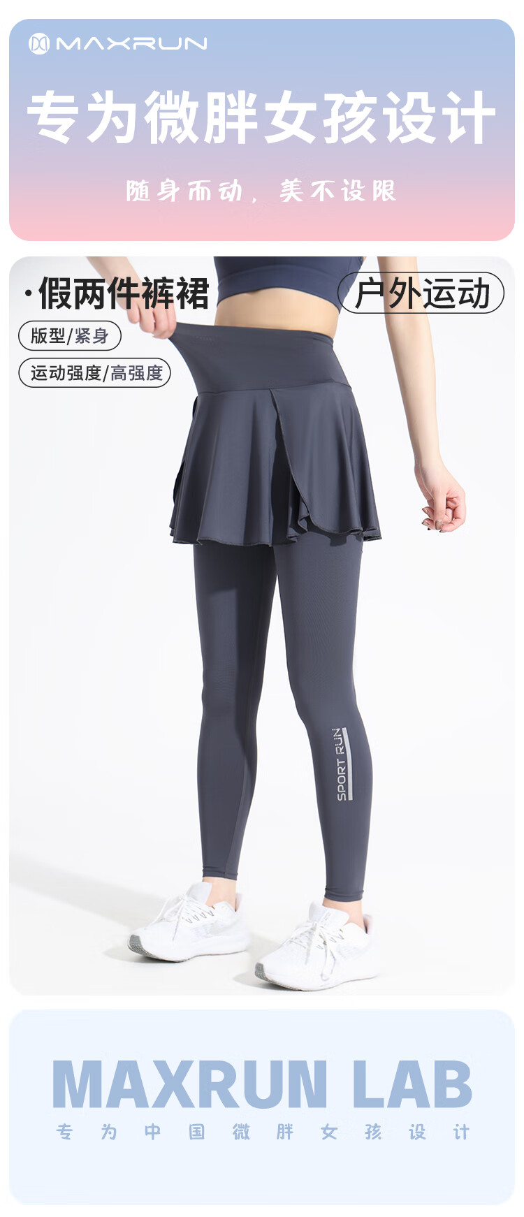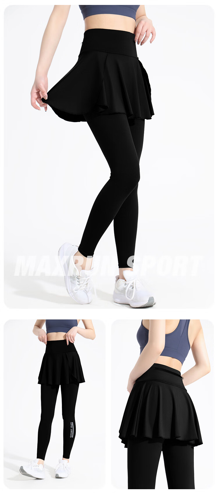 MAXRUN WORLDmaxrun fake two-piece fitness pants for women high-waist training running sports pants and skirts large size Pilates yoga pants and skirts black 4XL (180-205Jin Jin equals 0.5 kg)