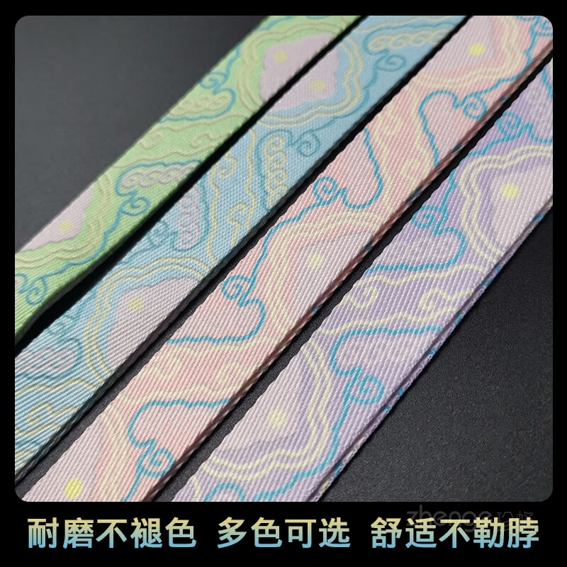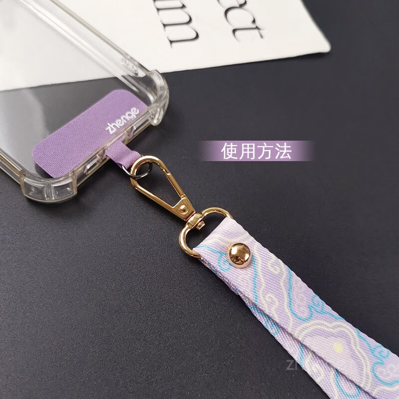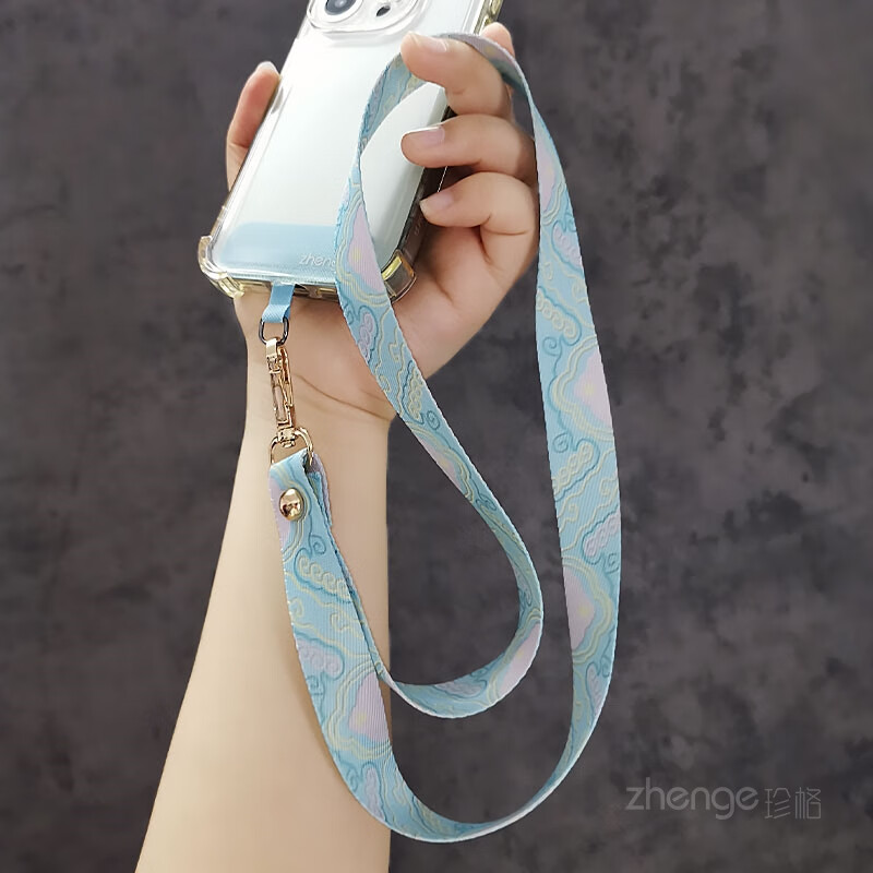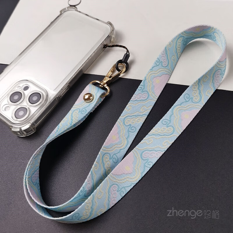 Xinzhu mobile phone lanyard national style rich auspicious clouds long style ins wide version painted cloth strap does not strangle the neck long style women's outdoor travel men's anti-lost mobile phone case key lanyard new purple-rich auspicious clouds painted woven lanyard + purple long clip + small lanyard