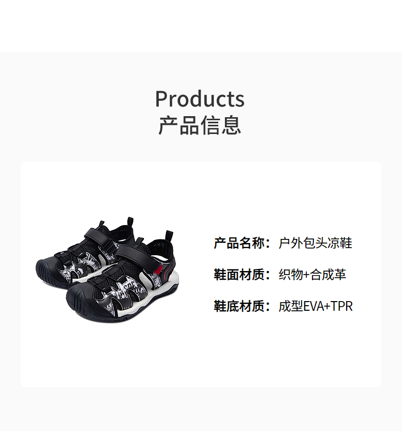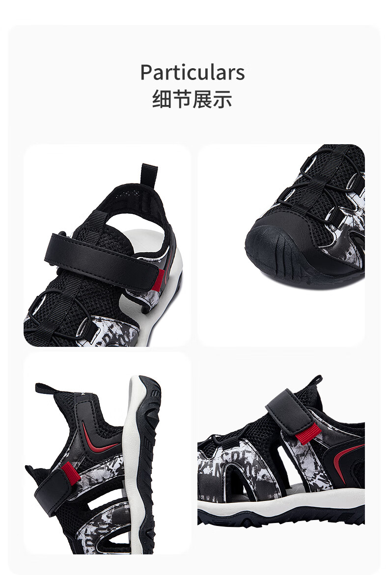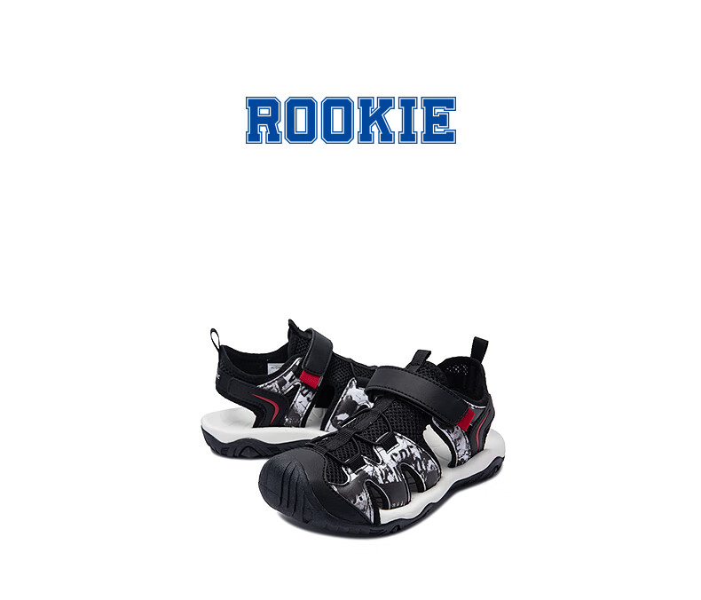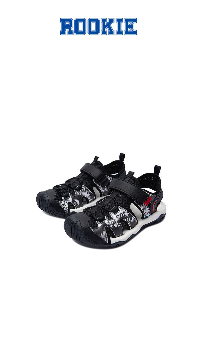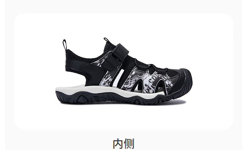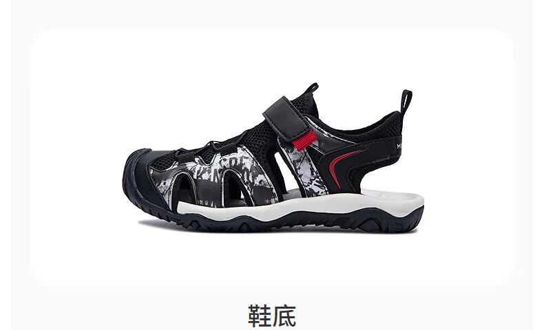 MIGHTY-MAC children's shoes, boys' toe-cap anti-collision sandals, summer new outdoor breathable Velcro children's sports sandals, black/white 31, recommended foot length 19.5cm