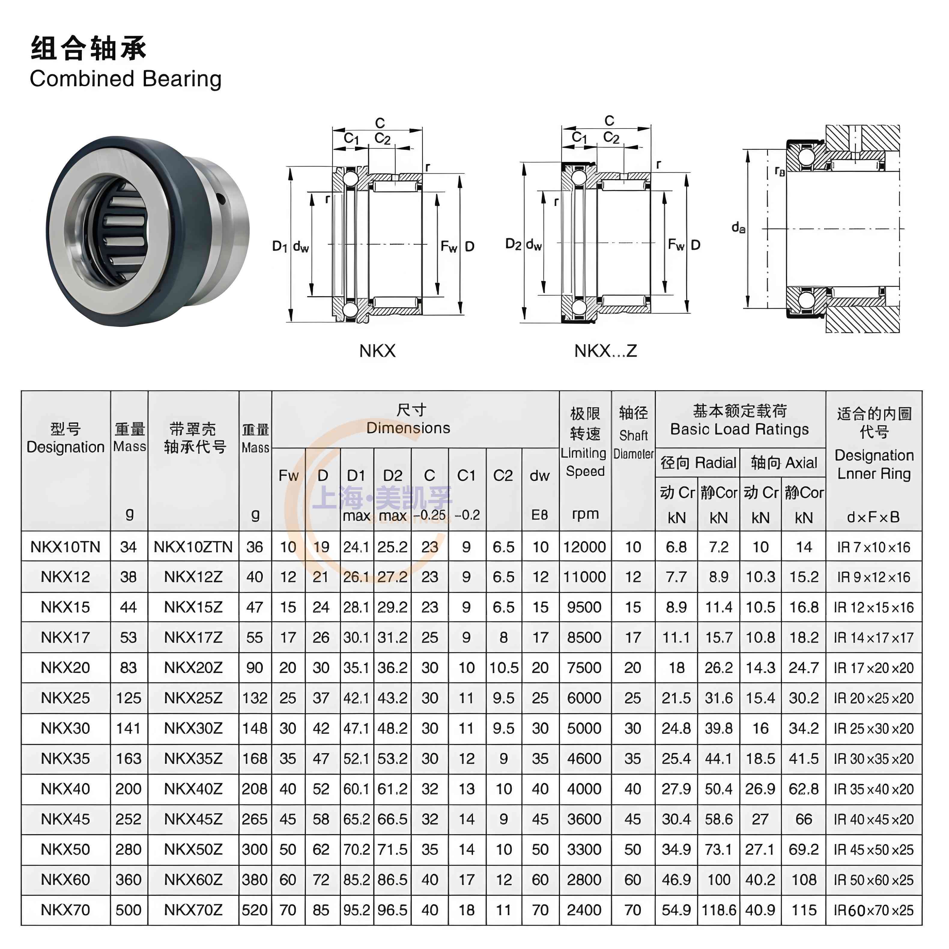 Customized thrust needle roller combination bearing NKX inner diameter 10 12 15 17 20 25 30 35 40 45 506 NKX17Z