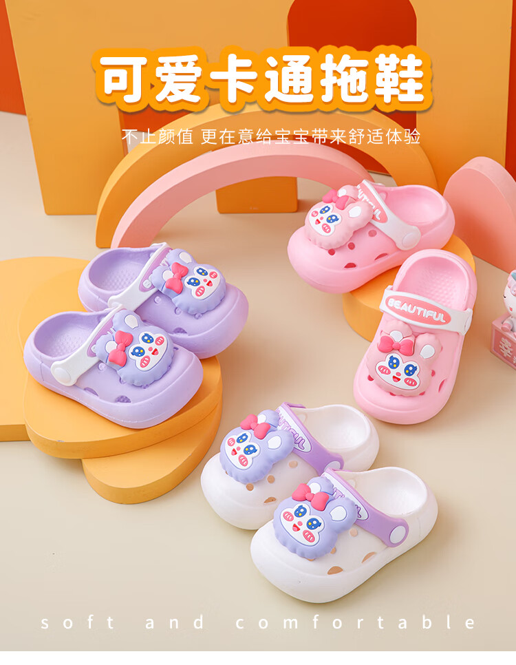Caixing Galaxy Children's Slippers Summer Non-slip Soft Soled Big Children's Baby Indoor Slippers Pink Butterfly Rabbit 14 Suitable for Feet Length 13-13.5CM