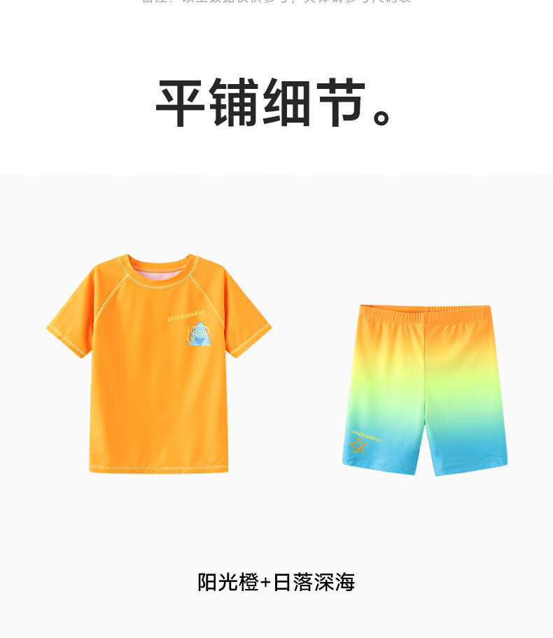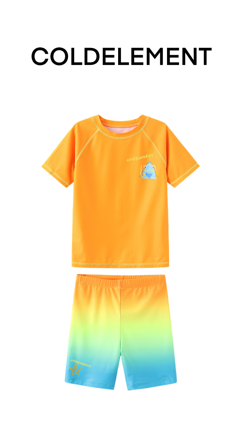 Cold element Coldelement children's swimsuit short-sleeved boys' new summer sunscreen UPF50+baby swimsuit fluorescent color sunshine orange+swimming trunks 6XS (110) 25-35Jin Jin equals 0.5 kg