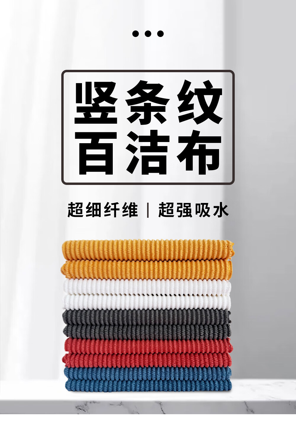 Household daily rags, vertical striped scouring pads, absorbent, non-stick, oil-removing, decontamination and degreasing microfiber rags, yellow, 2 pack