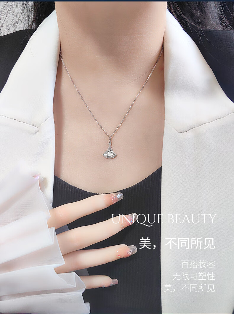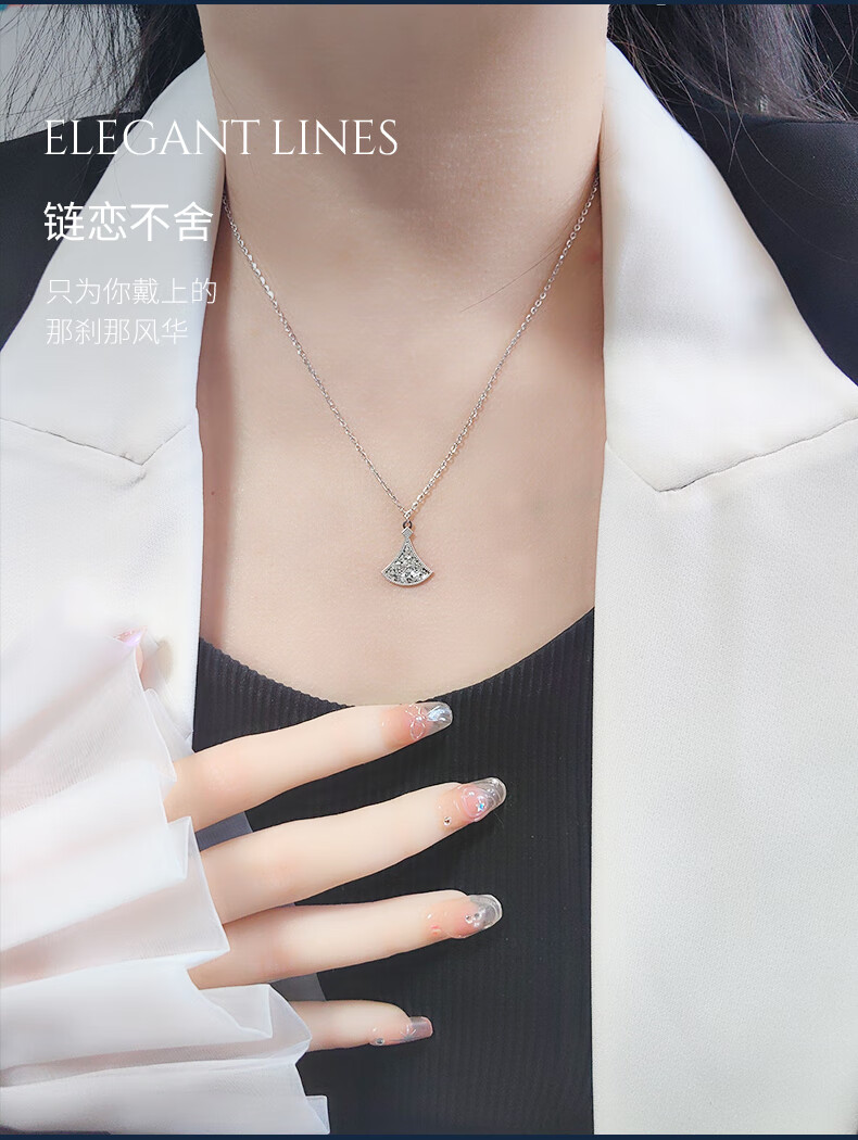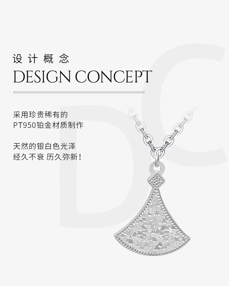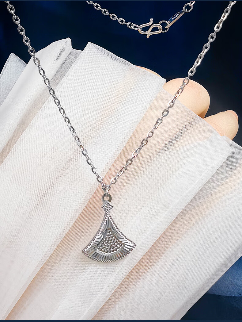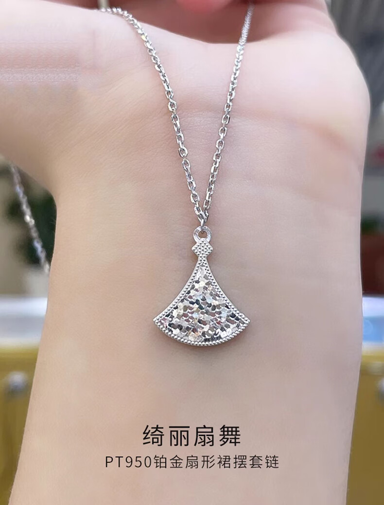 Di Hou PT950 platinum fan-shaped skirt necklace for women platinum crushed ice light luxury 520 Valentine's Day gift for girlfriend and wife PT950 platinum fan-shaped skirt platinum necklace for women