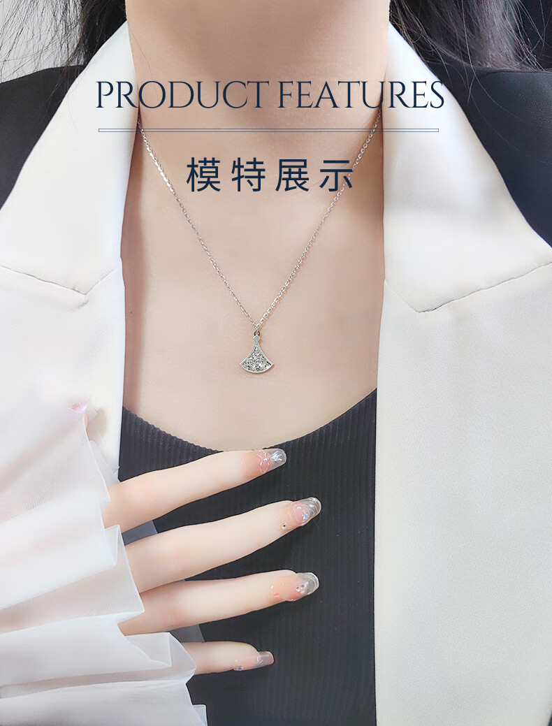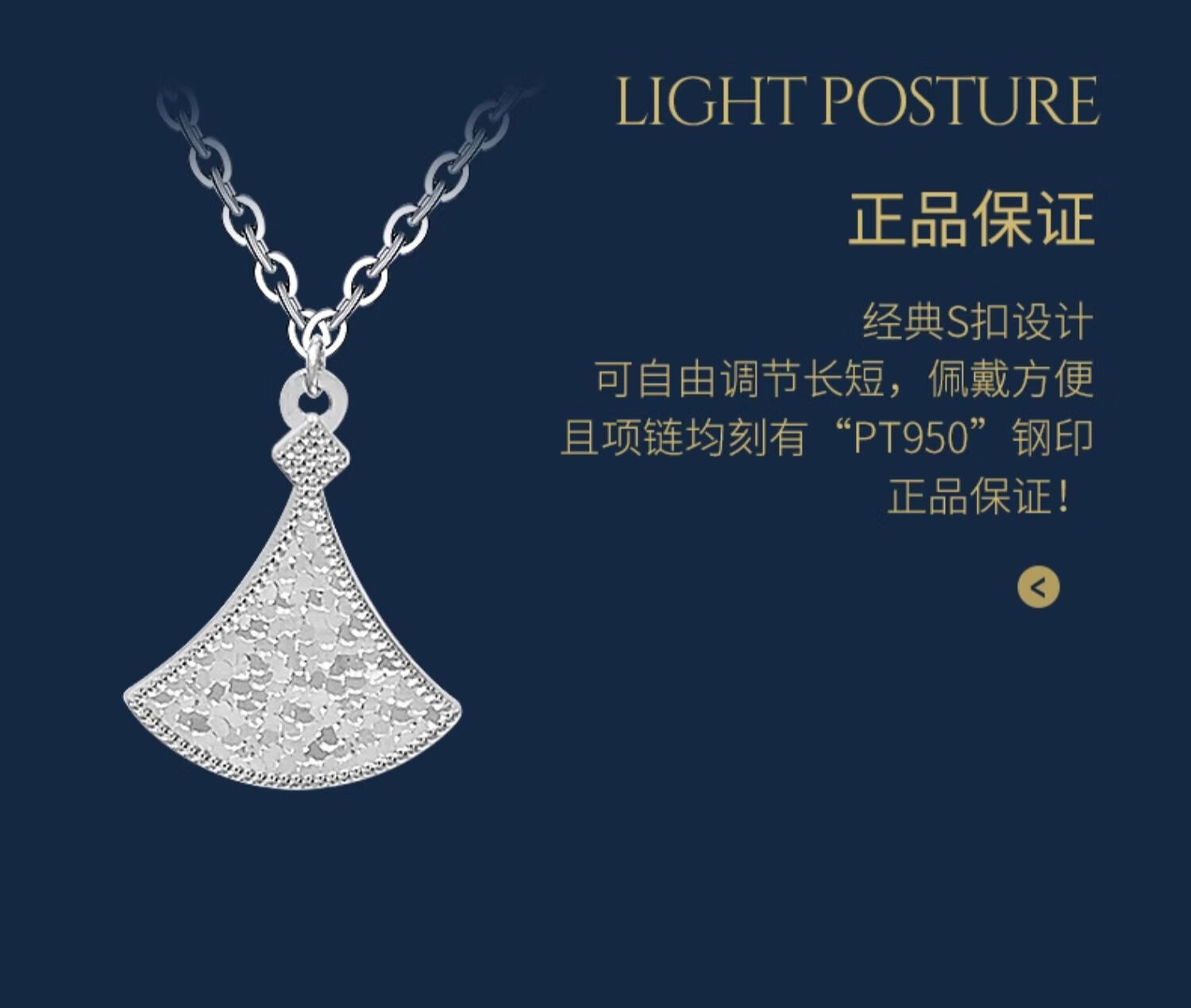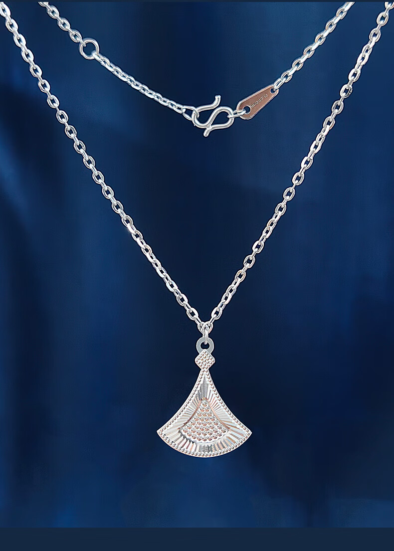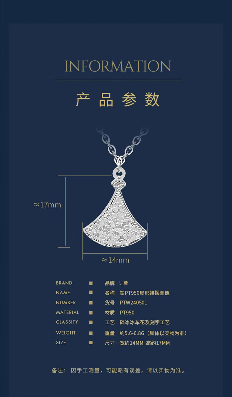 Di Hou PT950 platinum fan-shaped skirt necklace for women platinum crushed ice light luxury 520 Valentine's Day gift for girlfriend and wife PT950 platinum fan-shaped skirt platinum necklace for women