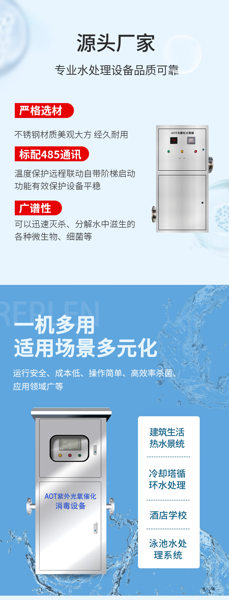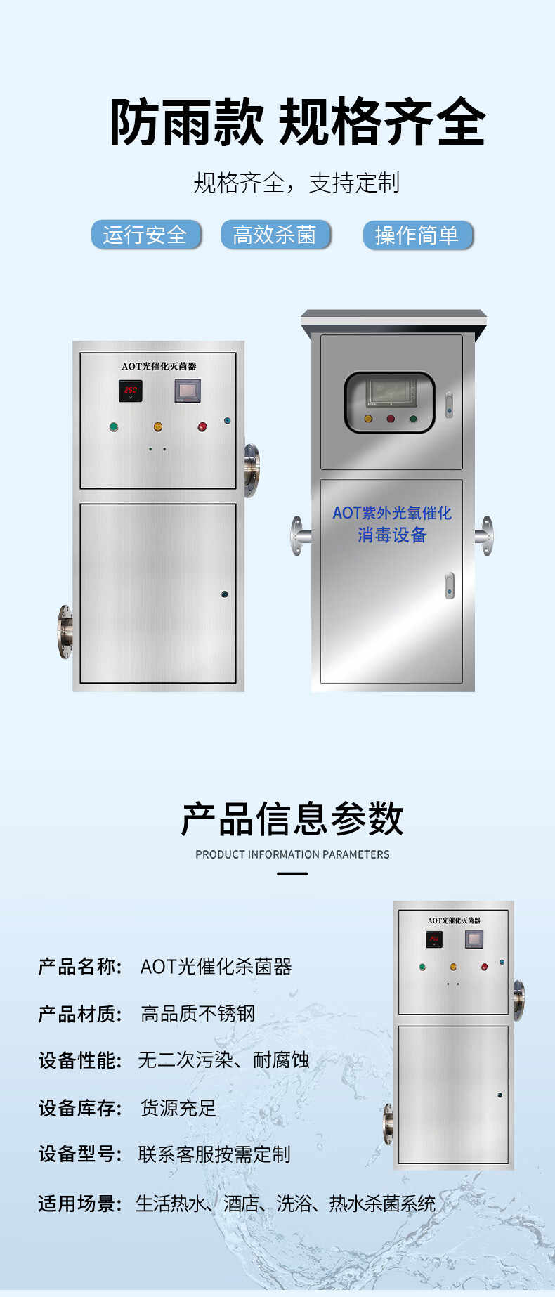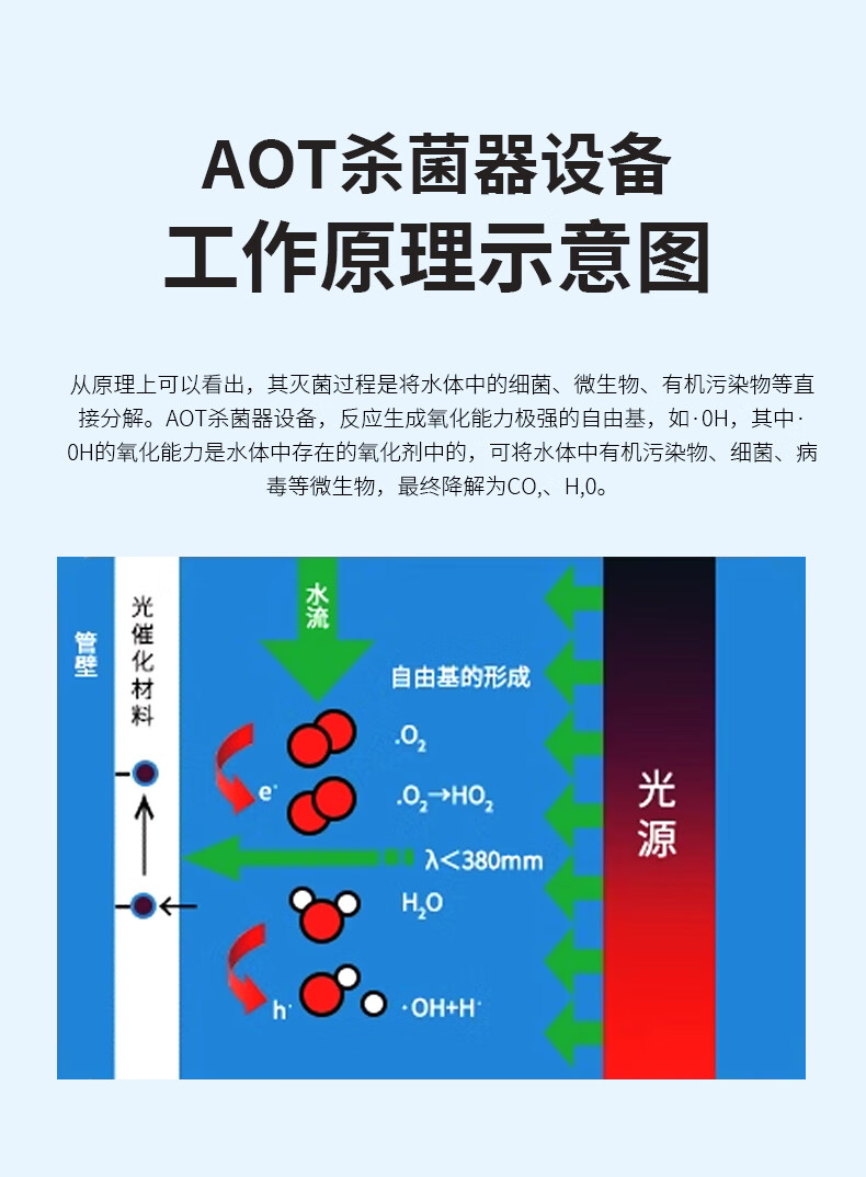 Ruixiaoquan AOT titanium dioxide photocatalytic sterilizer ultraviolet sterilizer hot water sterilization equipment commercial industrial shopping mall school hospital community tap water domestic pump room AOT-50