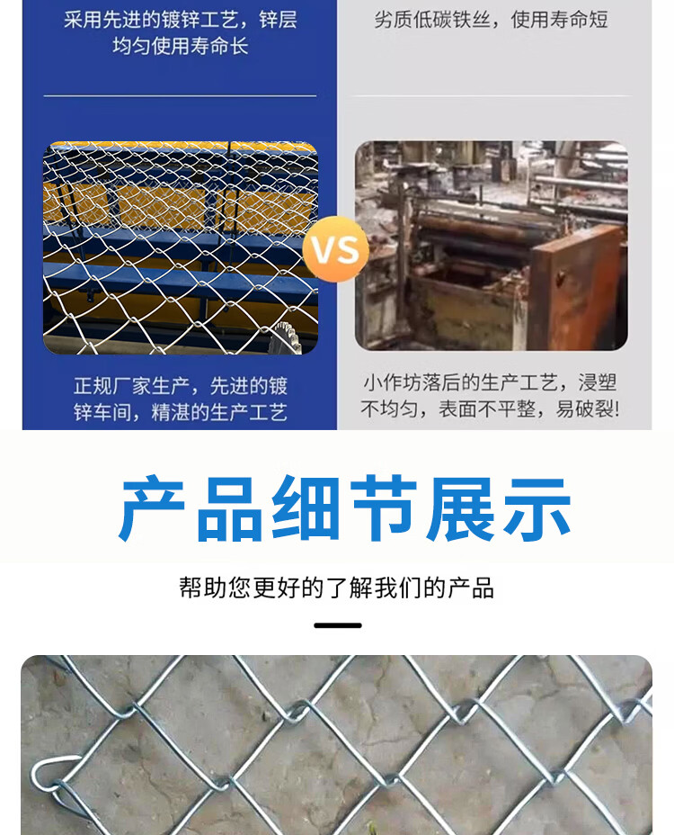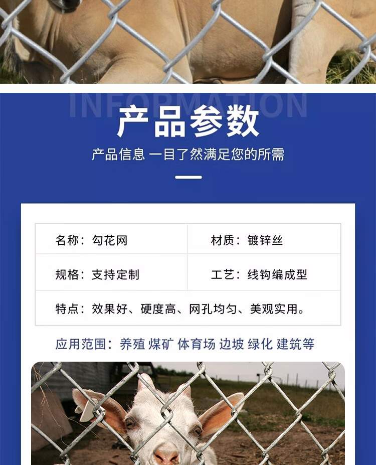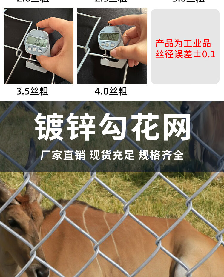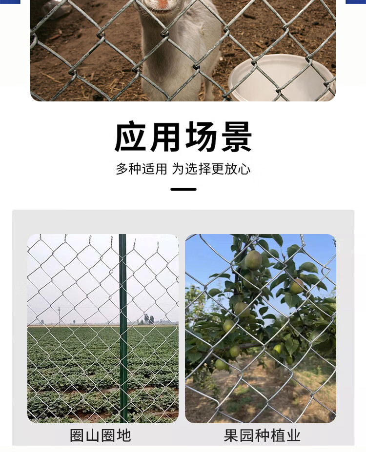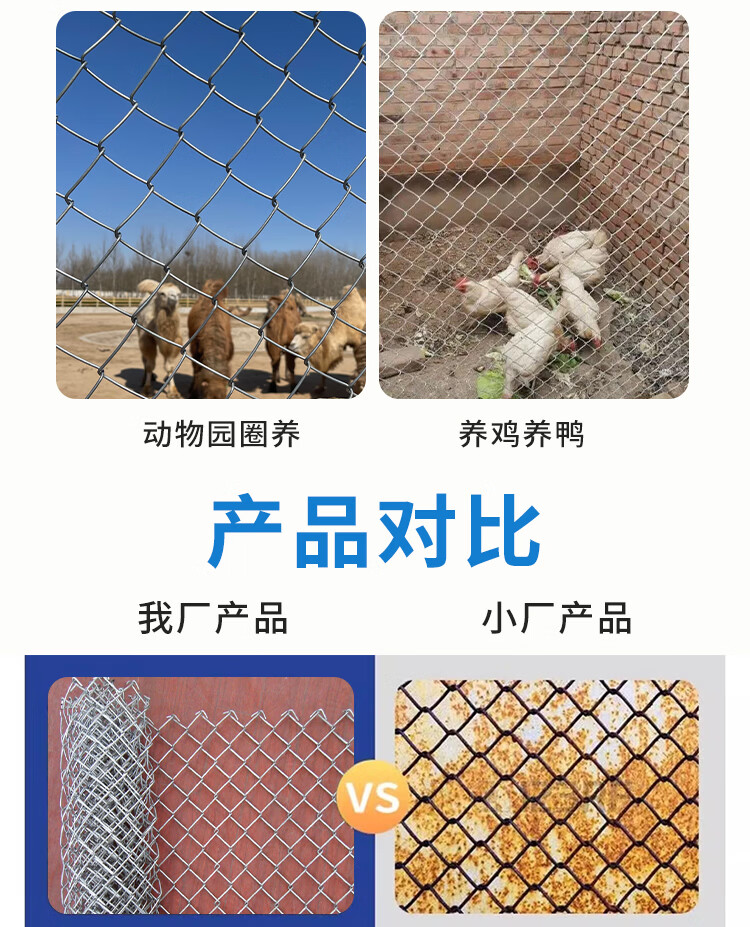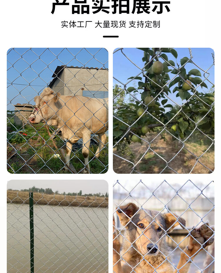 Hot-dip galvanized chain link fence is durable, breeding wire mesh, chicken, cattle and sheep fence protection net is rust-resistant and corrosion-resistant. Hot-dip galvanized chain link fence 1.2 height 2.0 thick 8 cm hole 10 meters