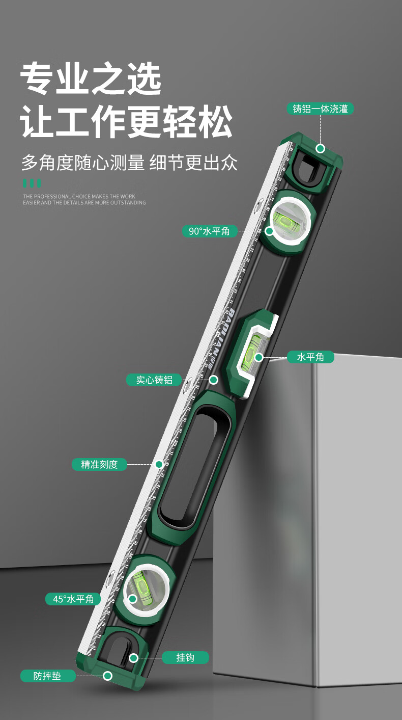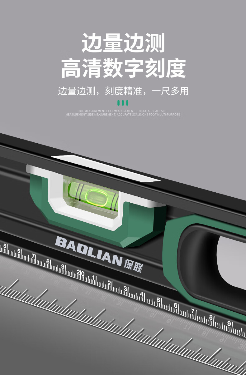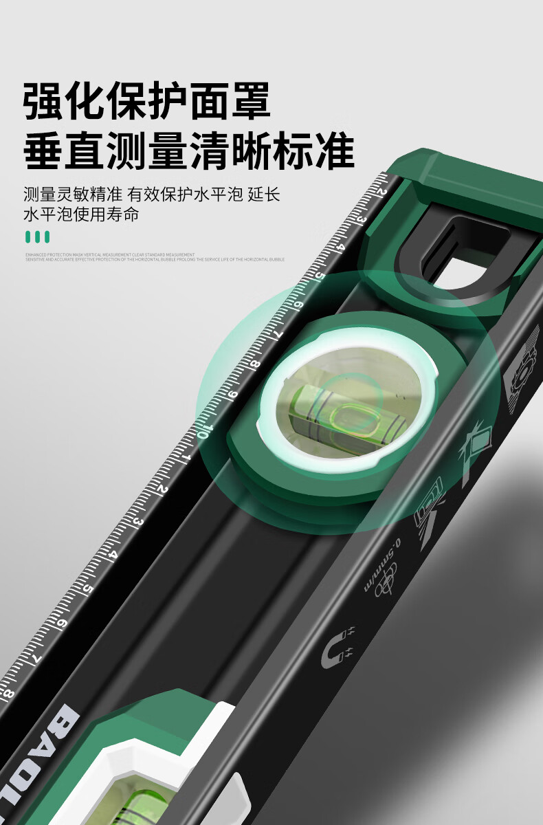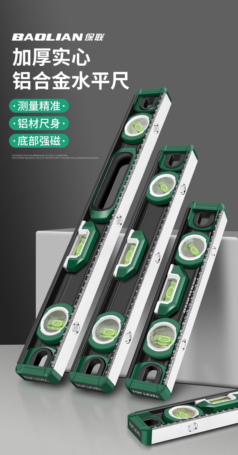 Baolian spirit level high-precision household leveling instrument small strong magnetic ruler solid anti-fall multi-functional thick cast aluminum level industrial grade solid cast aluminum 400mm strong magnetic