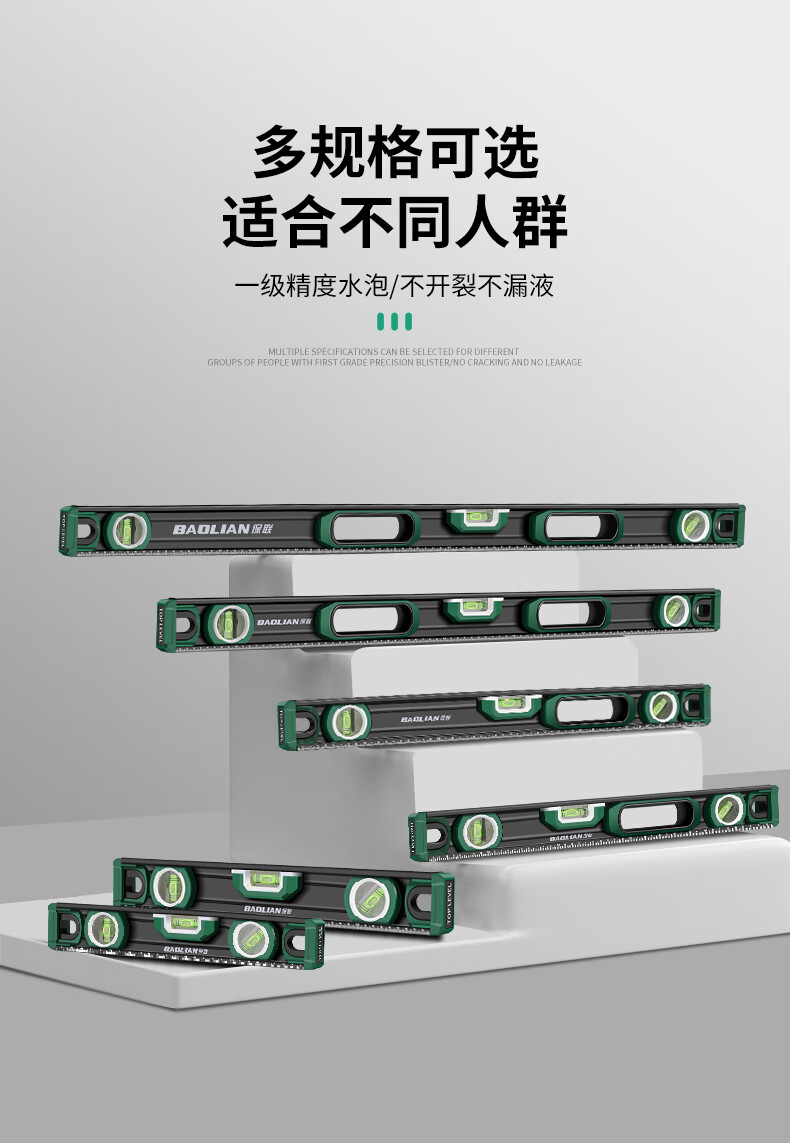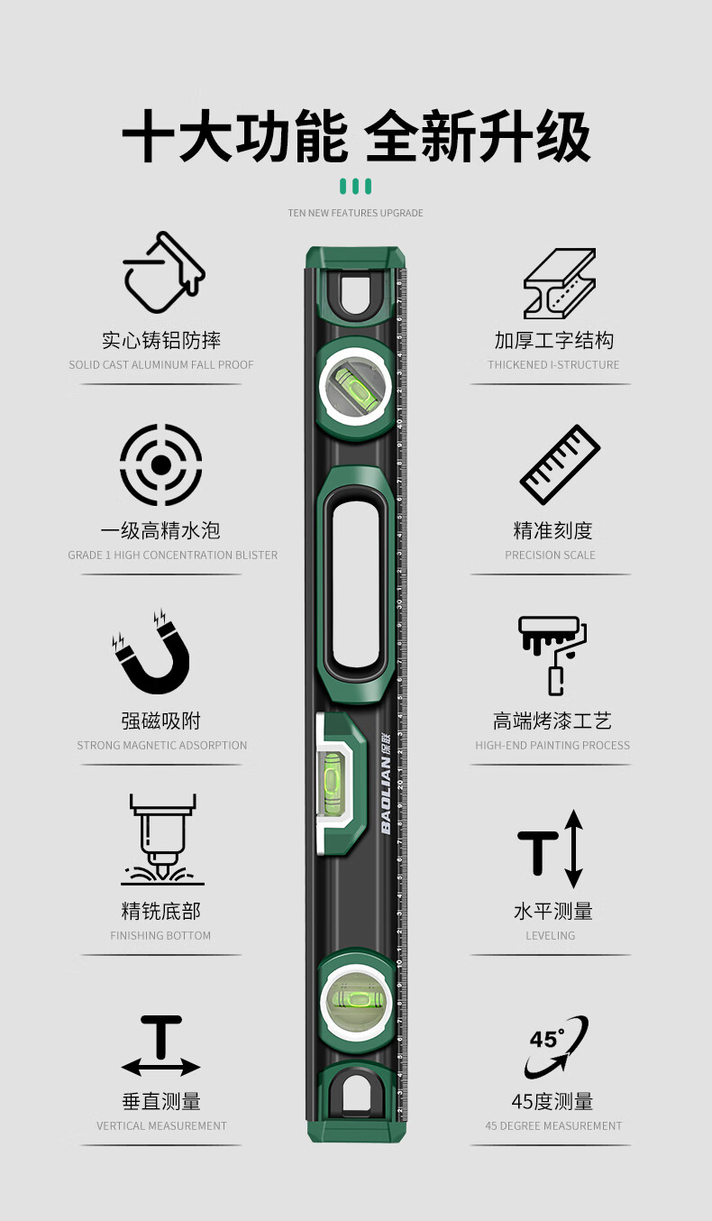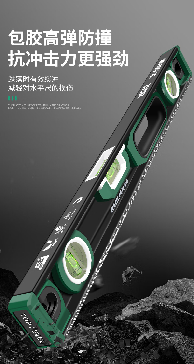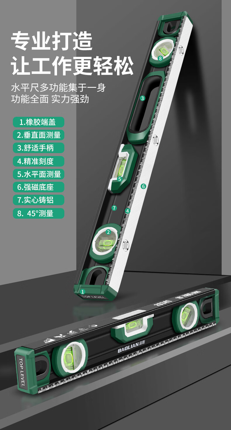 Baolian spirit level high-precision household leveling instrument small strong magnetic ruler solid anti-fall multi-functional thick cast aluminum level industrial grade solid cast aluminum 400mm strong magnetic
