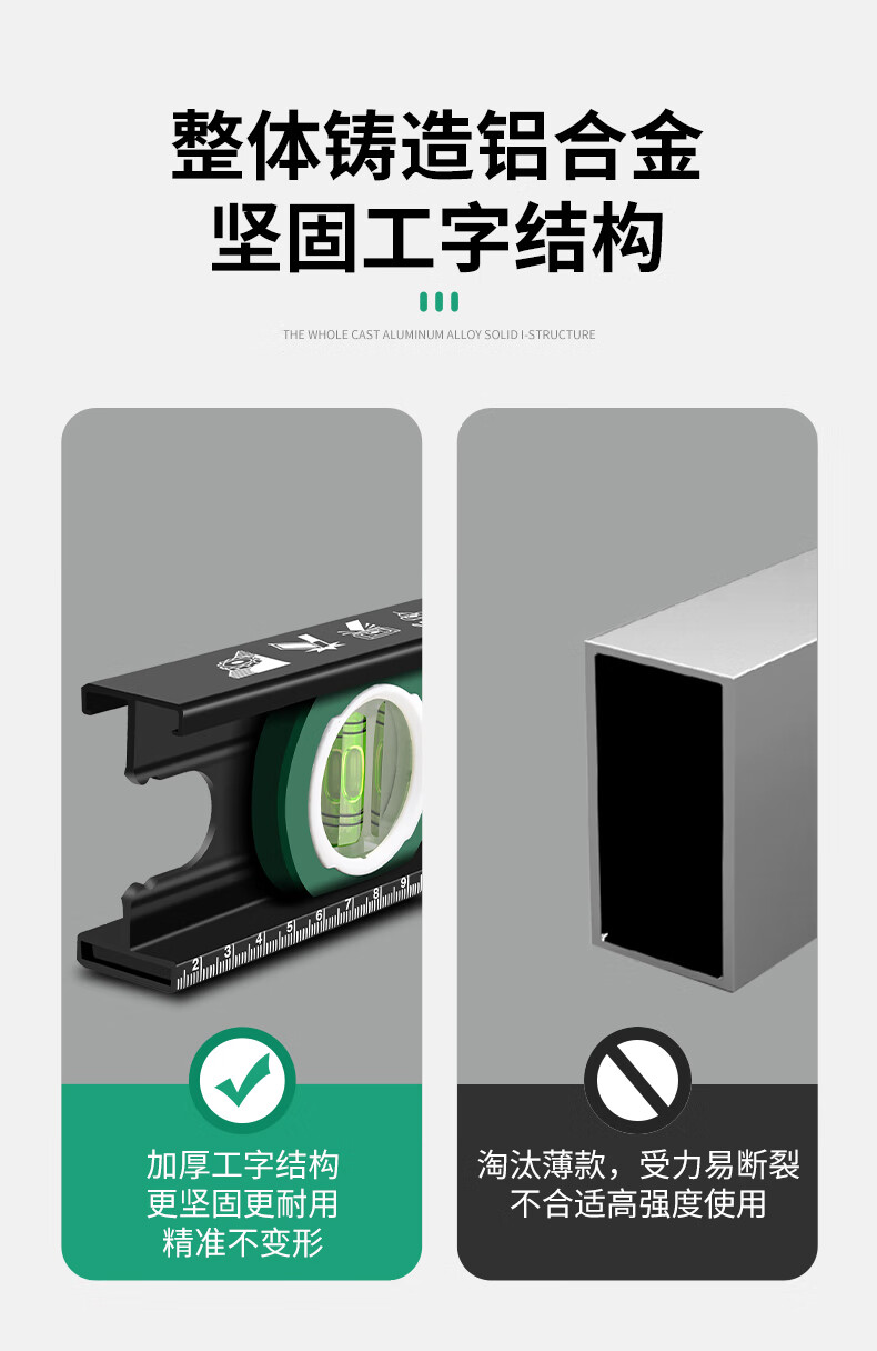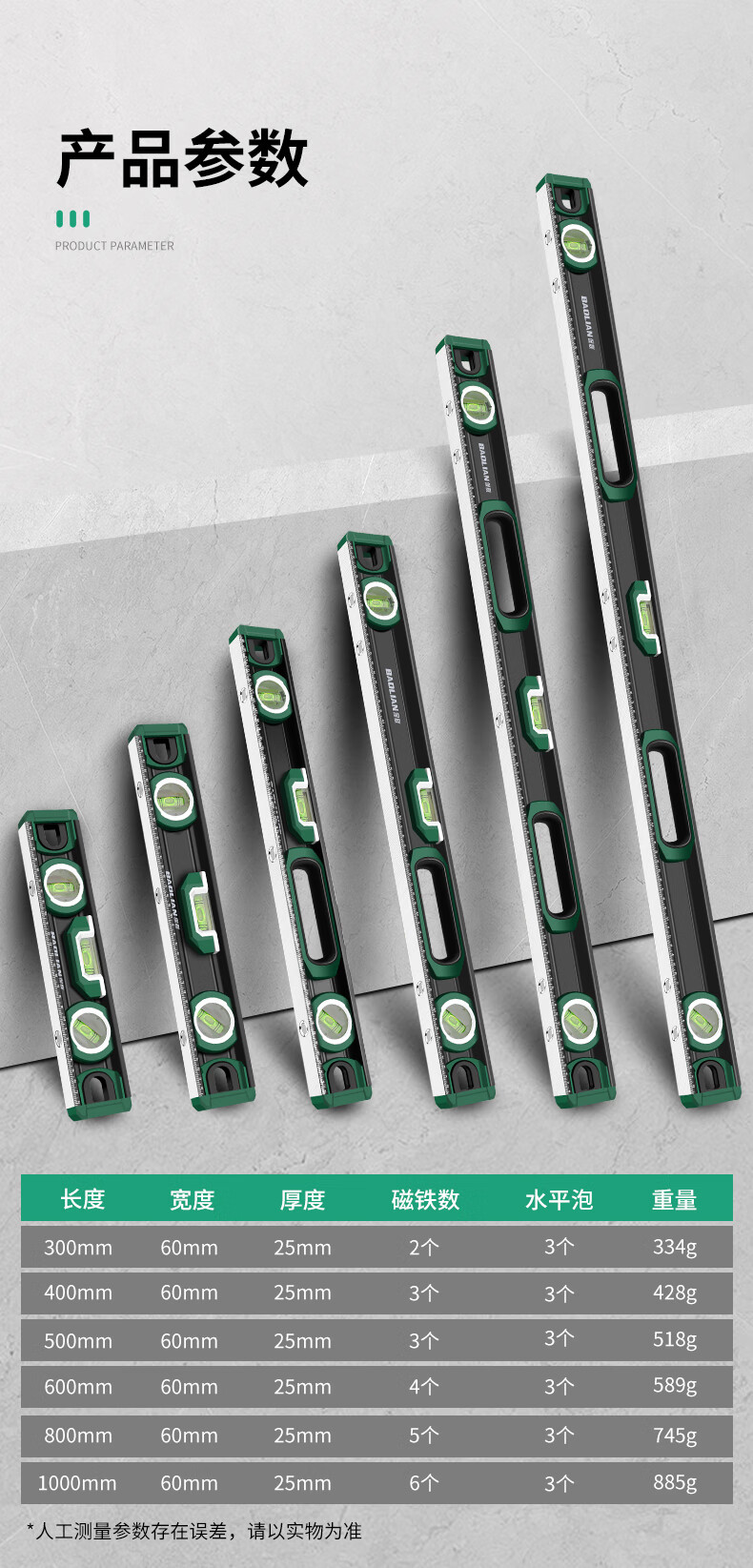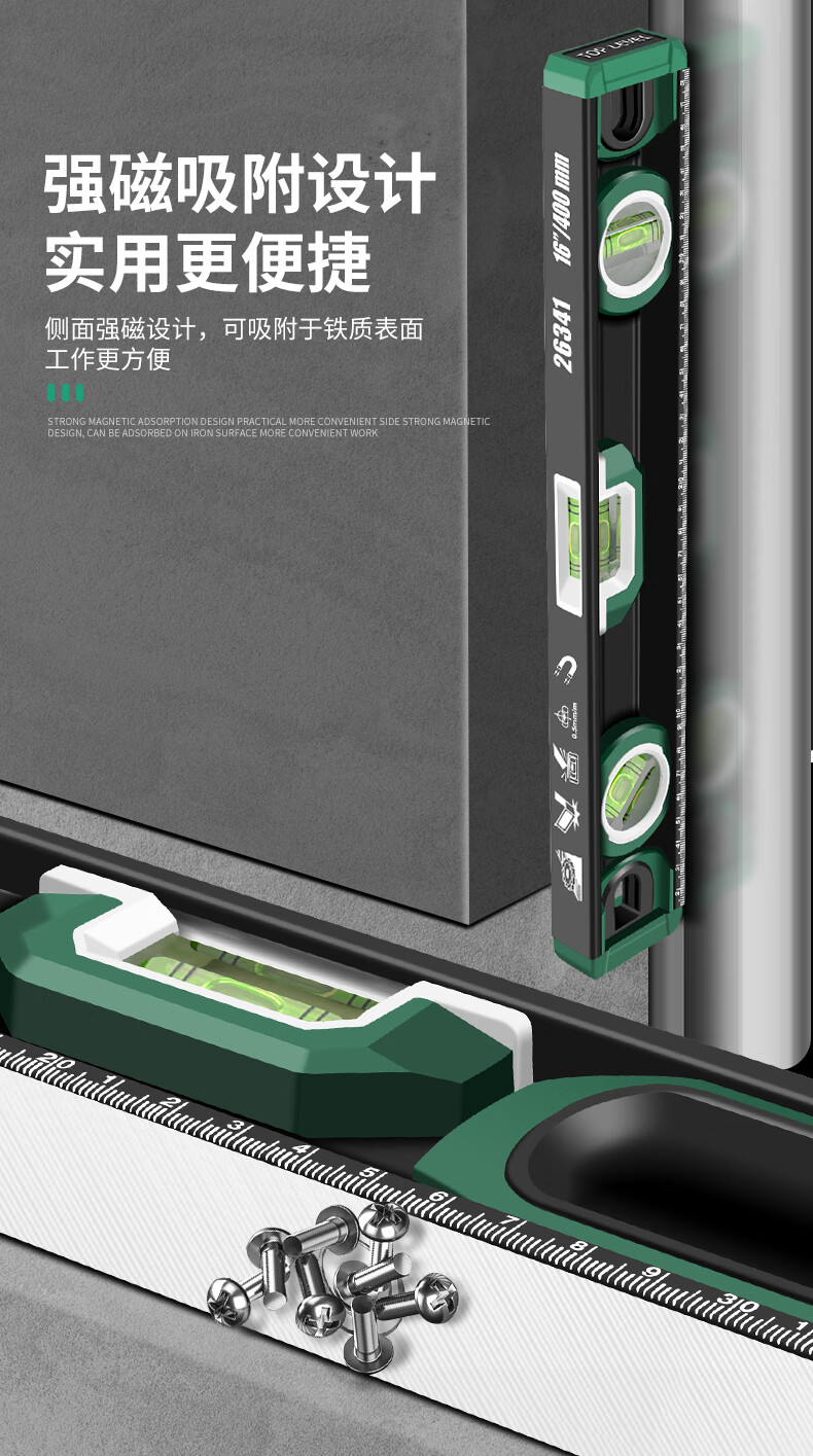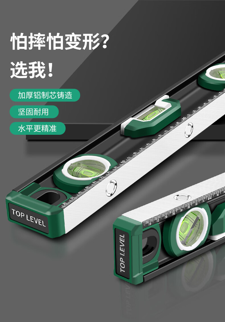 Baolian spirit level high-precision household leveling instrument small strong magnetic ruler solid anti-fall multi-functional thick cast aluminum level industrial grade solid cast aluminum 400mm strong magnetic