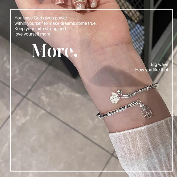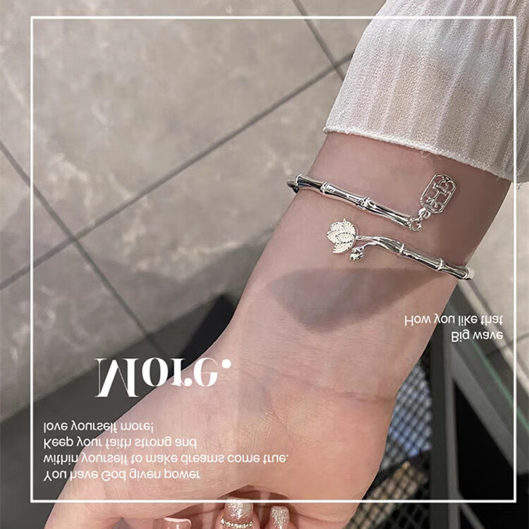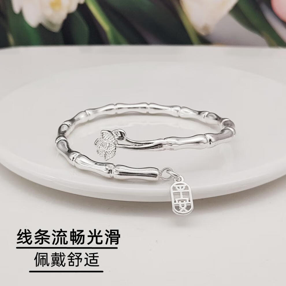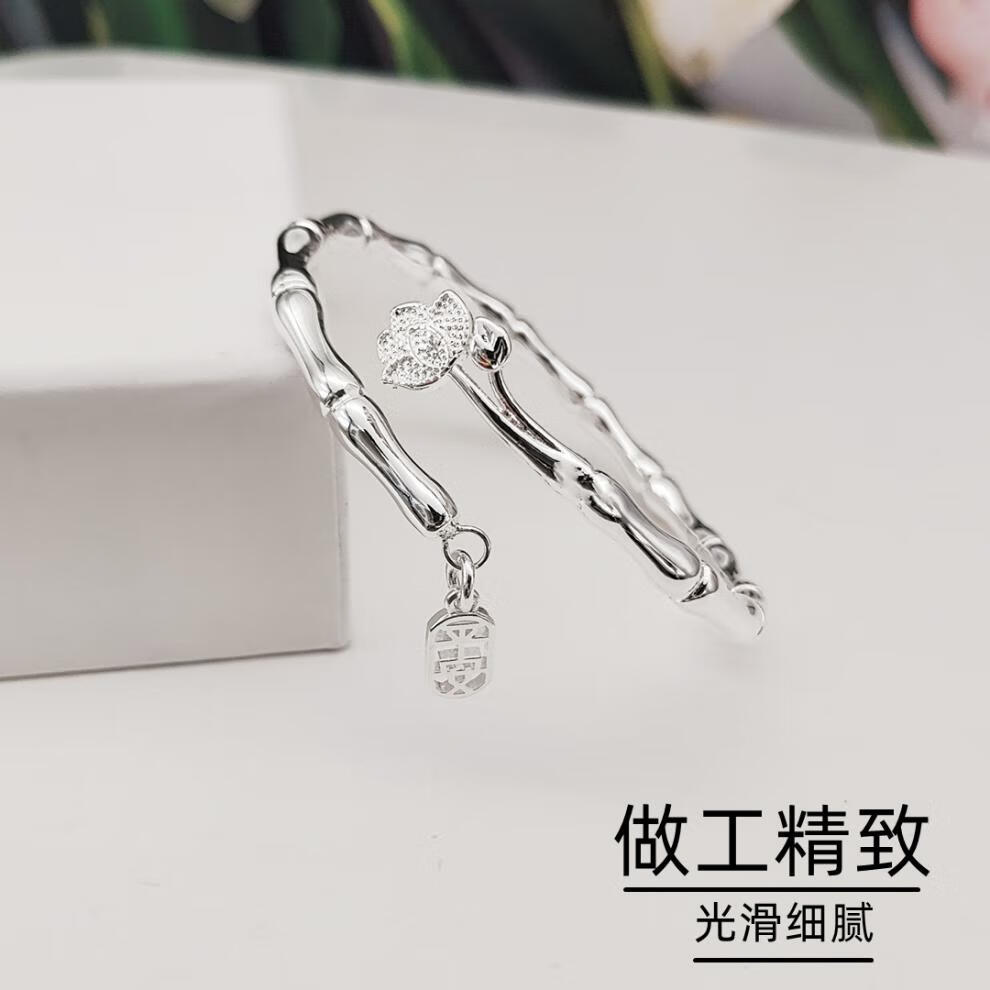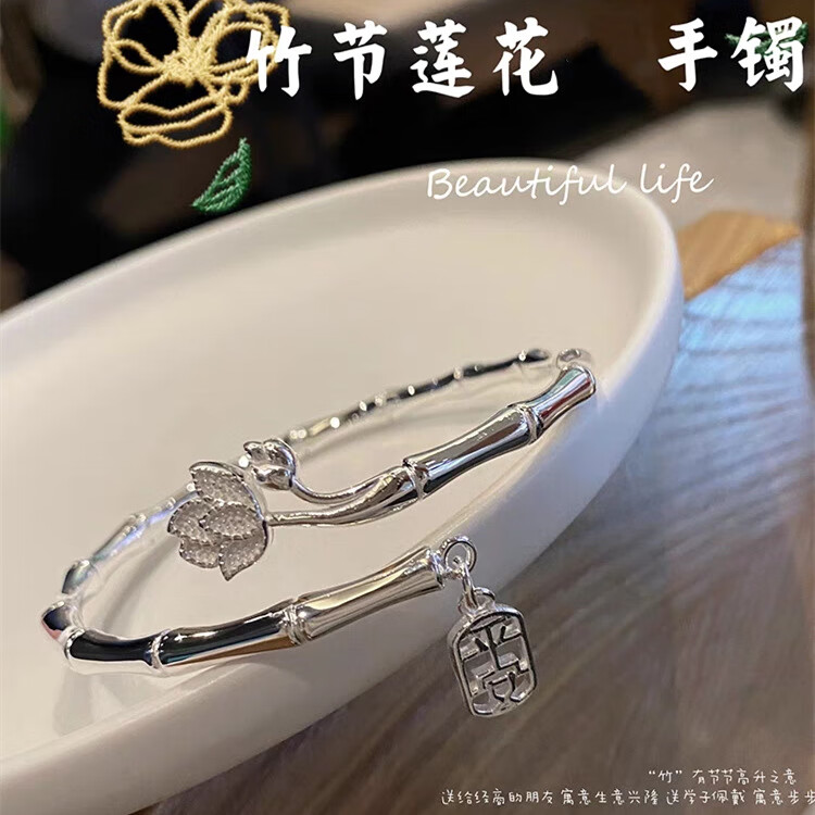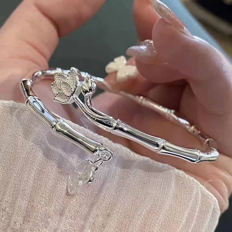 Fat Donglai Quality Chain Silver Bracelet Bamboo Lotus Silver Bracelet Women's S999 Bracelet Open Silver Bracelet Niche Years Bamboo Peace (Gift Box Certificate)