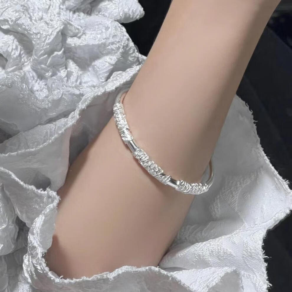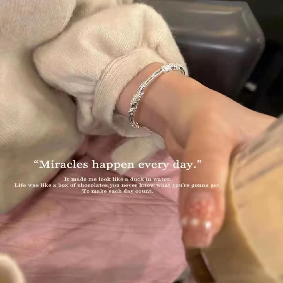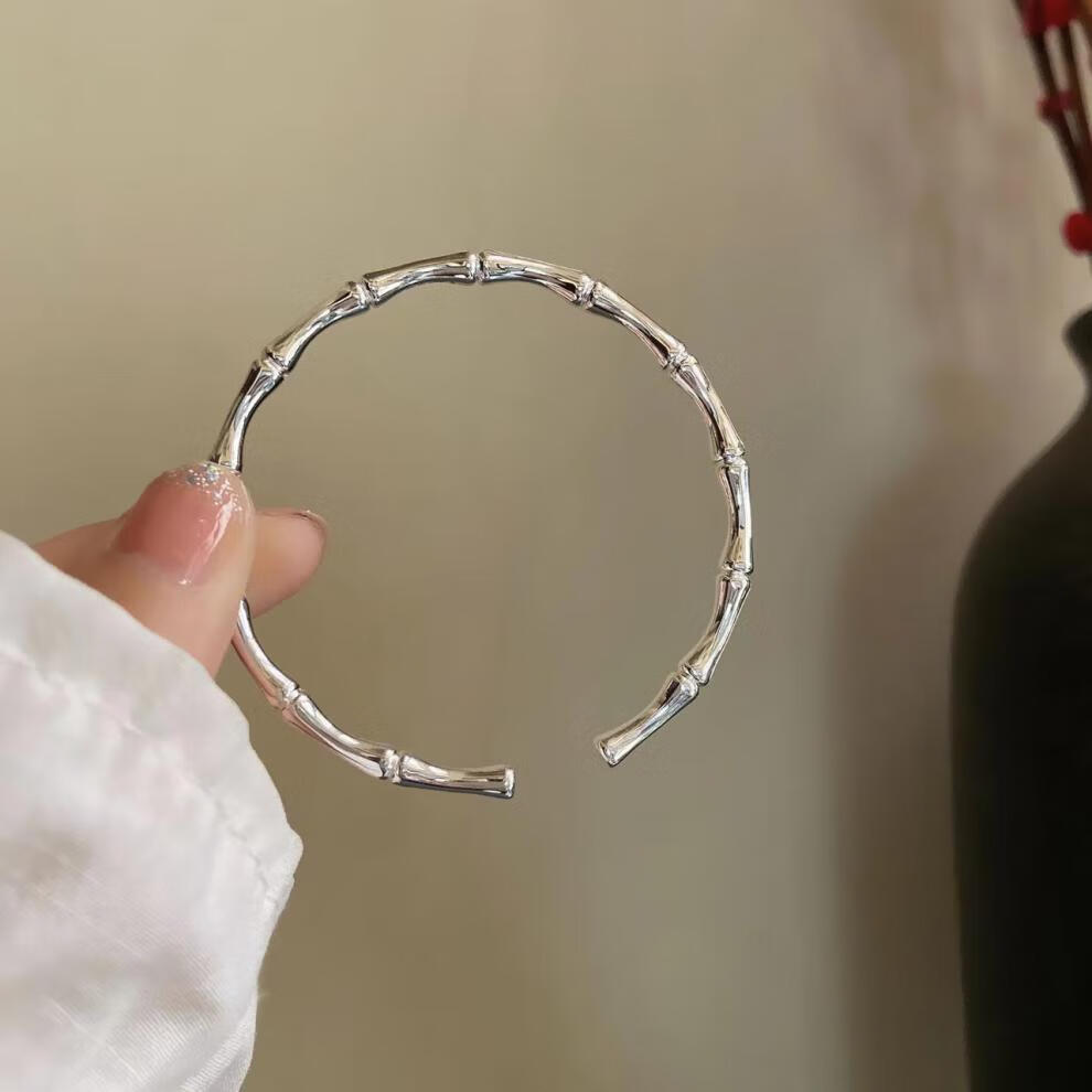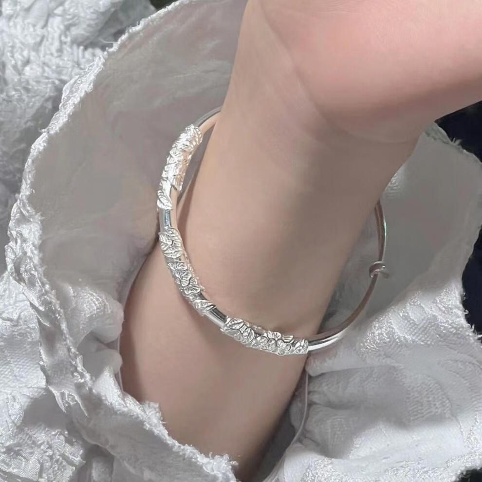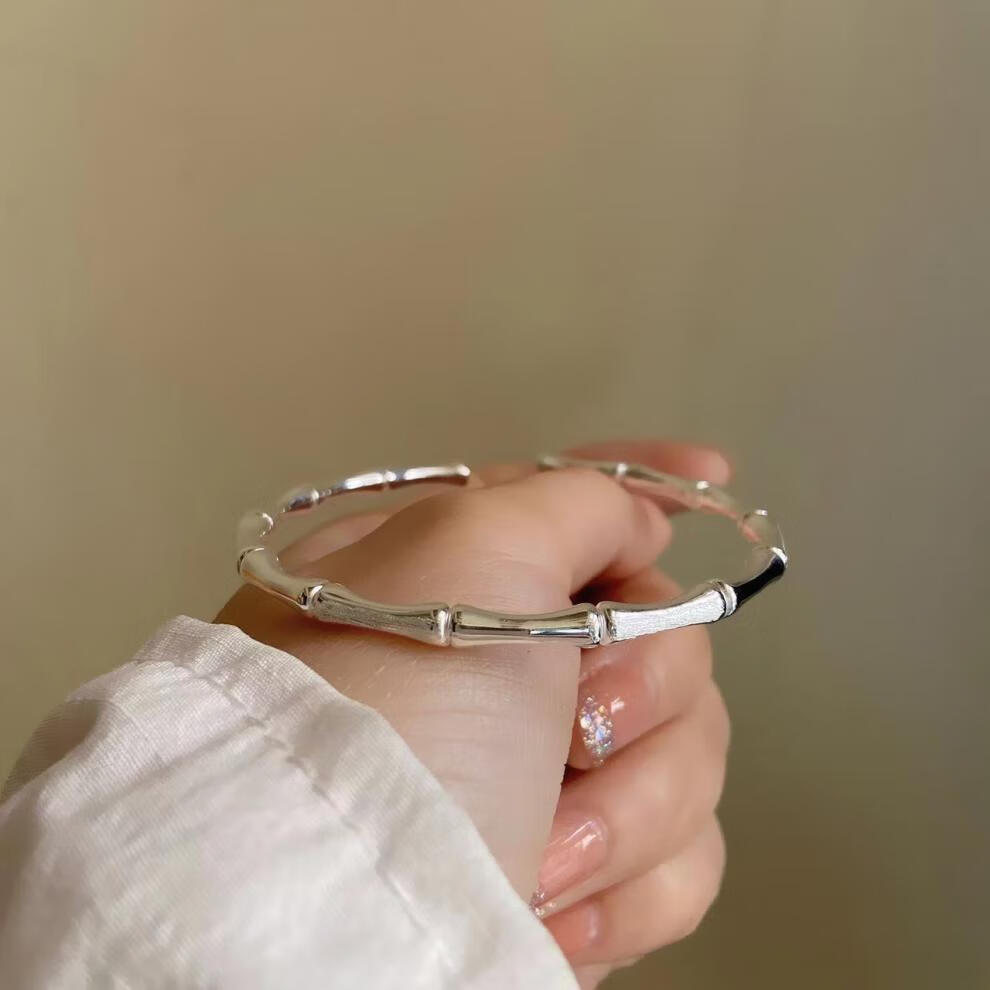 Fat Donglai Quality Chain Silver Bracelet Bamboo Lotus Silver Bracelet Women's S999 Bracelet Open Silver Bracelet Niche Years Bamboo Peace (Gift Box Certificate)