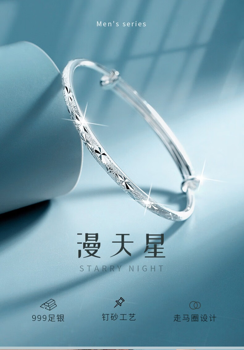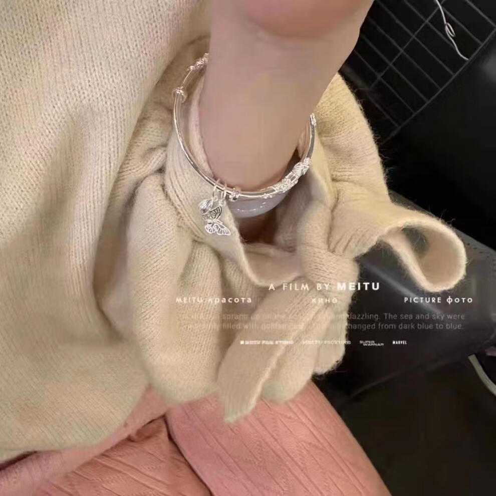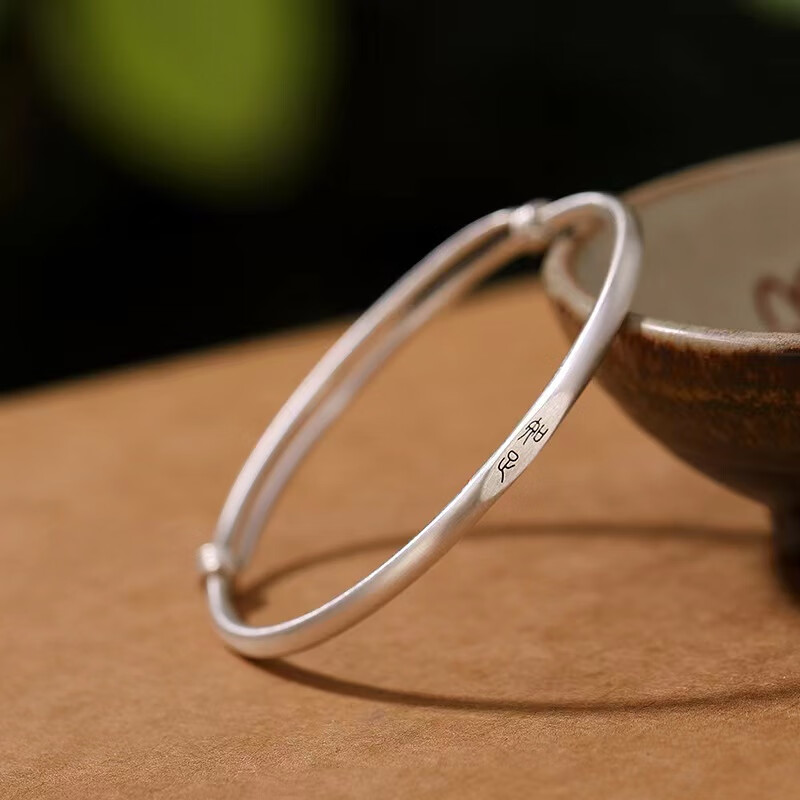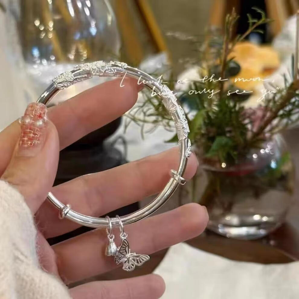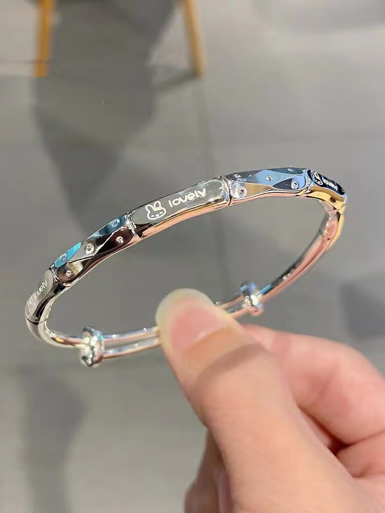 Fat Donglai Quality Chain Silver Bracelet Bamboo Lotus Silver Bracelet Women's S999 Bracelet Open Silver Bracelet Niche Years Bamboo Peace (Gift Box Certificate)
