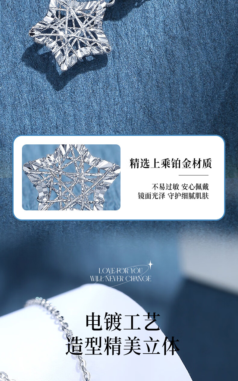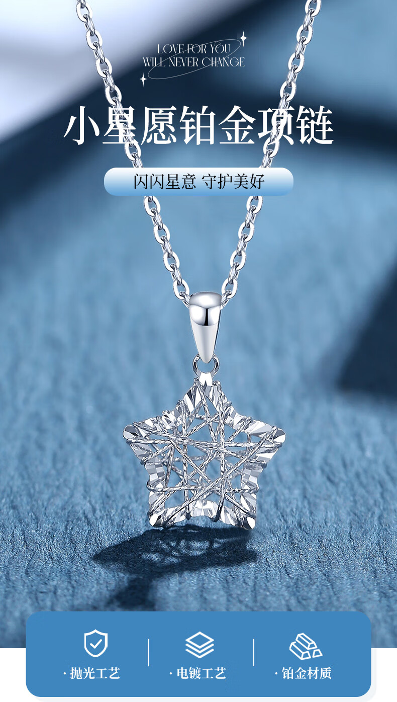 CHINA GOLD Wound Star PT950 Platinum Necklace for Women Platinum Wishing Star Pendant Birthday Gift for Girlfriend Pendant*Platinum Weight Approximately 1.5g Free Silver Chain