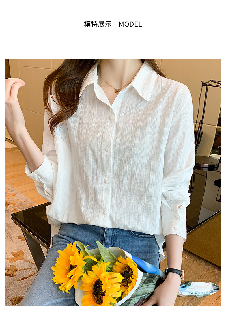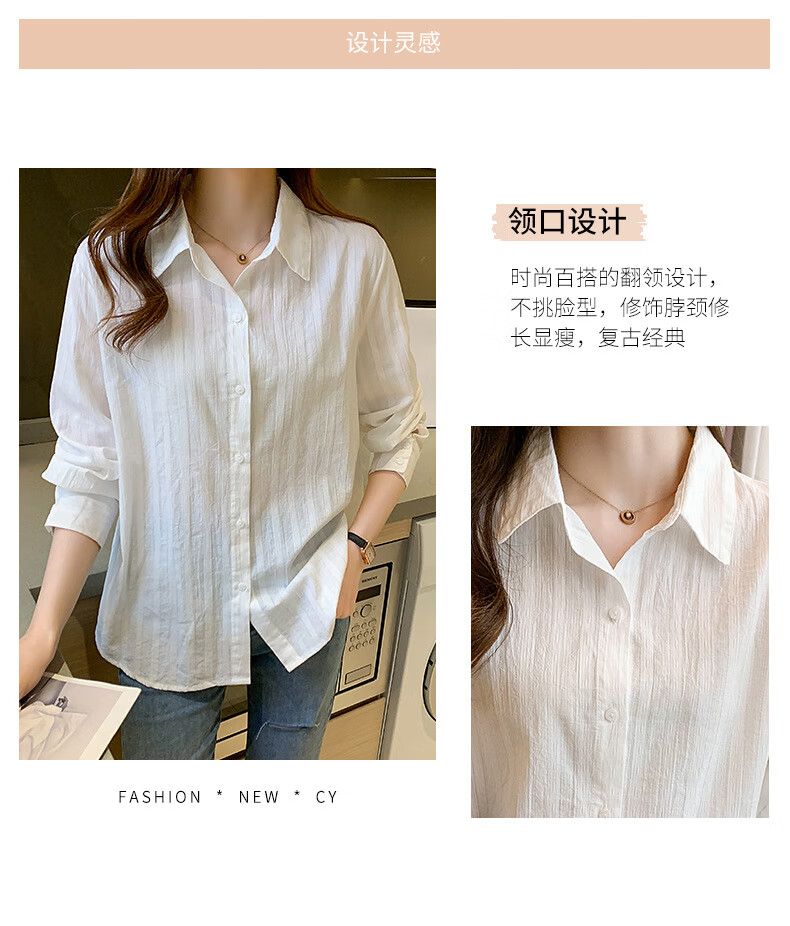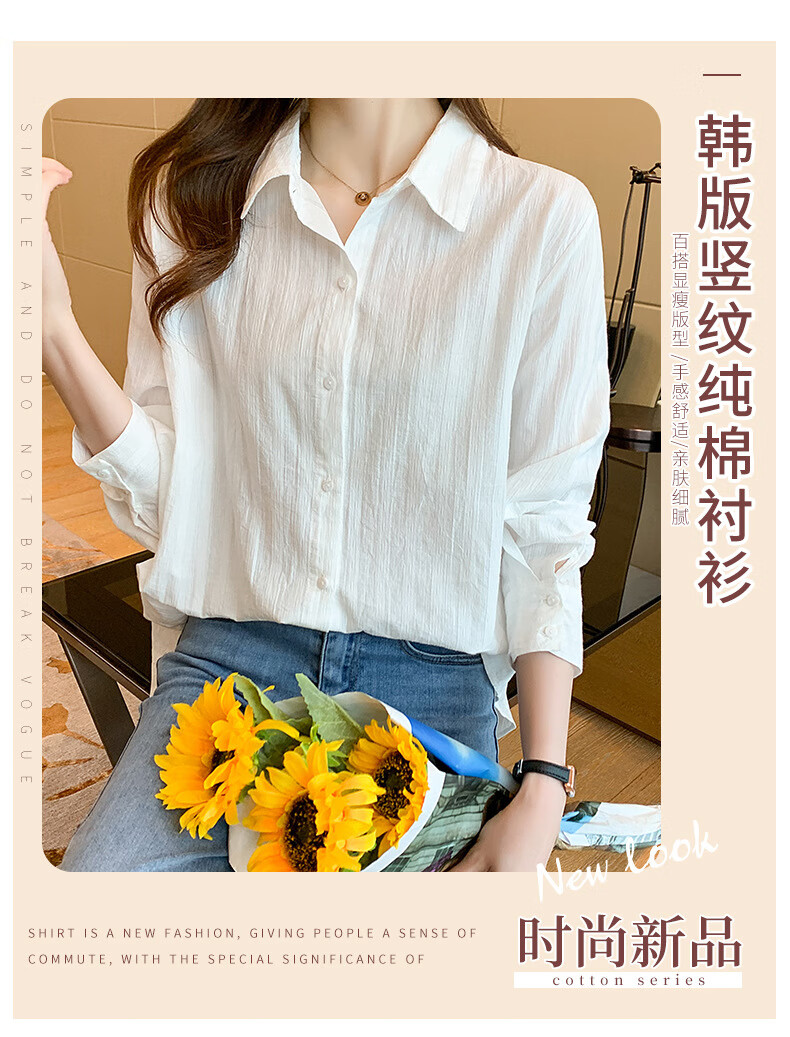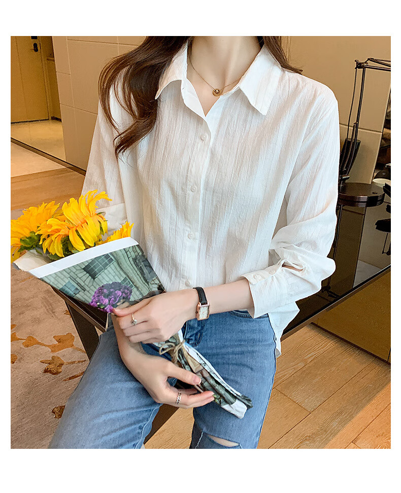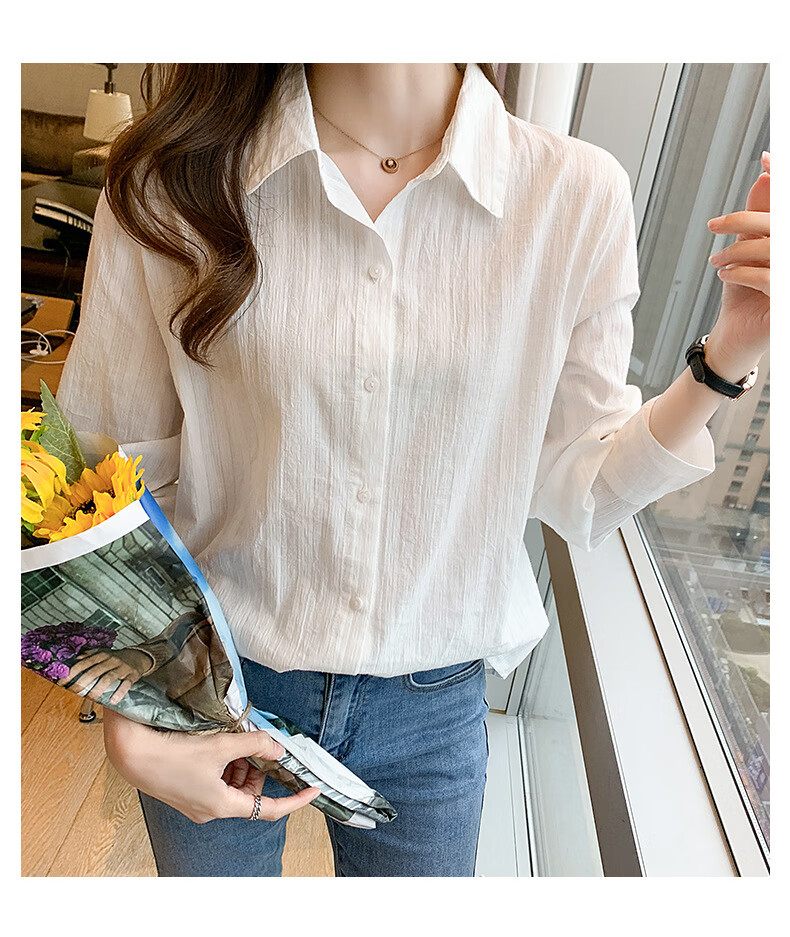 Miao Yijia Pure Cotton Striped White Shirt Women's French Shirt Shirt Women's Casual Shirt New Style Western Style Bottoming Shirt Striped French Long Sleeve Shirt White L 115-130Jin Jin equals 0.5 kg