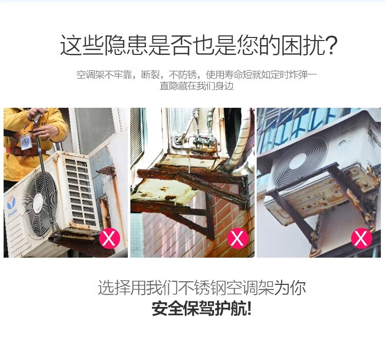 Kuangmai thickened 304 stainless steel air conditioner outdoor unit bracket 1-1.5 hp/2/3 hp suitable for Haier, Kelon, TCL, Midea, Gree, Xiaomi and other air conditioner brackets 1-1.5-1.3MM load-bearing 200KG + expansion screws