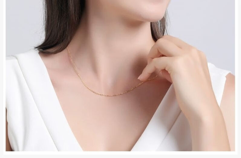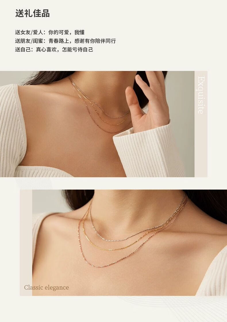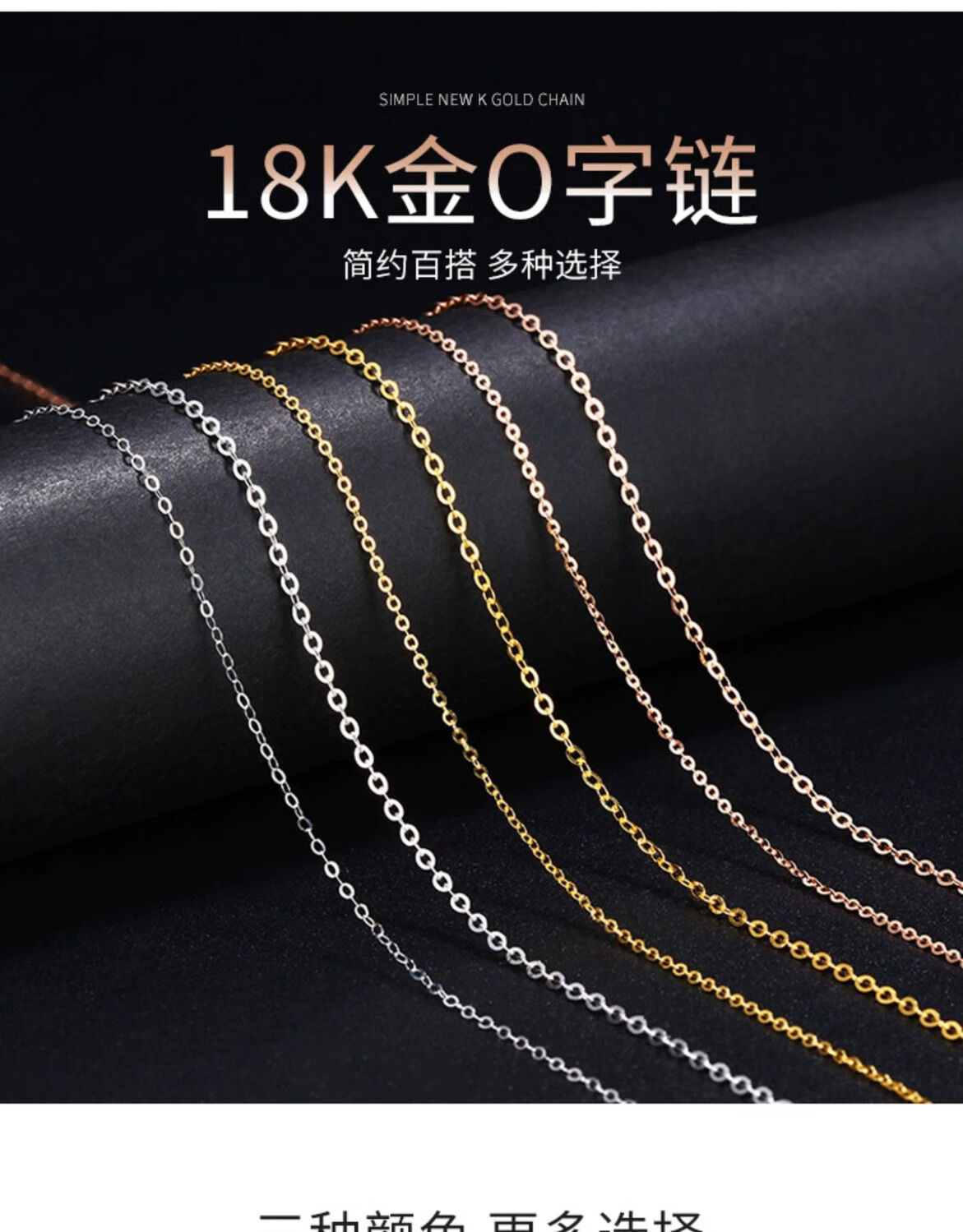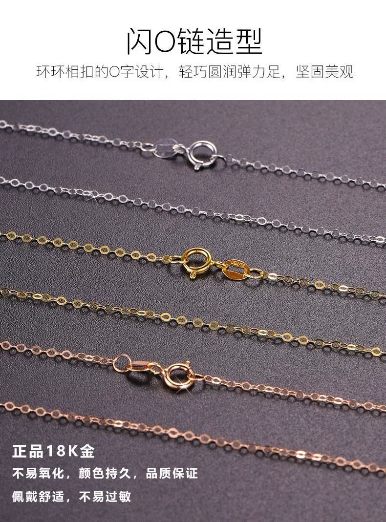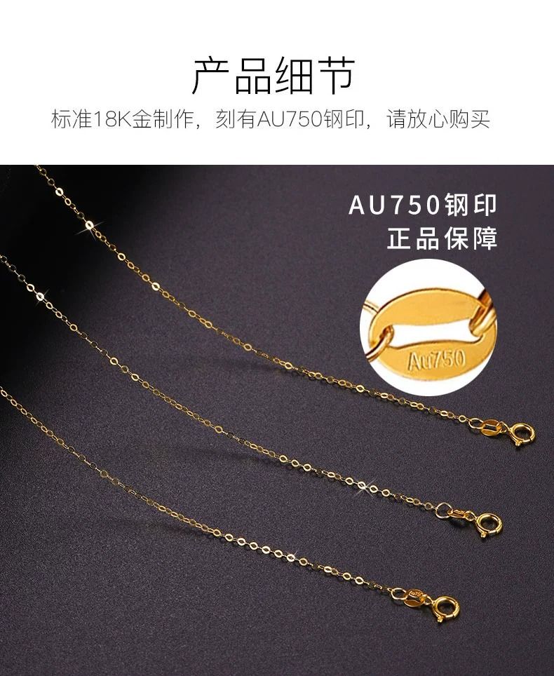 Red Shadow 18K gold necklace for women gold versatile plain chain O-shaped chain pendant chain clavicle chain birthday gift gold color 40cm (weight about 0.90 grams)