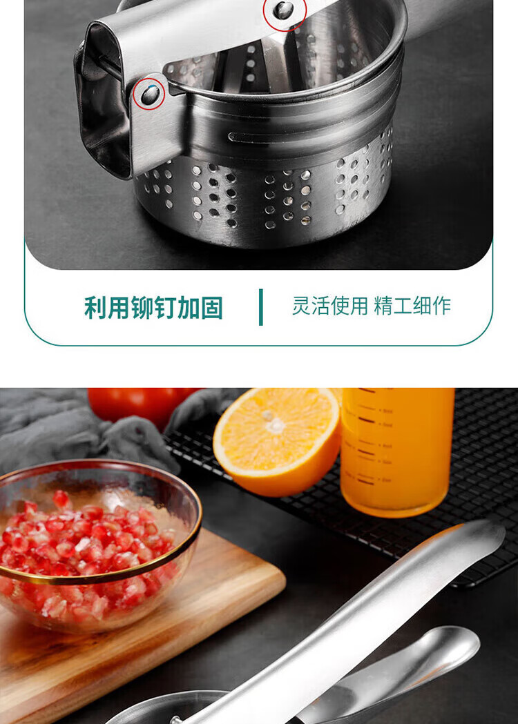Jingyan manual juicer, hand-pressed orange juice press, pomegranate orange juice press, commercial hand-pressed stall artifact, 1 second juice production, simple and labor-saving, dense hole design | juice separation | stainless steel material