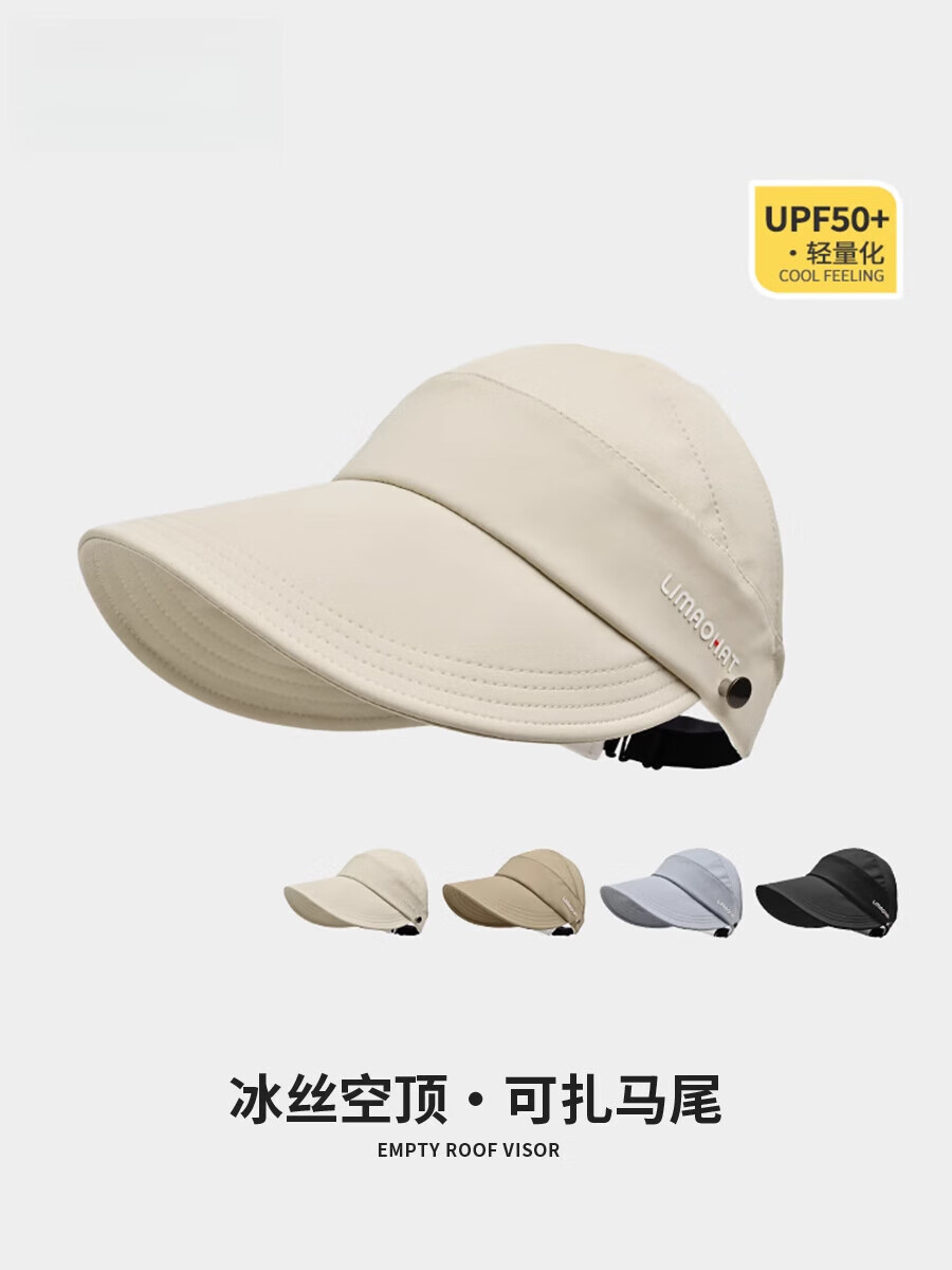U&MUDI 2025 Women's Sun Hat Summer Large Bib Sun Protection Anti-UV Baseball Cap Empty Top Duck Sun Hat Off-White Cool Fabric UPF50+ One Size 52-60 Adjustable Hat Circumference