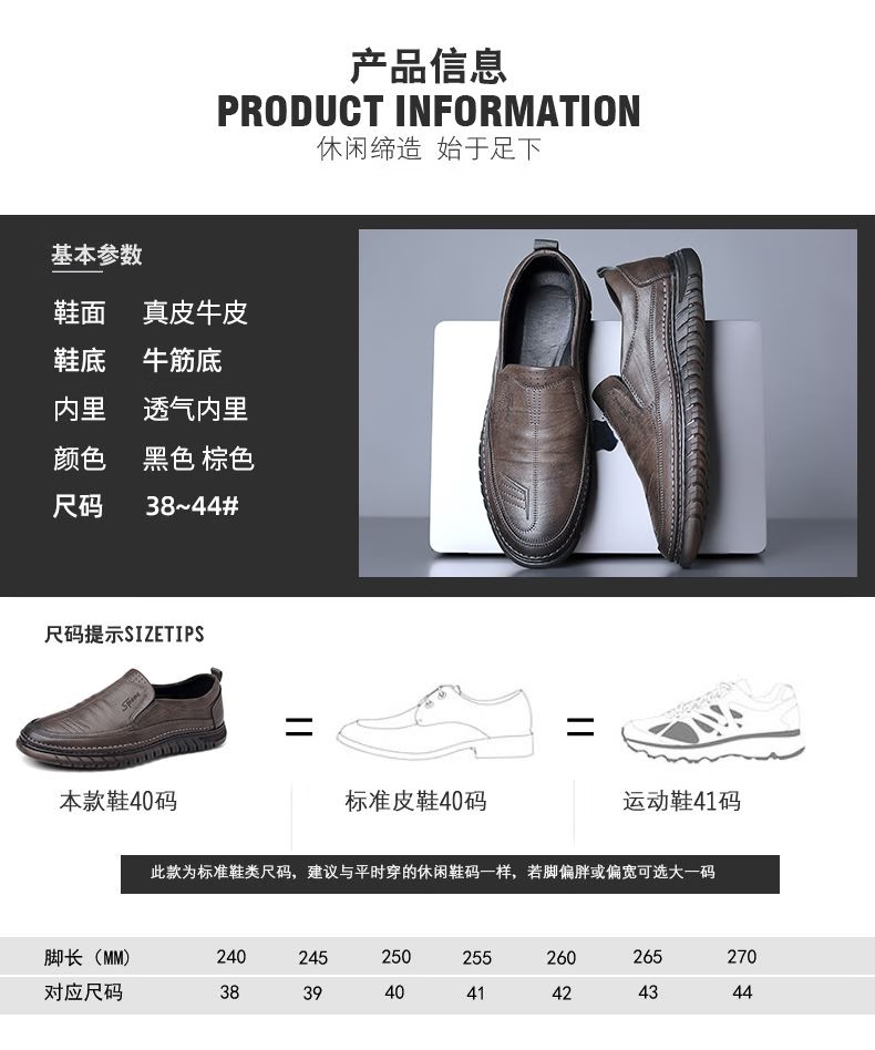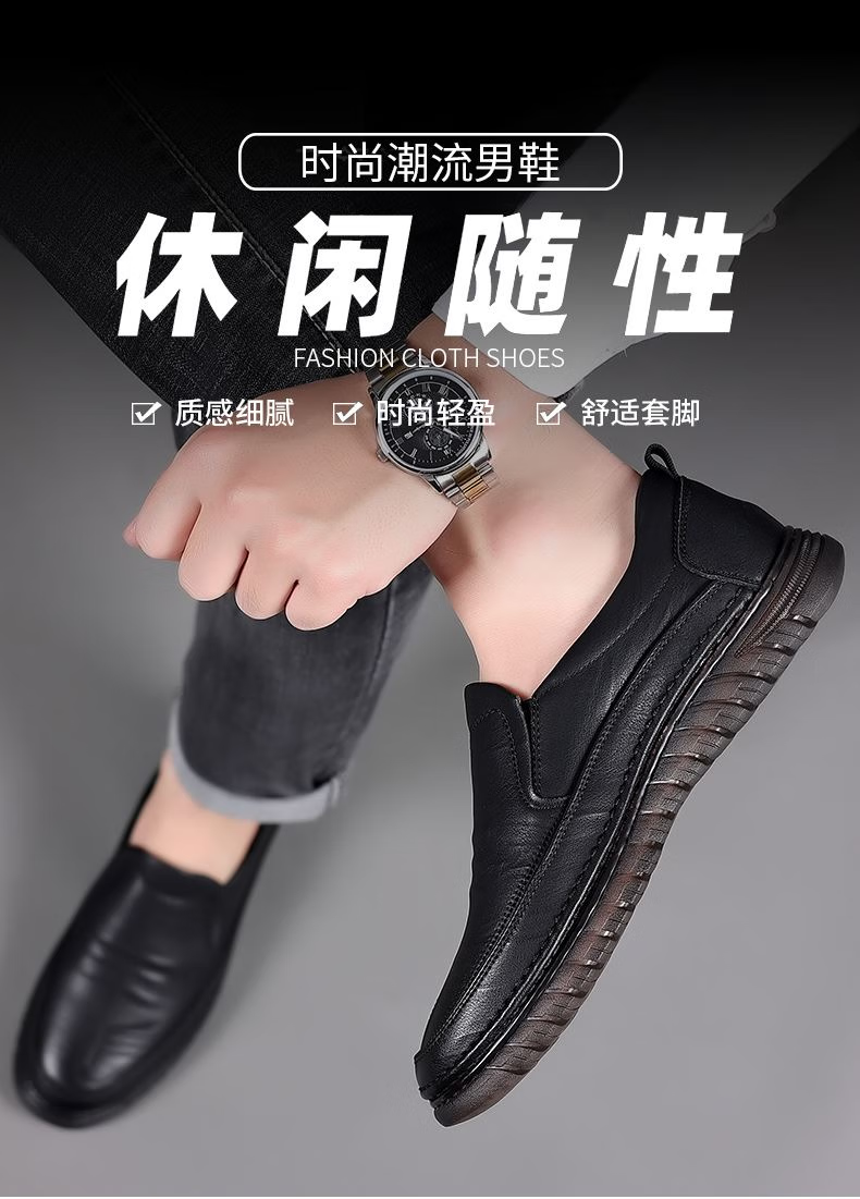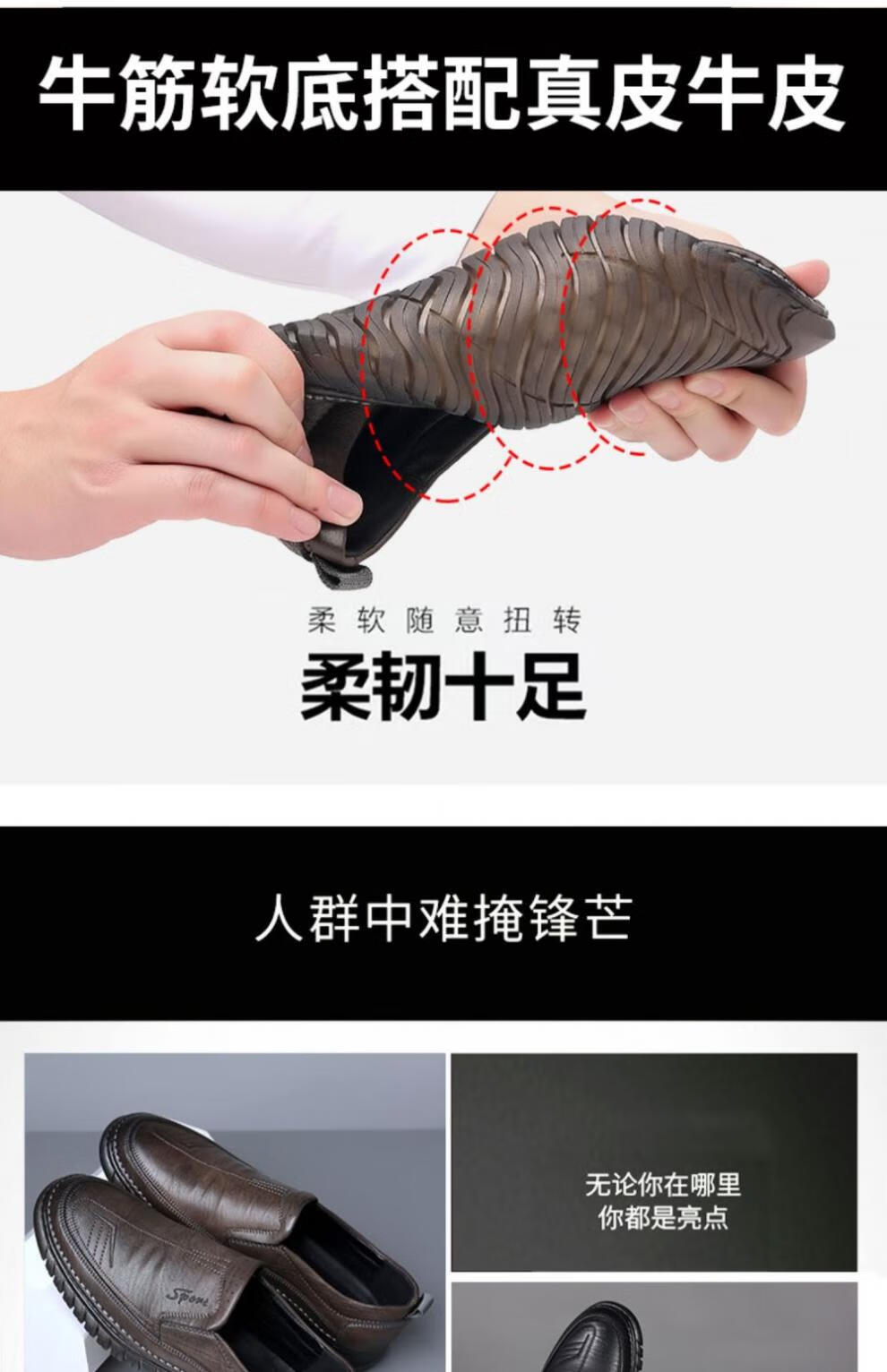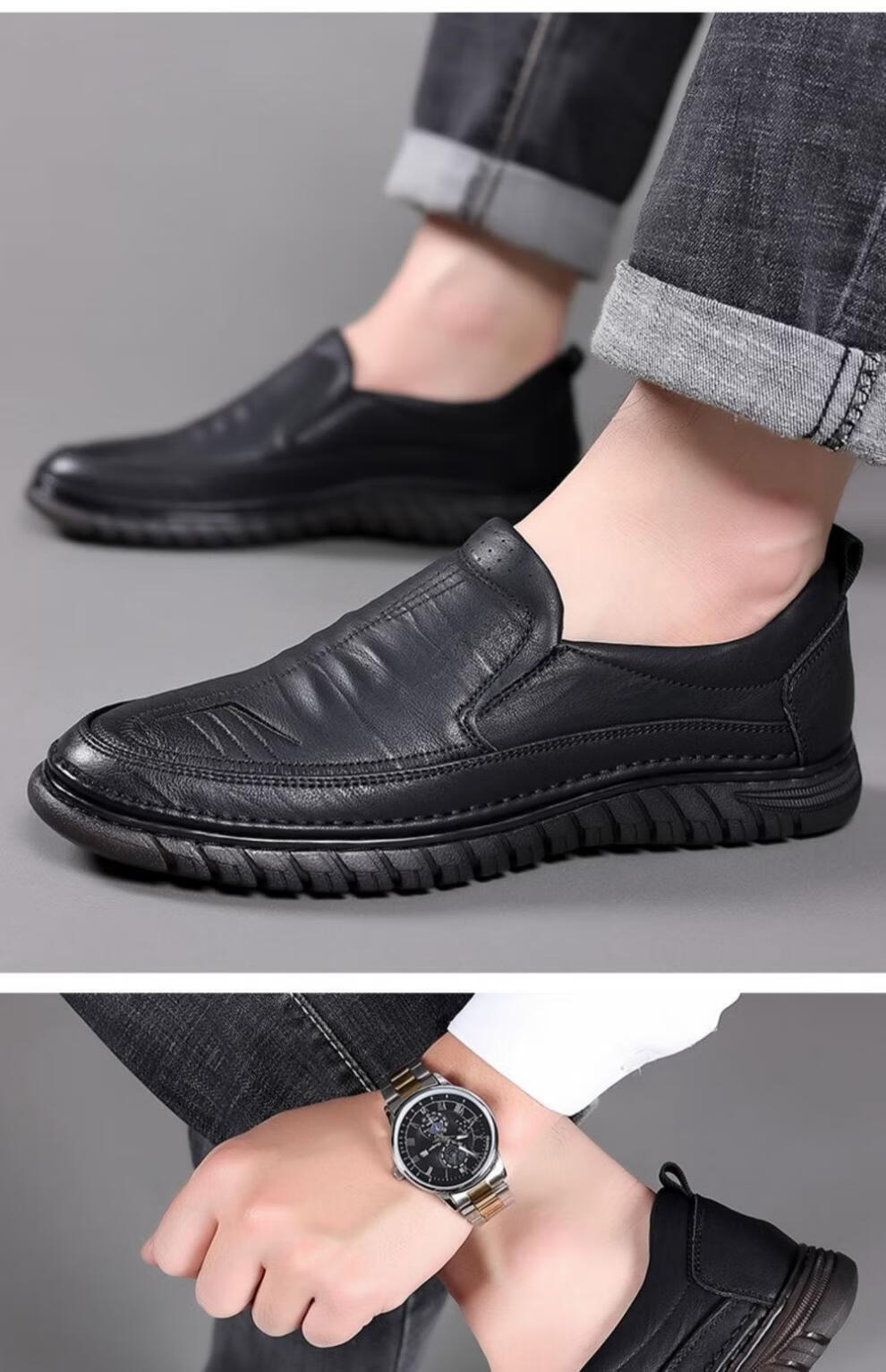 Yierkan Prince Men's Shoes Broken Code Men's Shoes Genuine Soft Leather Breathable Business Casual Shoes Tendon Soft Sole Middle-aged and Elderly Black 41