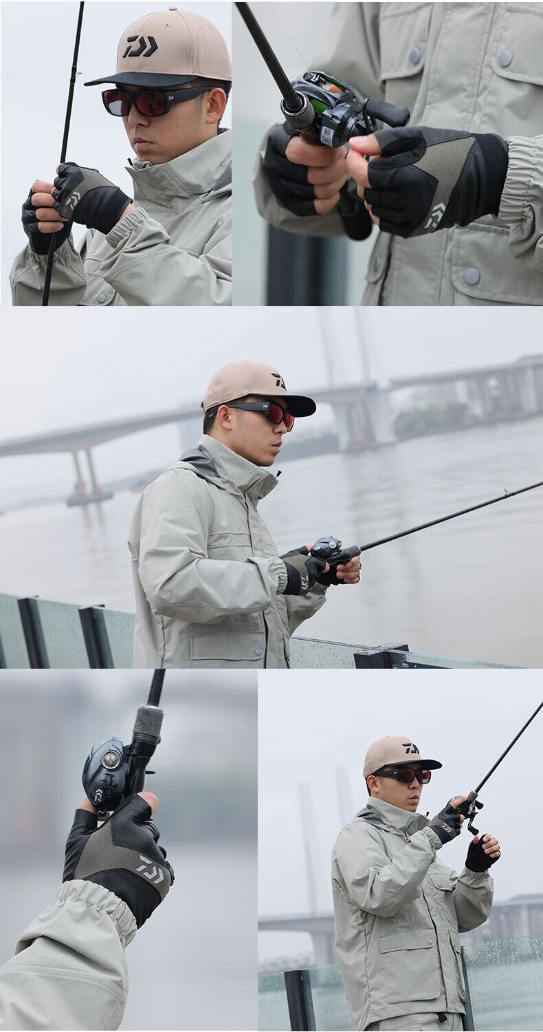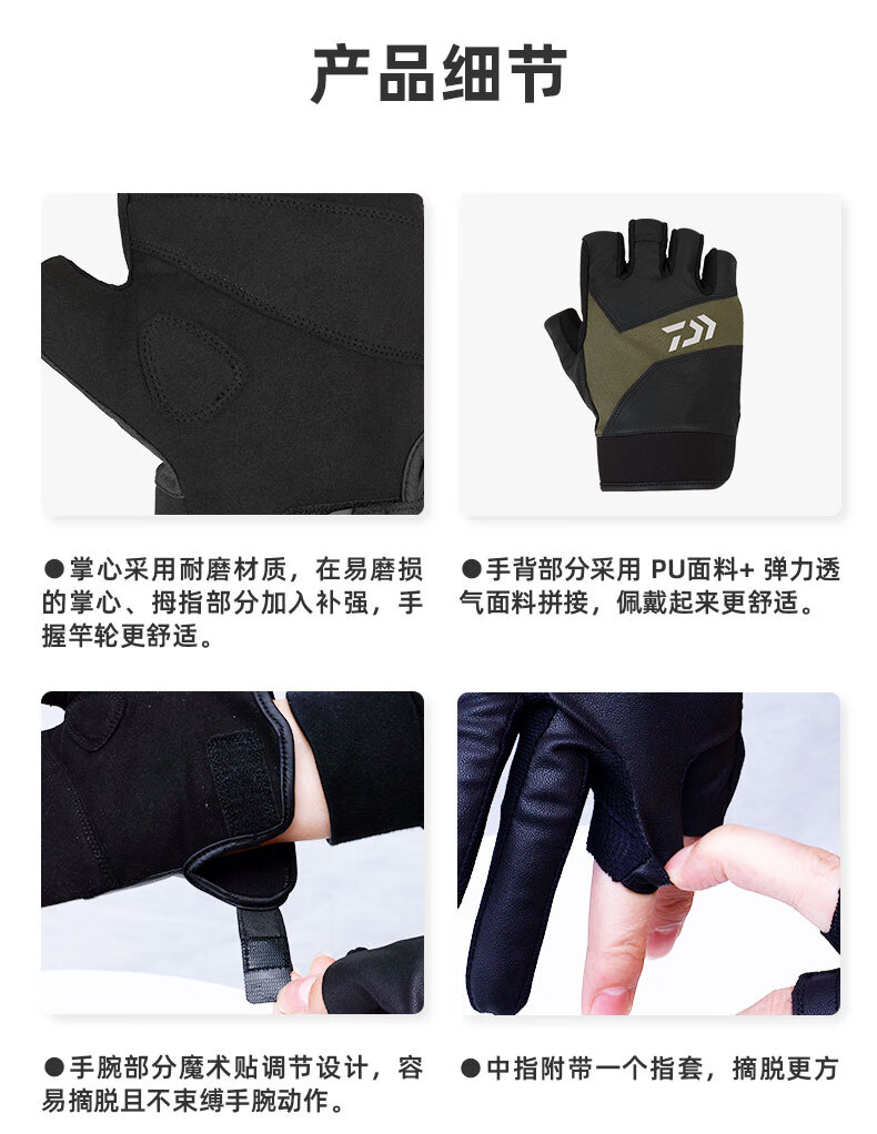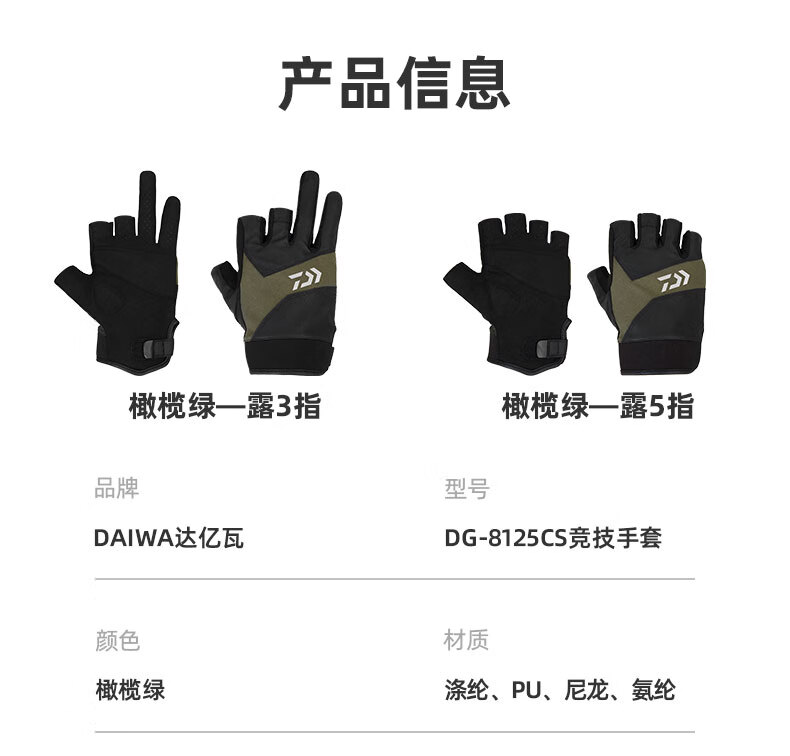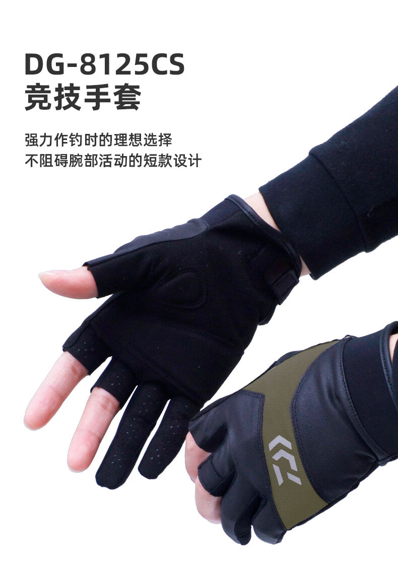 DAIWA 25 Spring/Summer DG-8125CS 3/5 Finger Lure Competition Gloves Wear-Resistant Fishing Gloves 3 Finger Exposed - Olive Green L