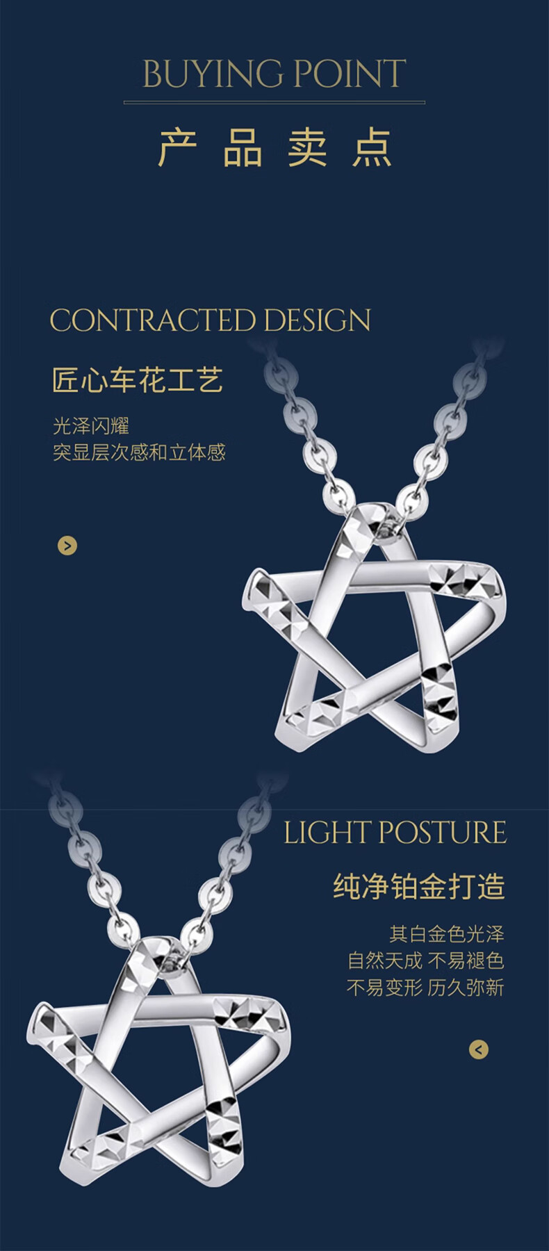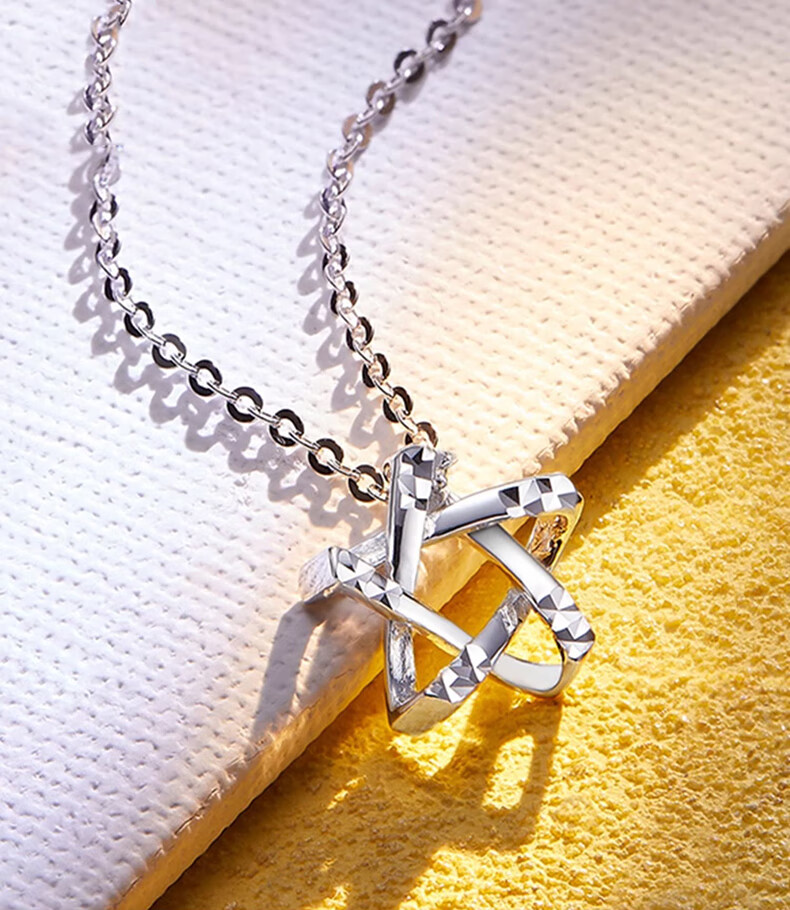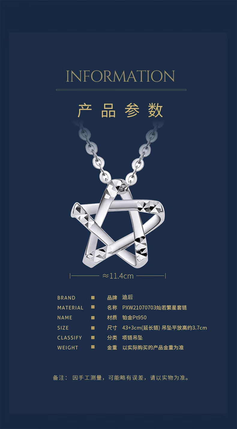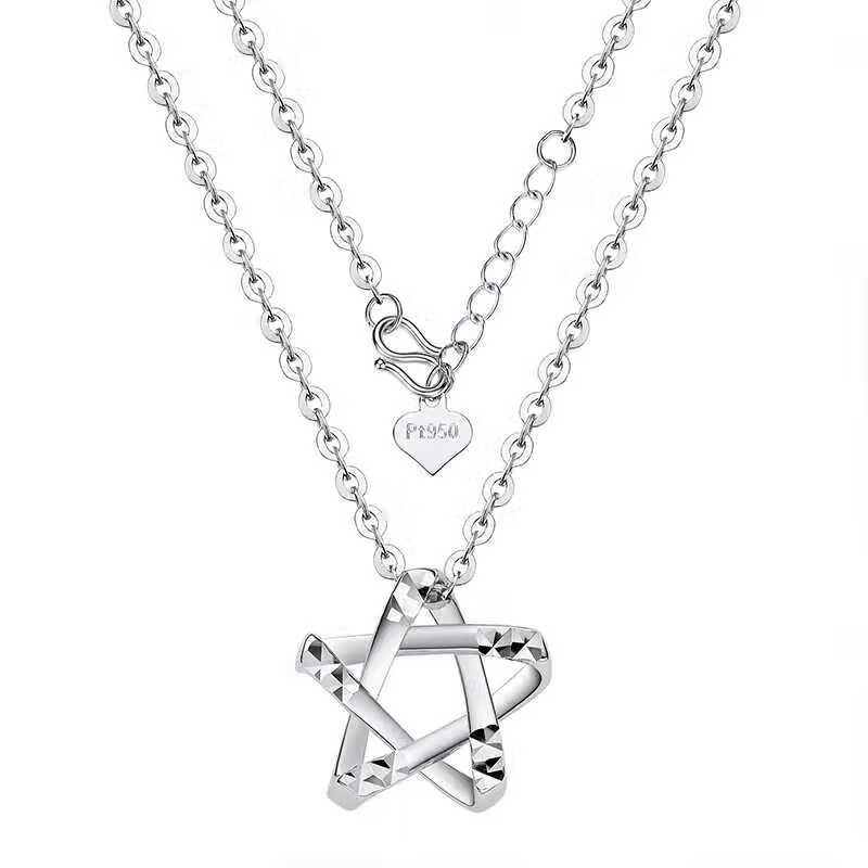 Dirholl PT950 Platinum Starry Necklace for Women Pentagram Star Platinum Clavicle Chain for Valentine's Day for Girlfriend PT950 Platinum Starry White Gold Necklace for Women