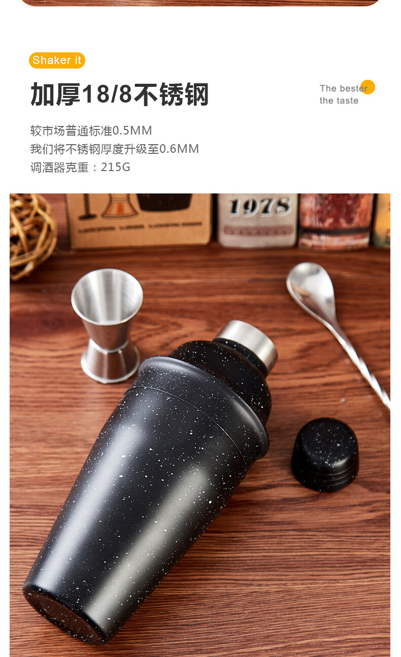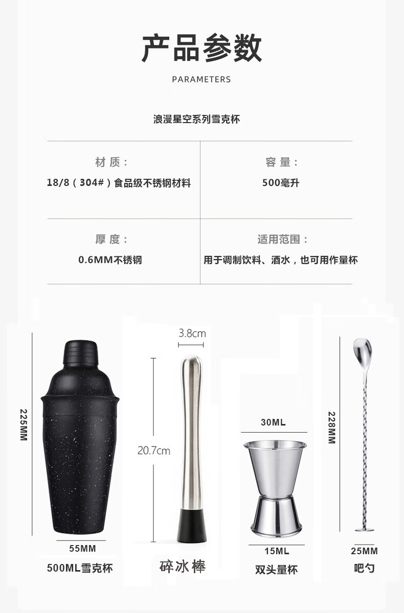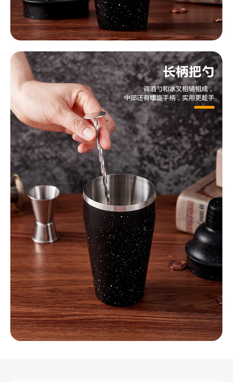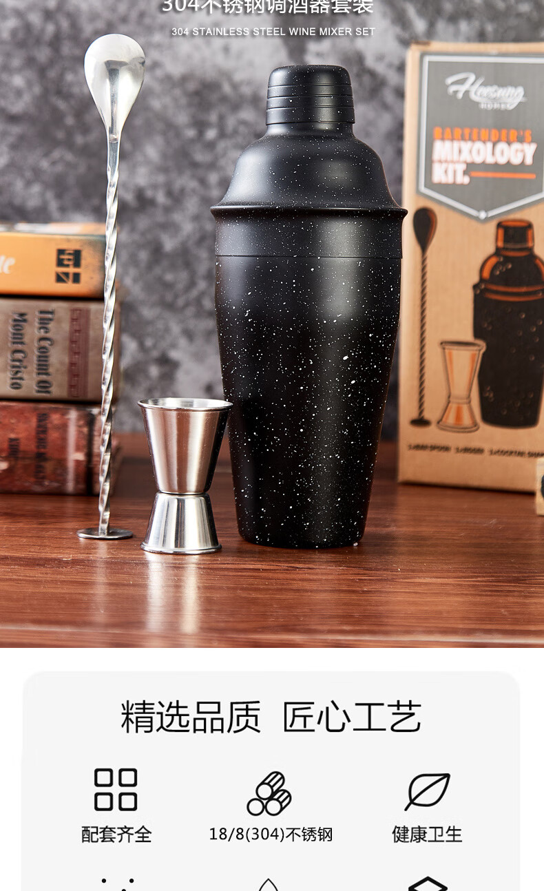 Jingchen American 304 stainless steel shaker shaker shaker hand shaker cocktail home bar shaker 500ML tool set mixer black 500ML black 3-piece set