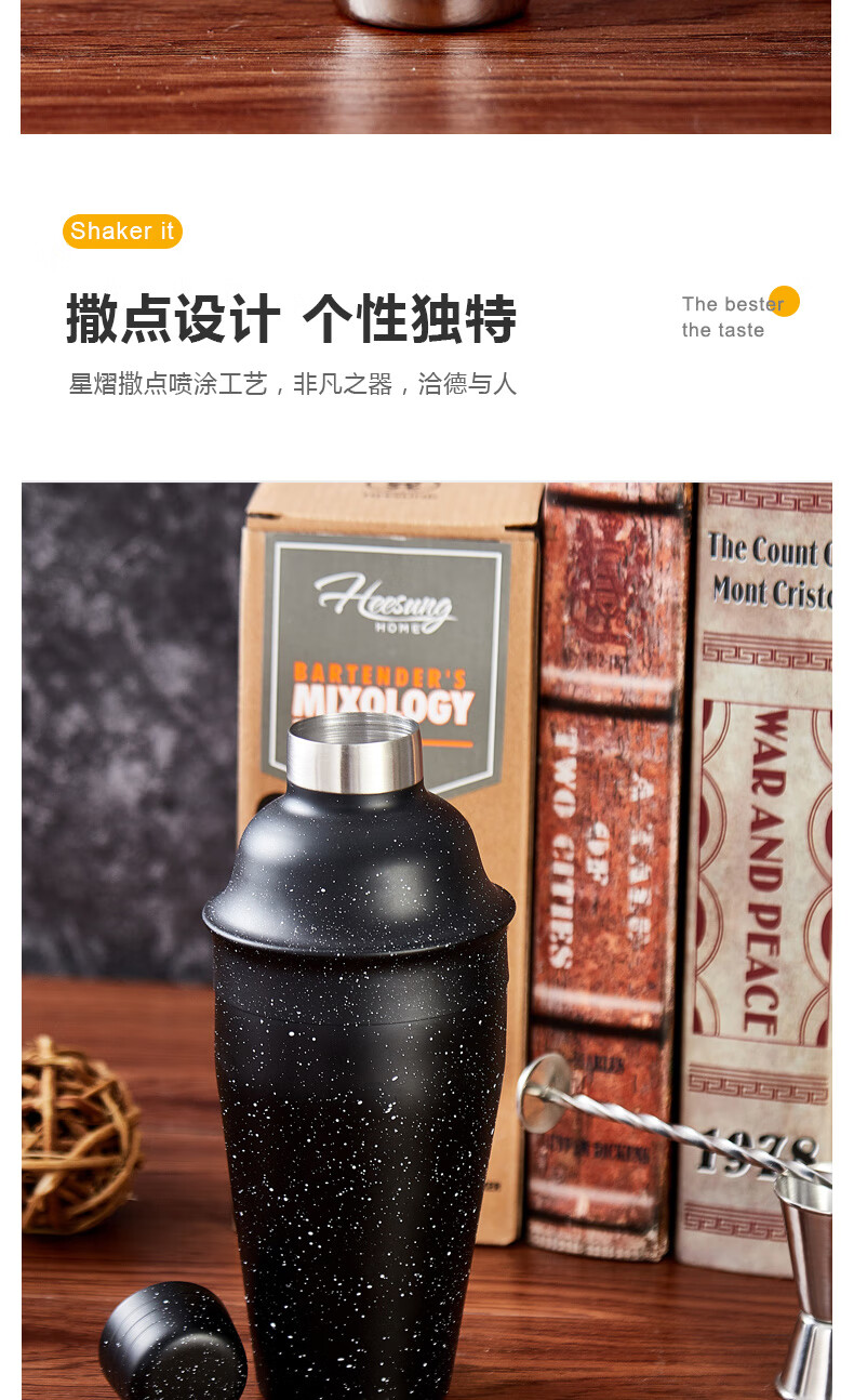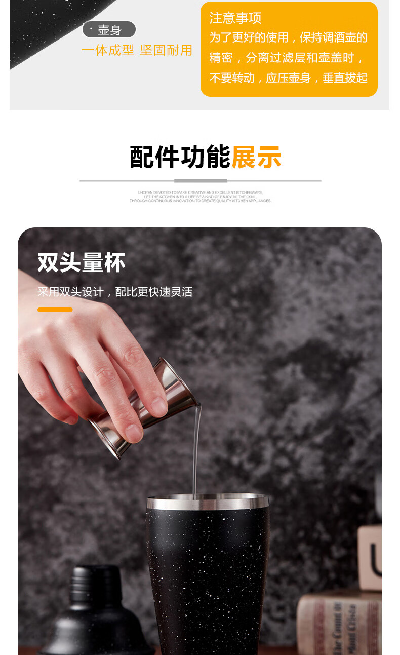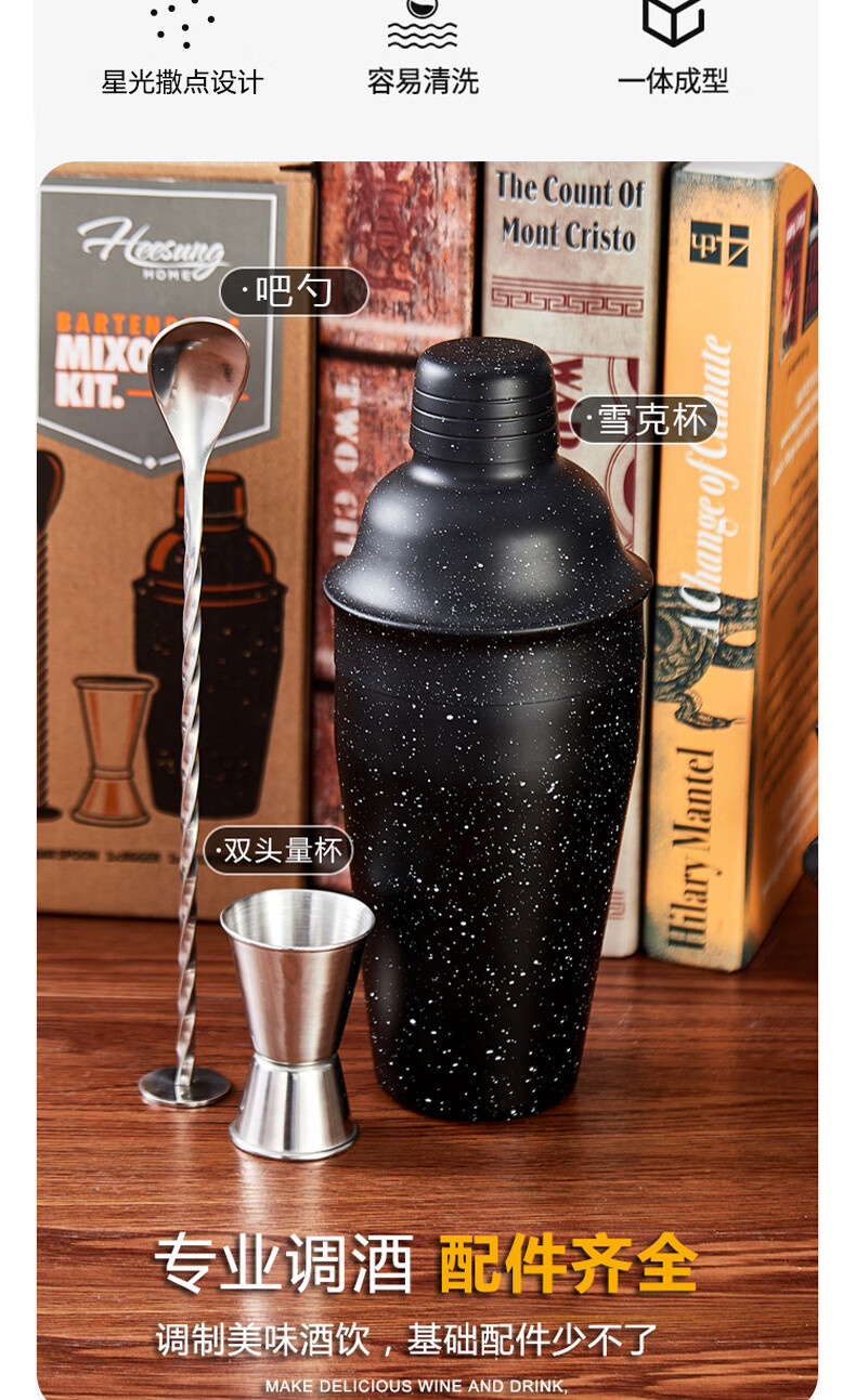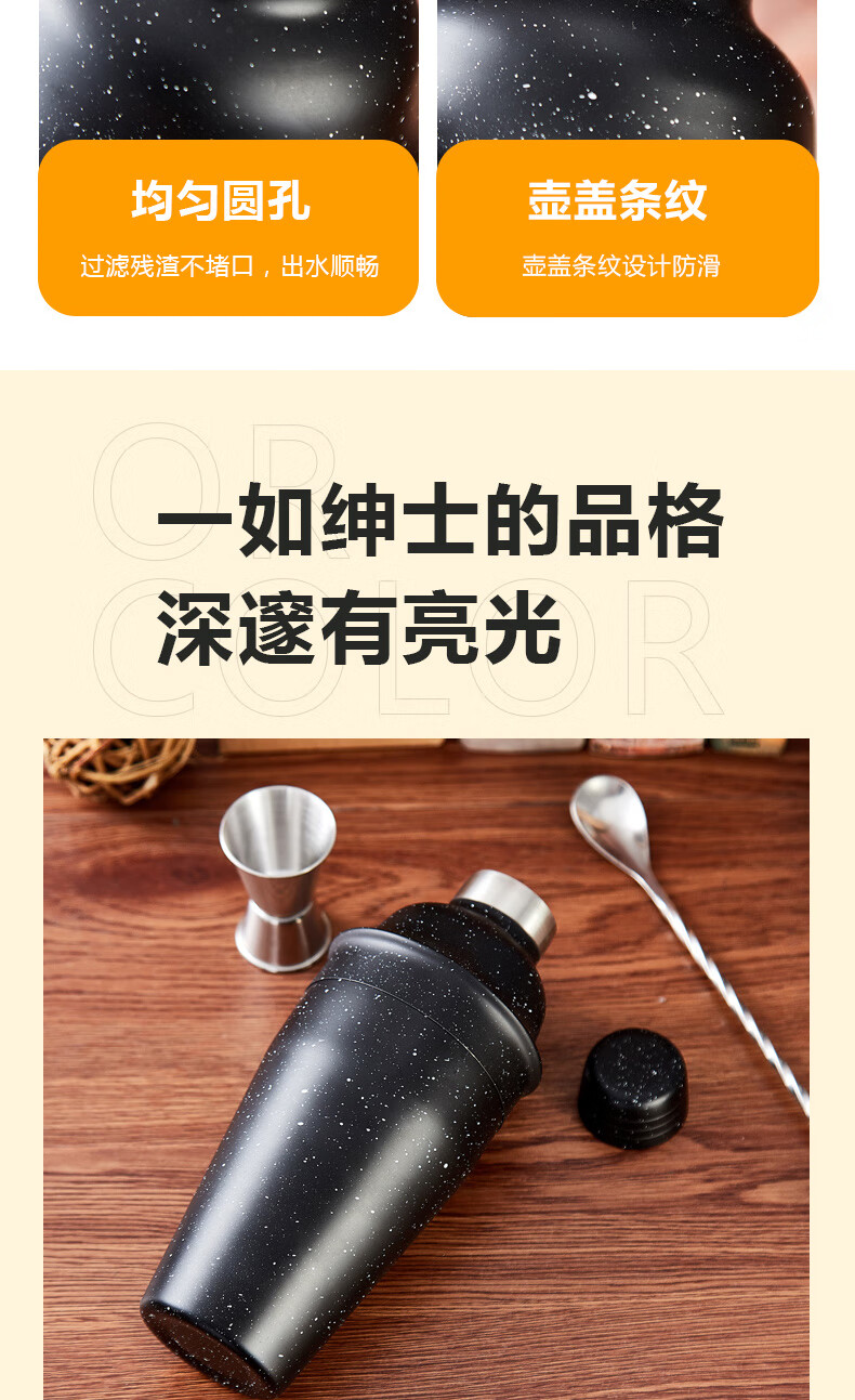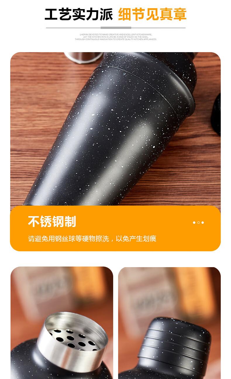 Jingchen American 304 stainless steel shaker shaker shaker hand shaker cocktail home bar shaker 500ML tool set mixer black 500ML black 3-piece set