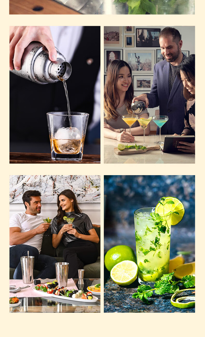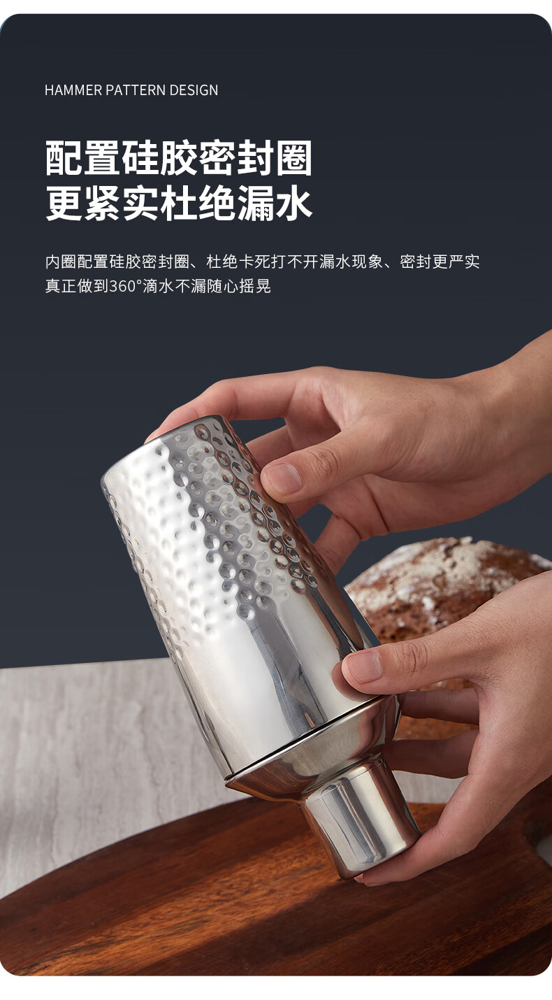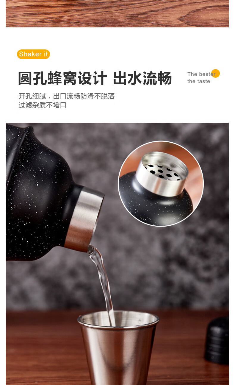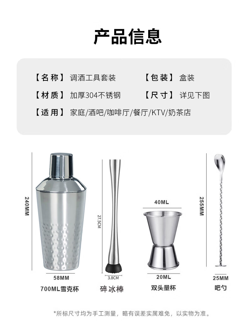 Jingchen American 304 stainless steel shaker shaker shaker hand shaker cocktail home bar shaker 500ML tool set mixer black 500ML black 3-piece set