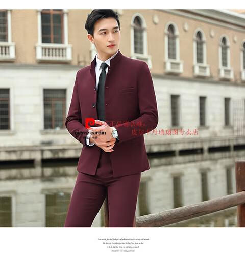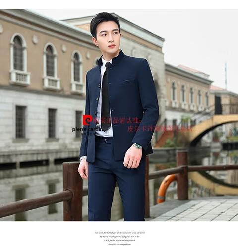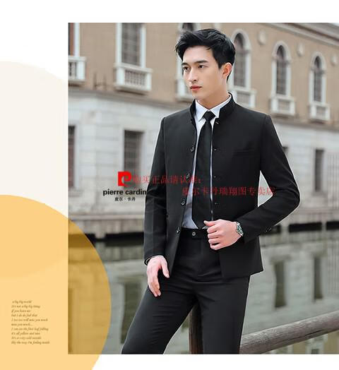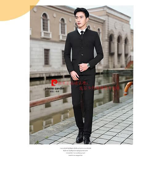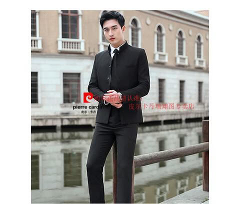 Pierre Cardin Mao suit men's suit Chinese style wedding dress Korean version slim Chinese style small suit jacket Mao suit black single coat M 100-108Jin Jin equals 0.5 kg