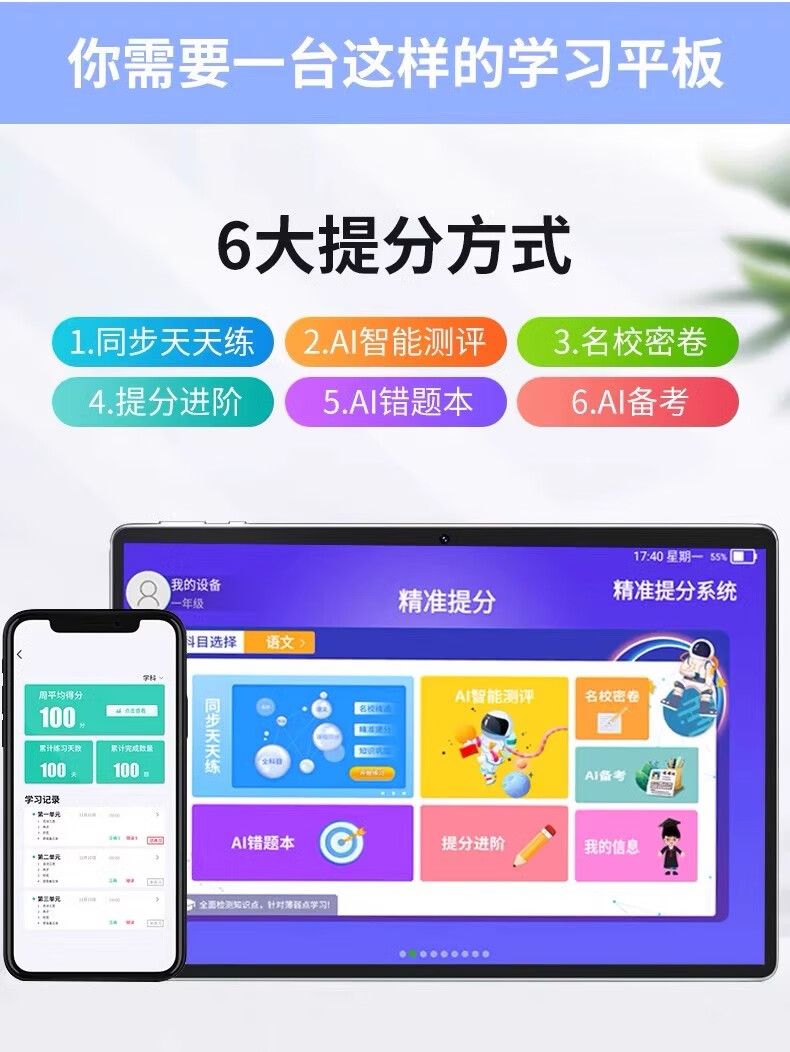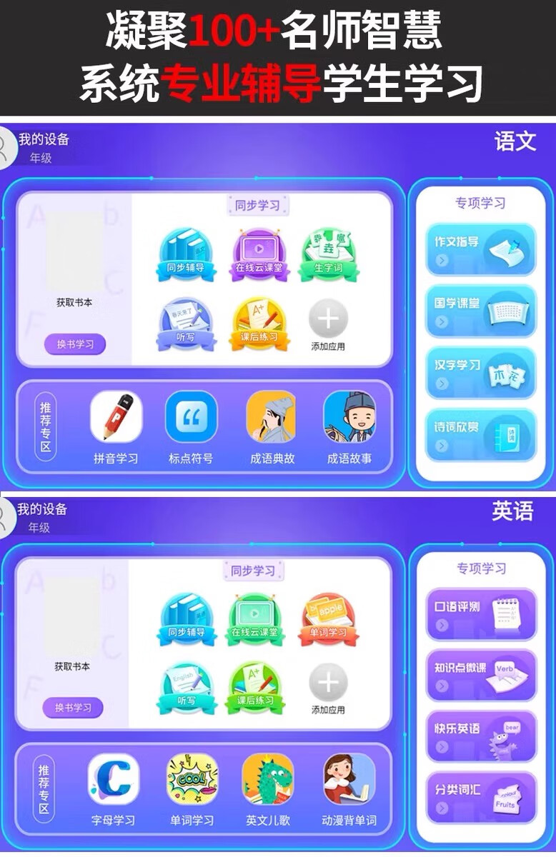 Bubugaosheng learning machine, primary school, first grade to high school, universal student tablet computer English reading machine, gold, national free textbooks + parent control, supreme package 12+512