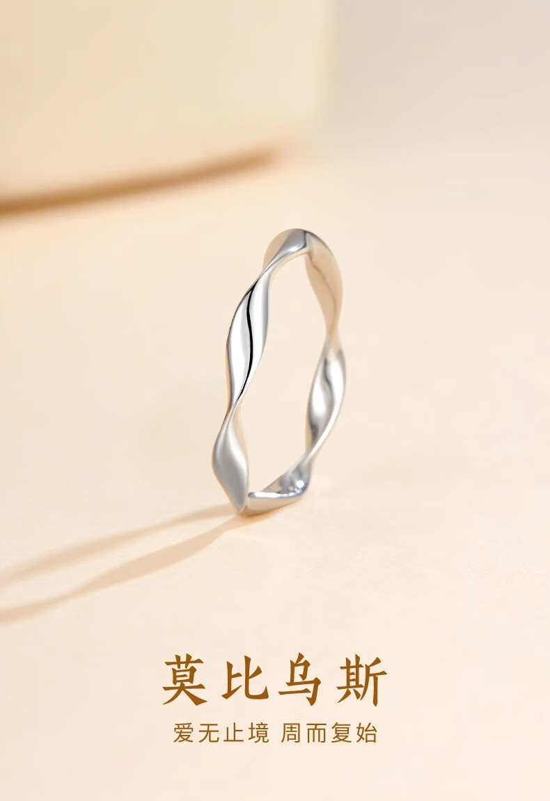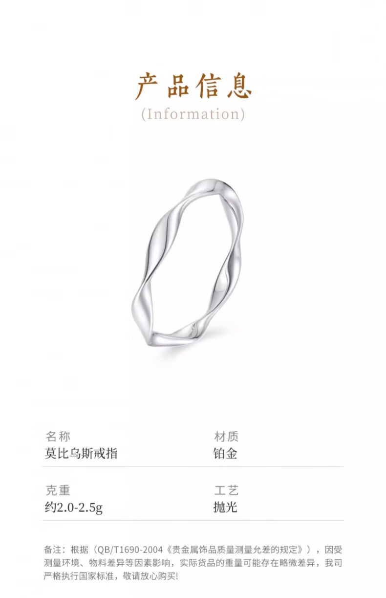 CHINA GOLD PT950 Platinum Möbius Ring Platinum Smooth Plain Ring Valentine's Day Birthday Gift for Girlfriend and Wife No. 10 Möbius Platinum Ring About 2.1g