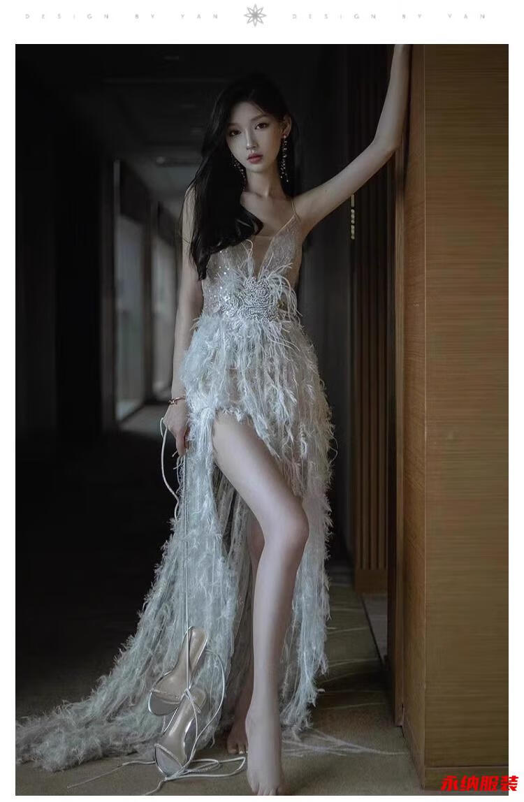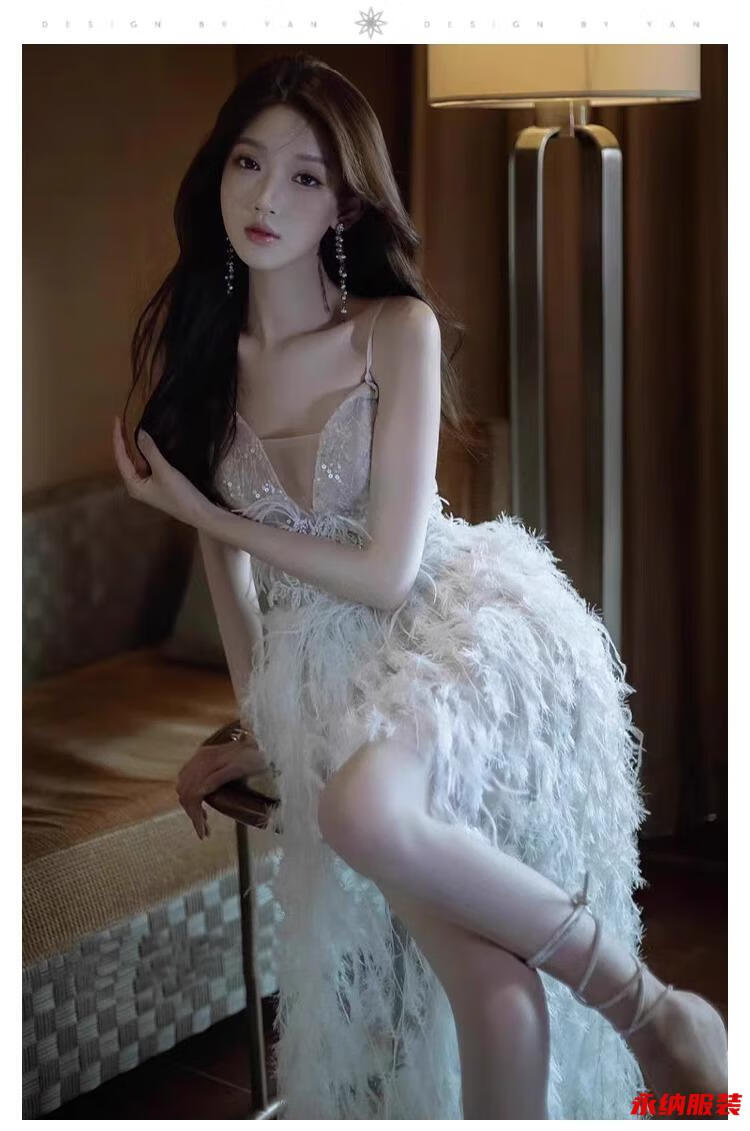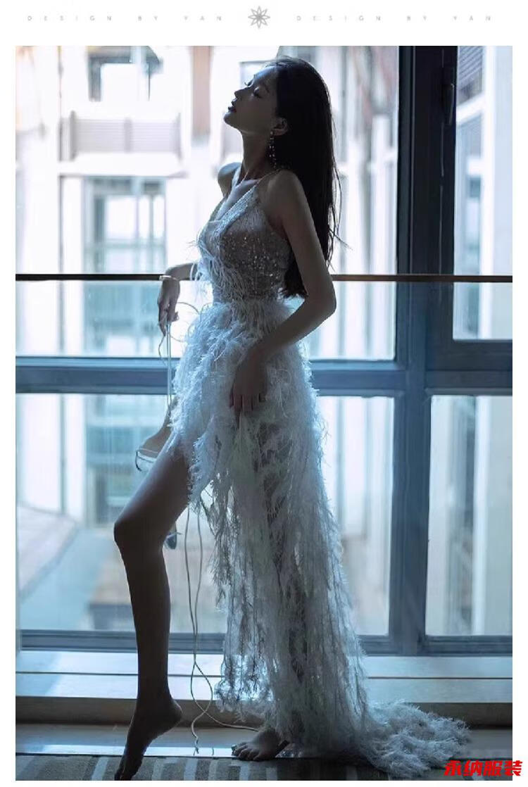 Xuan Tuya's banquet-feel evening dress is super fairy, high-end, light luxury, niche host, elegant lady going out, welcome gauze long dress, white M