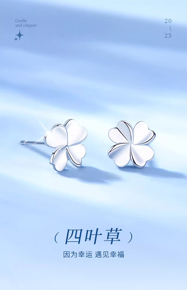 CHINA GOLD PT950 Platinum Four-leaf Clover Earrings 2025 New Earrings Valentine's Day Birthday Gift for Girlfriend and Wife Gift Platinum Lucky Four-leaf Clover Earrings for Girlfriend About 1.4g Zhongjin Gift Box