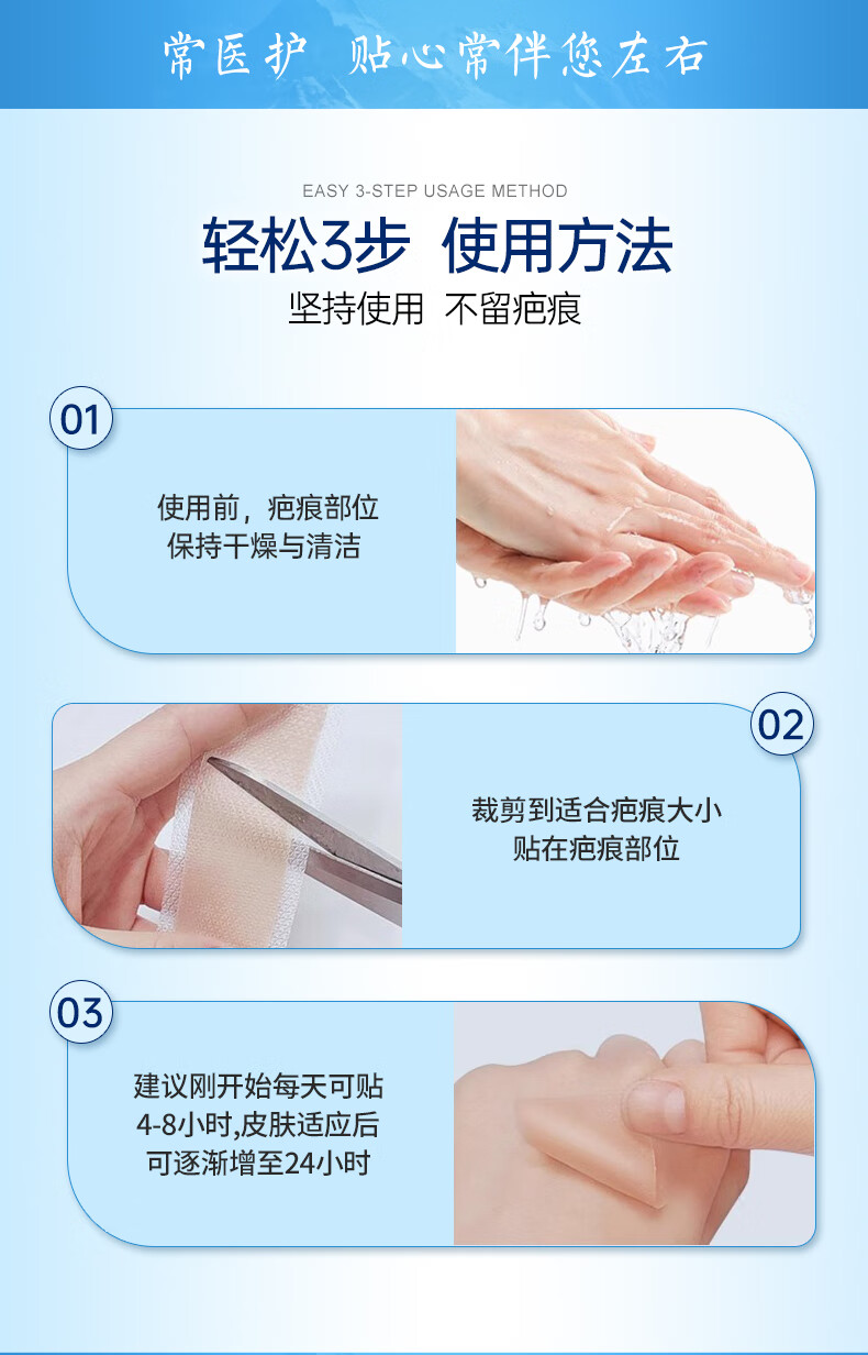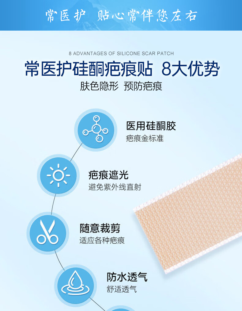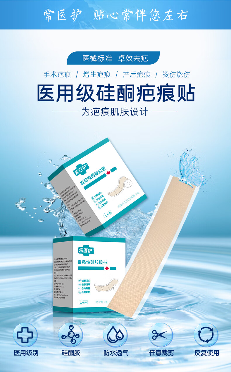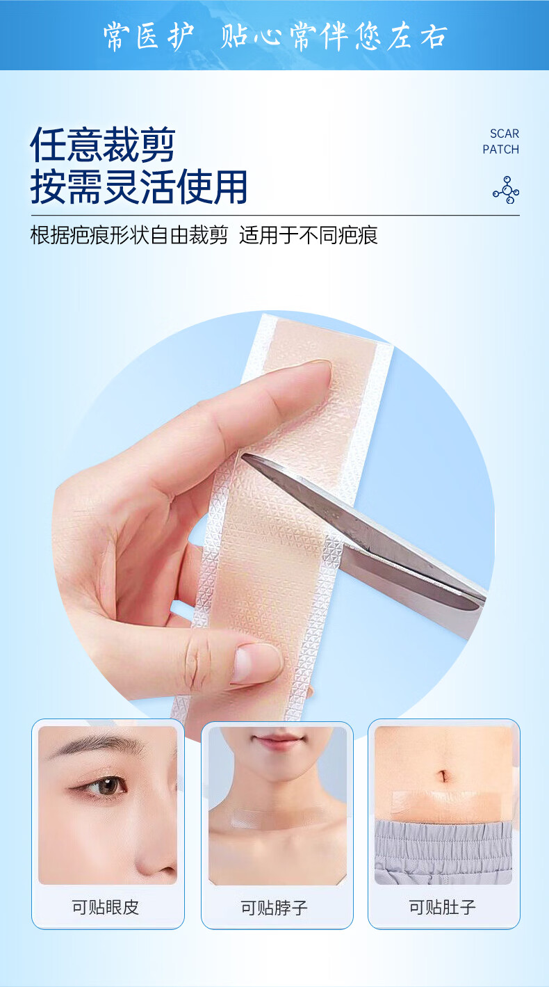 Changyinuo medical silicone scar patch, special scar hyperplasia, raised pimple repair patch for burns and scalds after caesarean section, one box, trial pack, mild scars, 5*50cm/1 roll/box