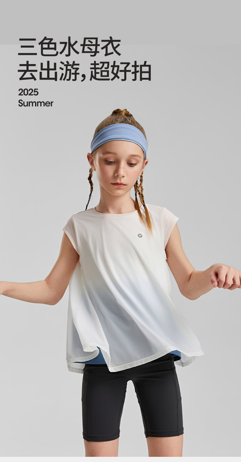 SWIFT colorful jellyfish clothing swift girls cool T-shirt 2025 summer new children's sun protection fake two-piece short-sleeved three-color ice cream 150 cm