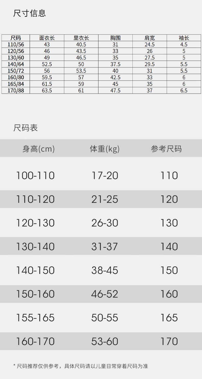 China (cm) 160-165/84-86 165-170 / 88-90 167-172 / 92-96 168-173 / 98-102 170-176 / 106-110